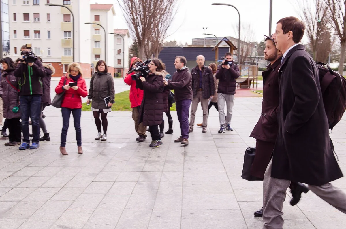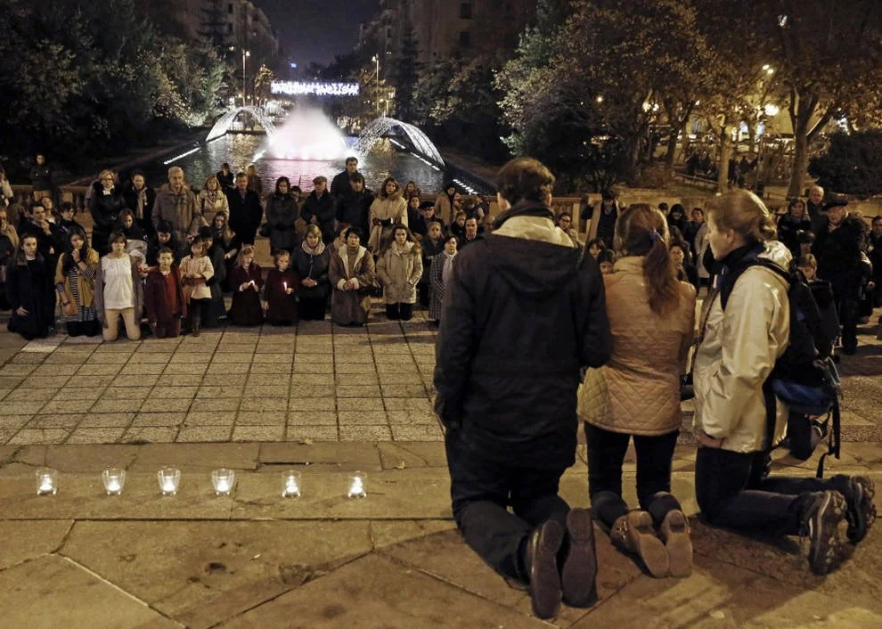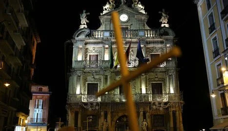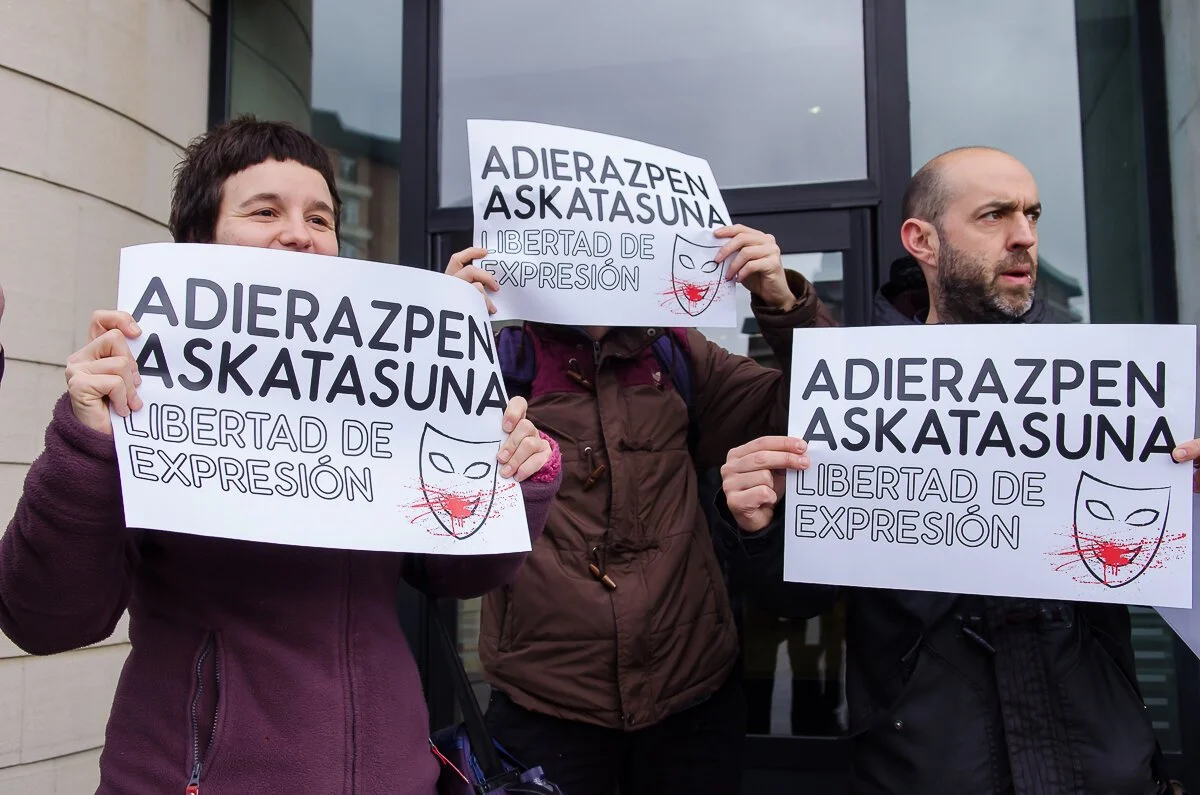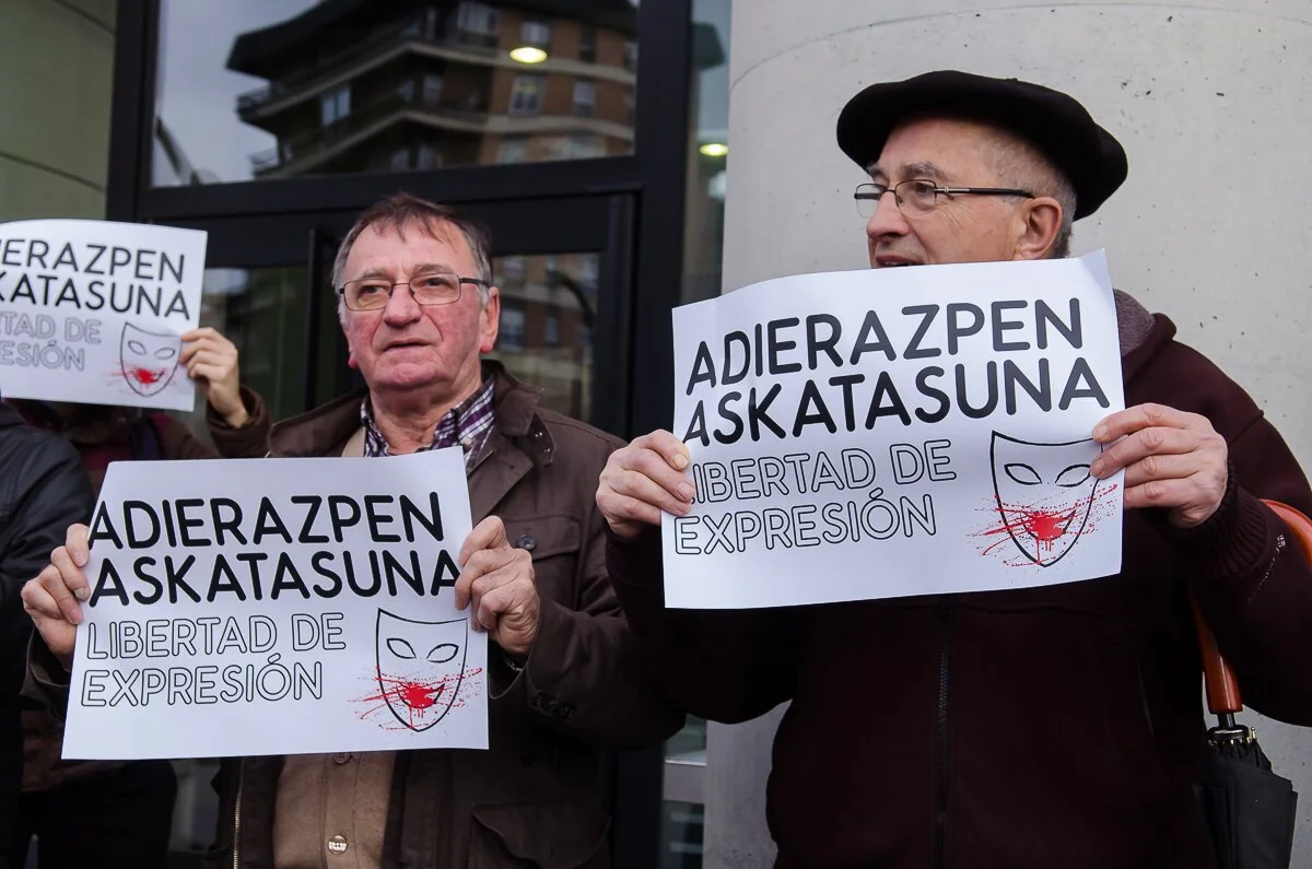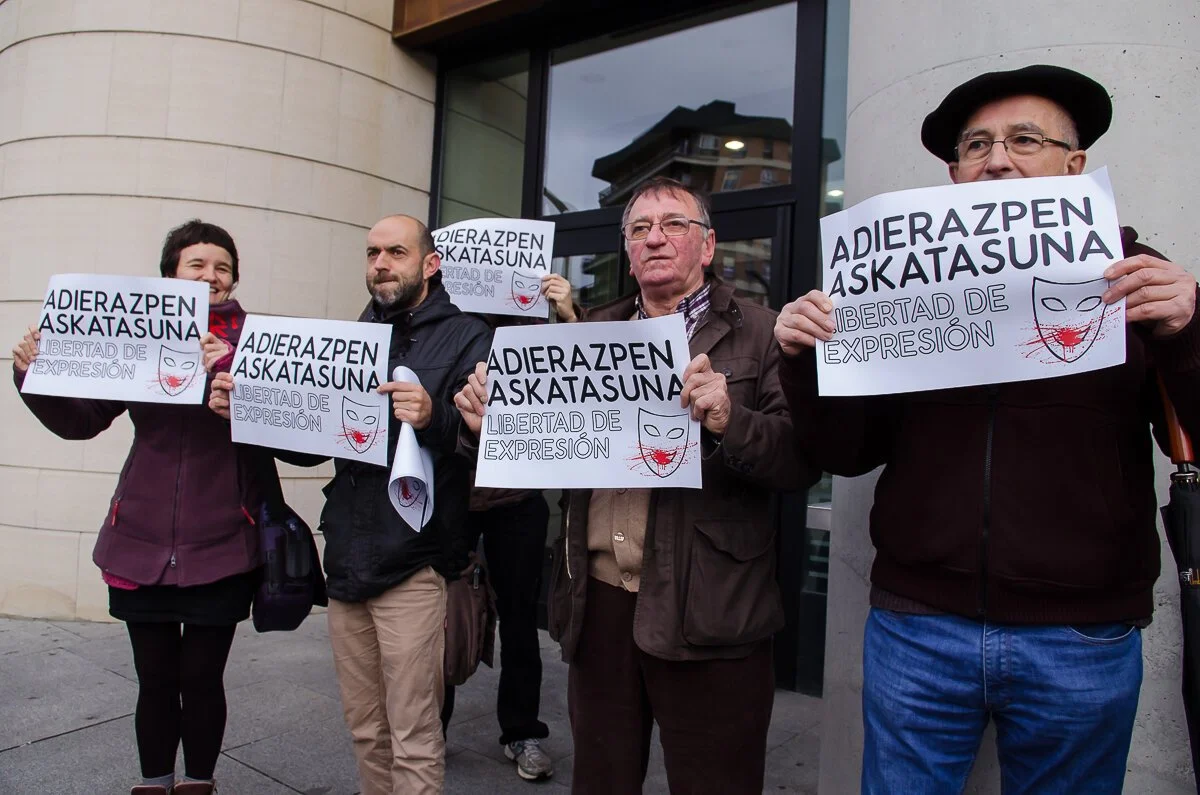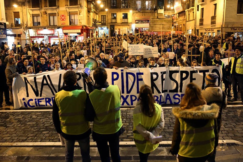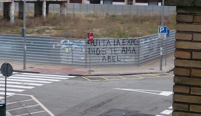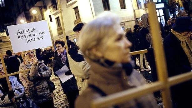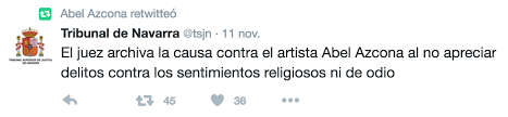 November 22, 2015. Respect for Navarra, the Carlist Traditionalist Union, Hazte Oír and Más Libres called the first concentration against the exhibition and against Azcona in the Town Hall Square of Pamplona. About nine hundred people shouted "Azcona, God forgives you" or "We are going to close that exhibition."