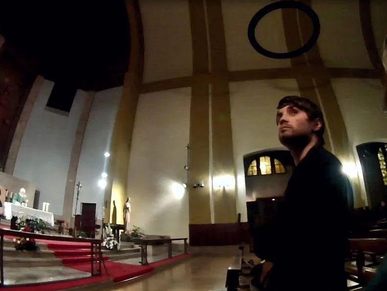 Azcona documented with a hidden camera in parishes and churches such as the San Lorenzo church, Cristo Rey church and the San Nicolás church of Pamplona. / Azcona documentado con cámara oculta en parroquias e iglesias como la Iglesia San Lorenzo, Iglesia Cristo Rey e Iglesia de San Nicolás de Pamplona.