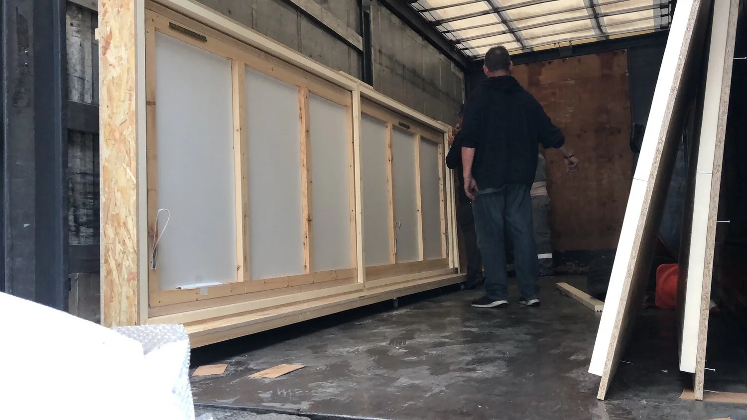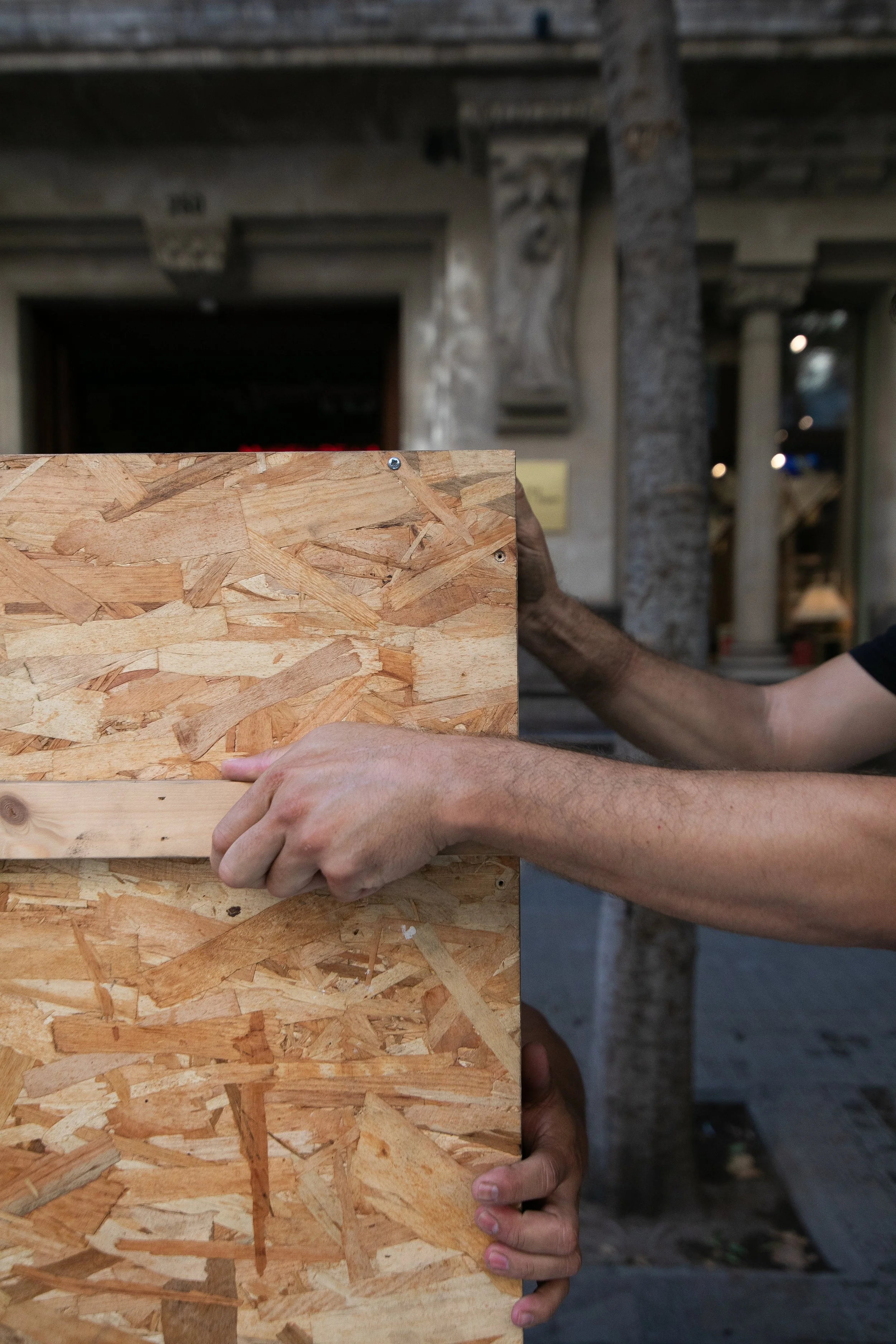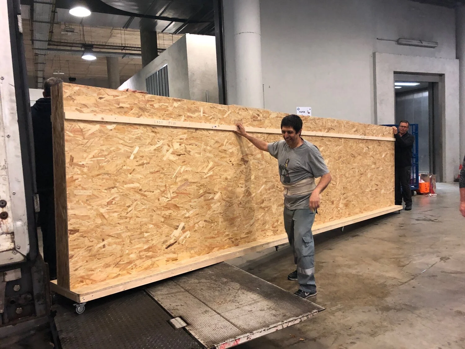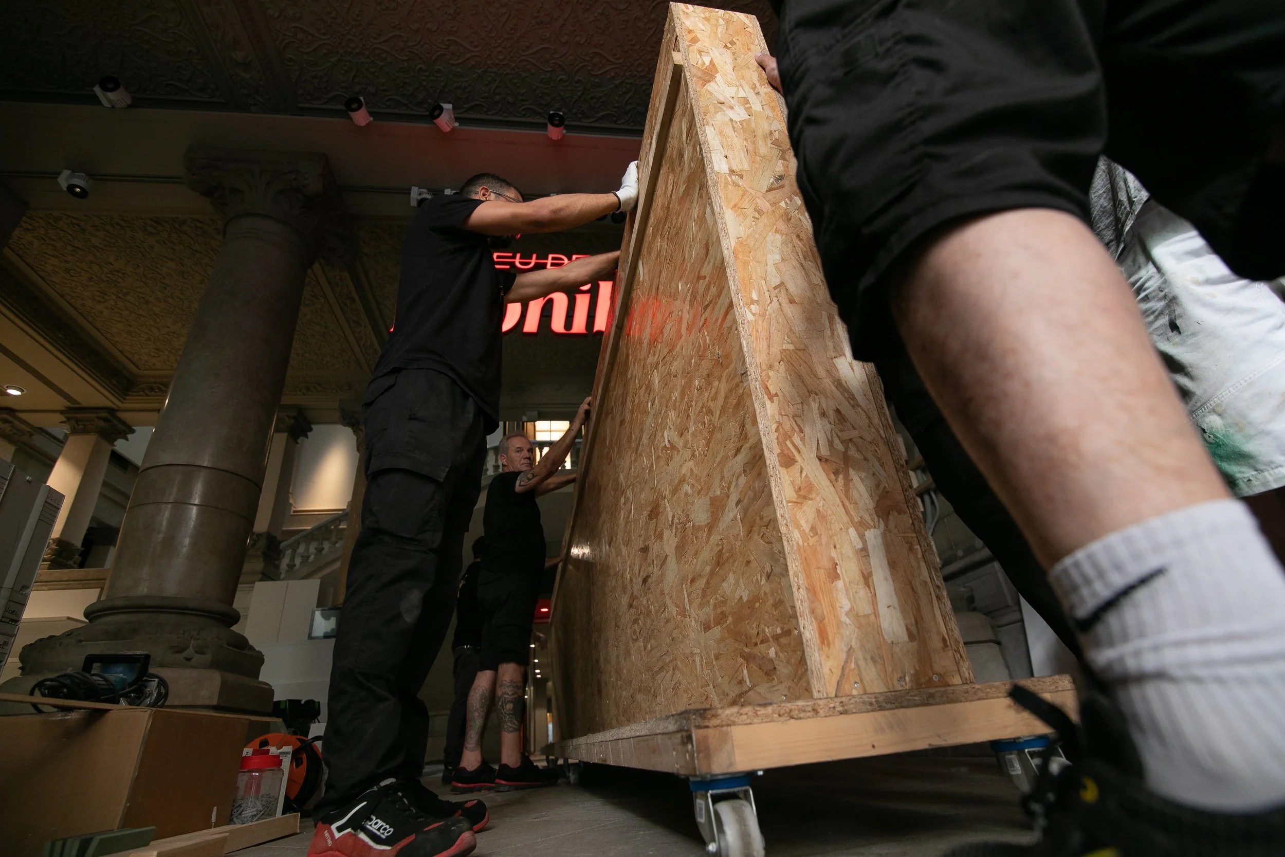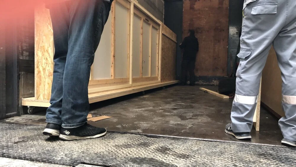El artista Abel Azcona durante la construcción de la instalación en Konvent Contemporary Art Center. Fotografía Jordi Plana.