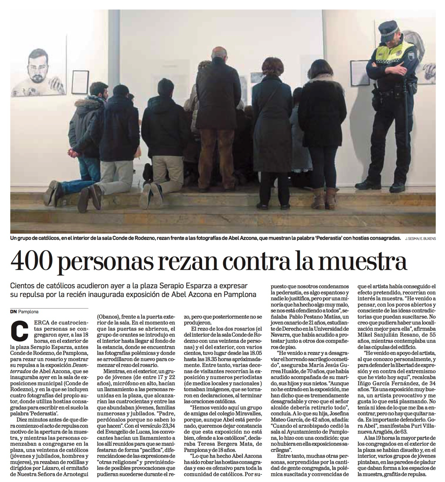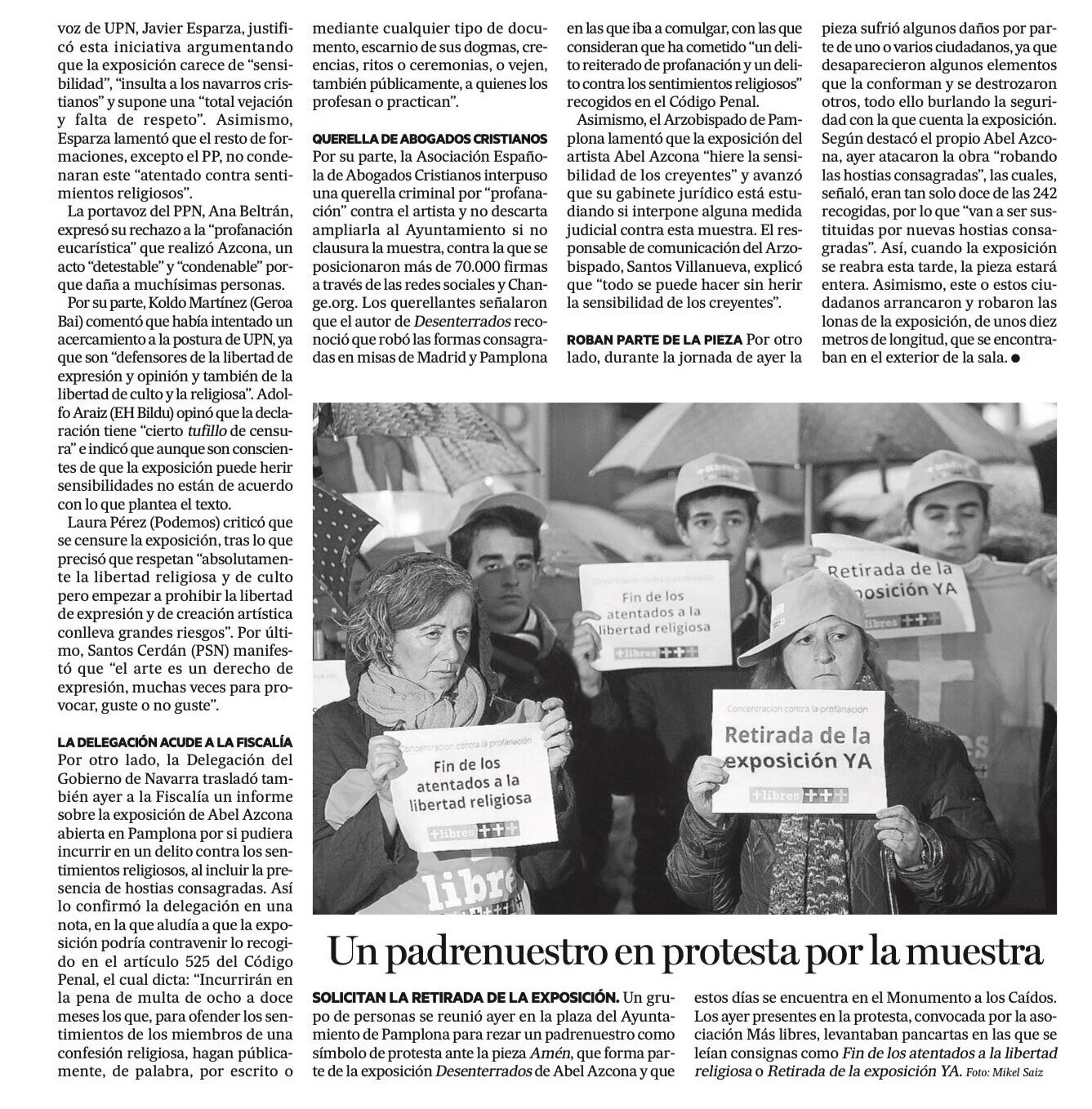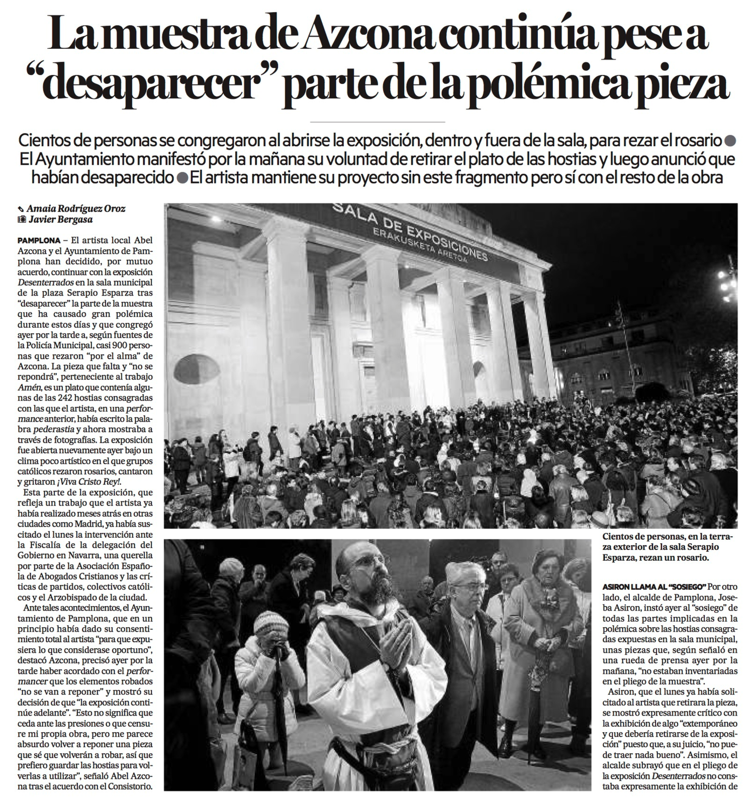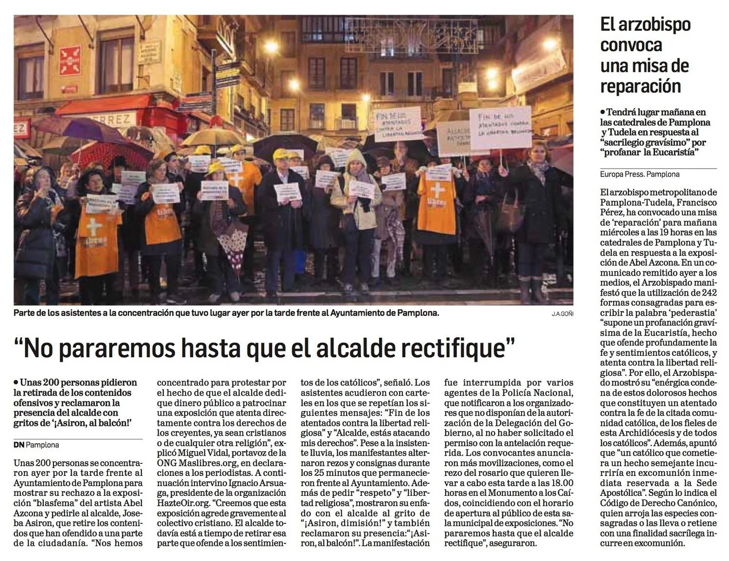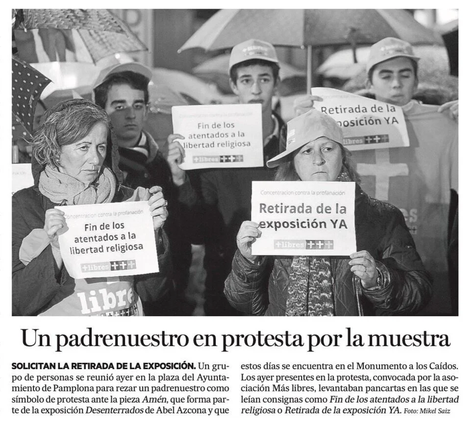 El Diario de Navarra, periódico conservador y católico, realizó una galería completa de las concentraciones y manifestaciones durante la exposición del artista Abel Azcona.