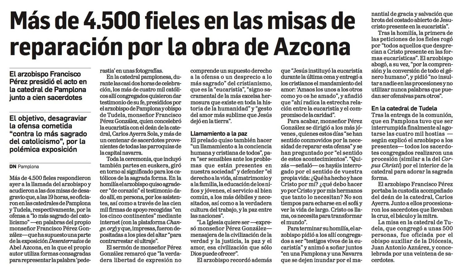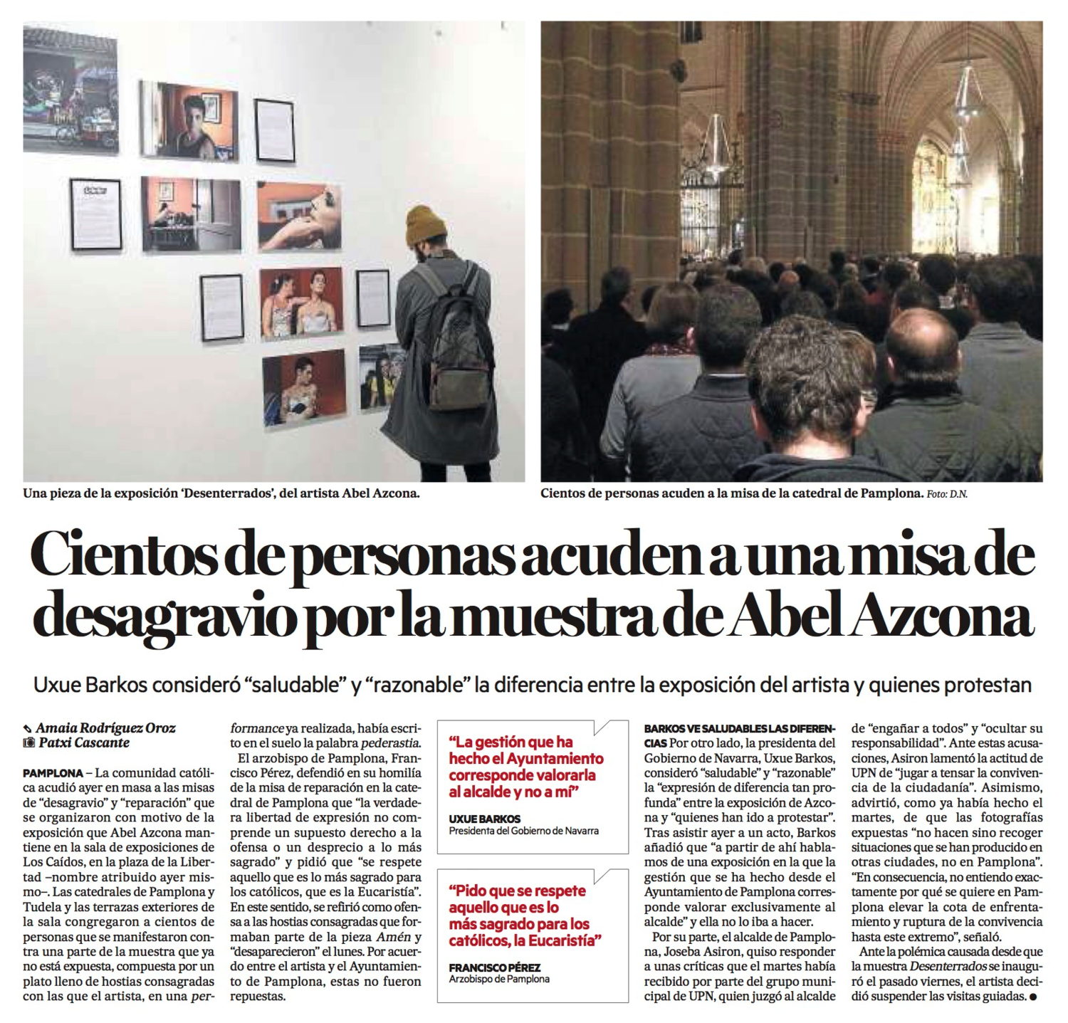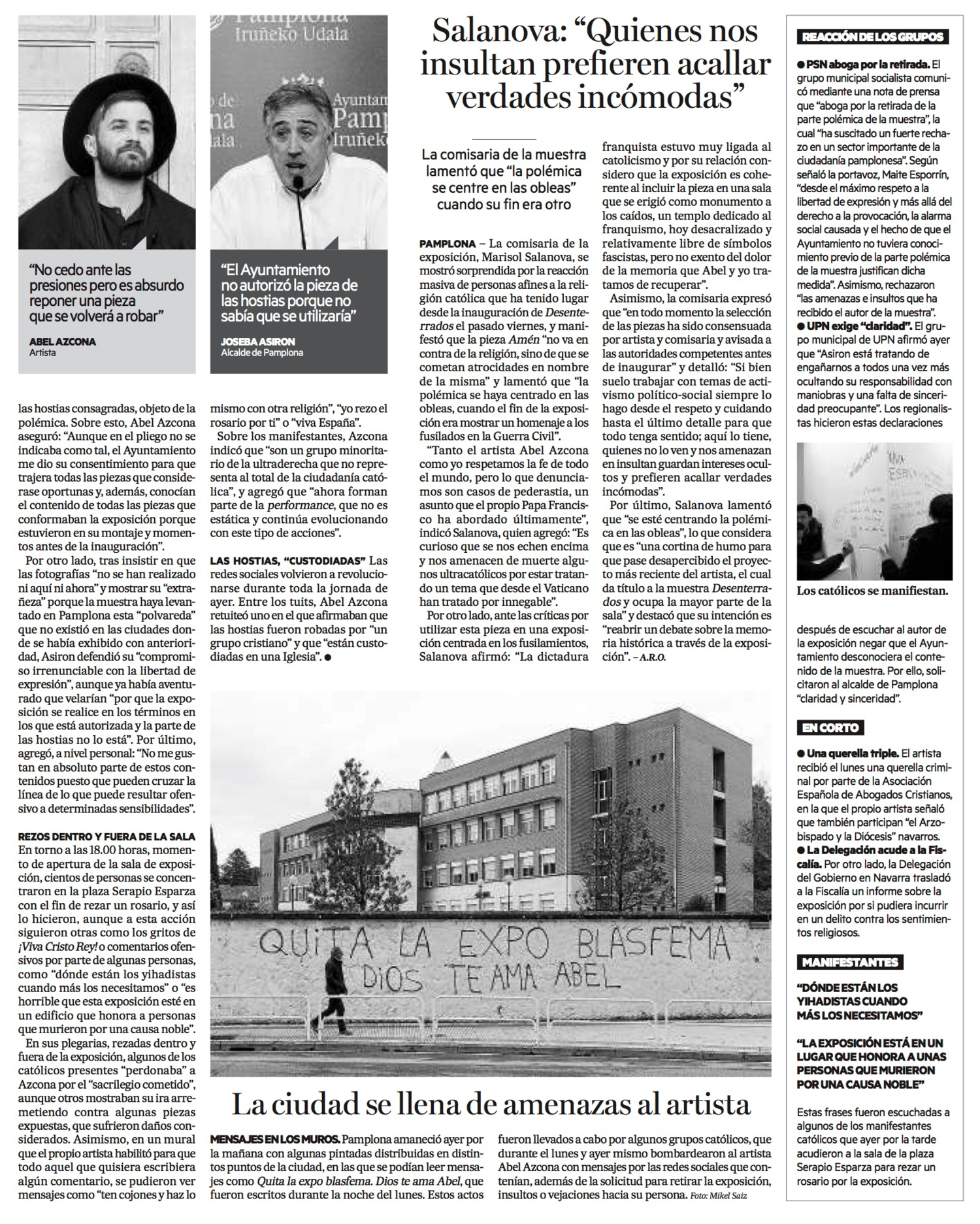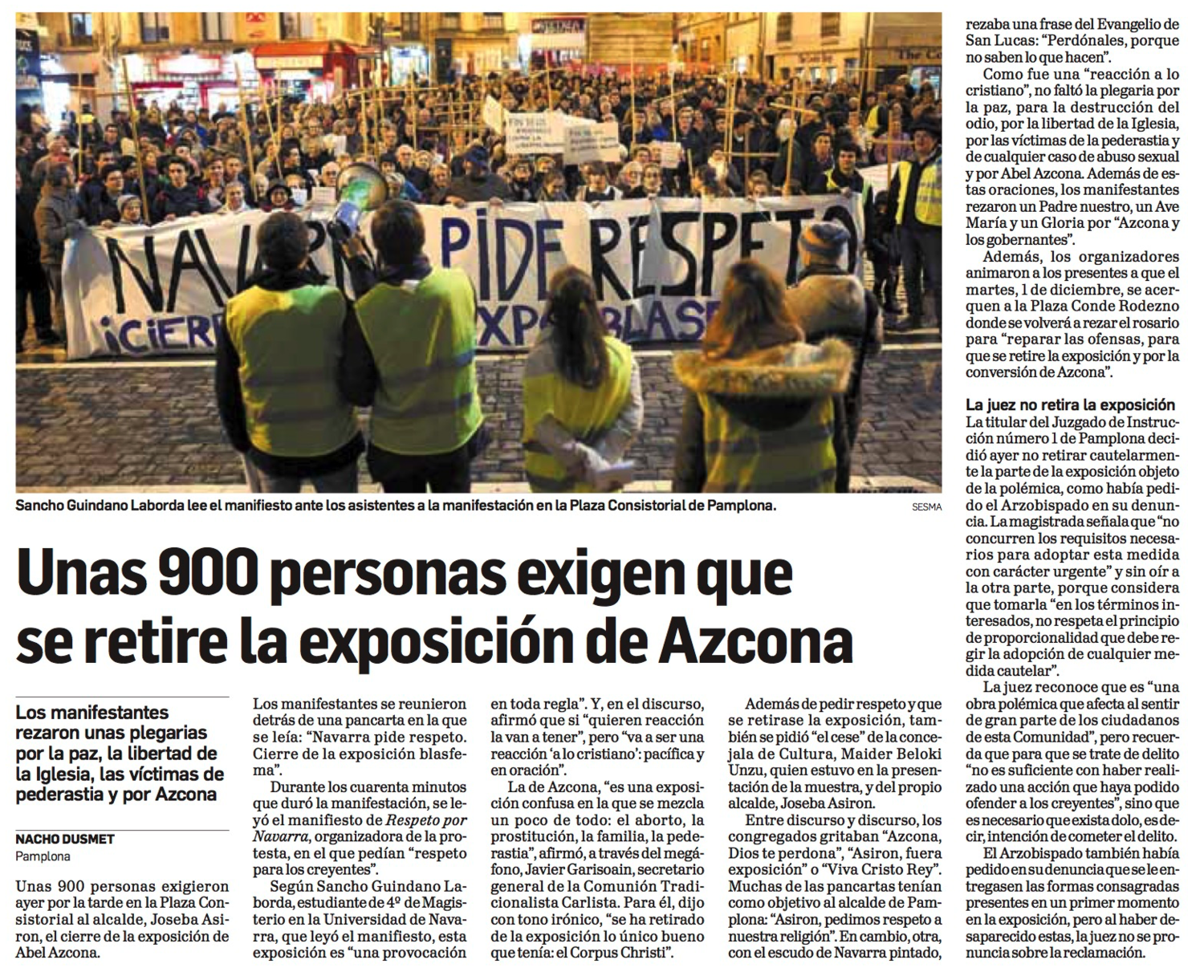El Diario de Navarra, periódico conservador y católico, realizó una galería completa de las concentraciones y manifestaciones durante la exposición del artista Abel Azcona.