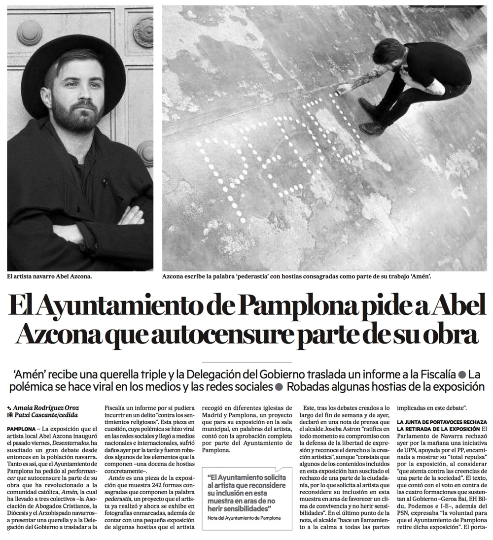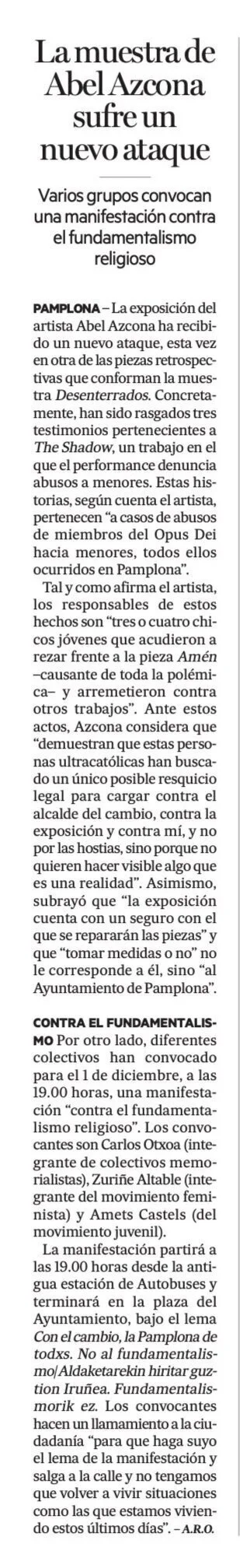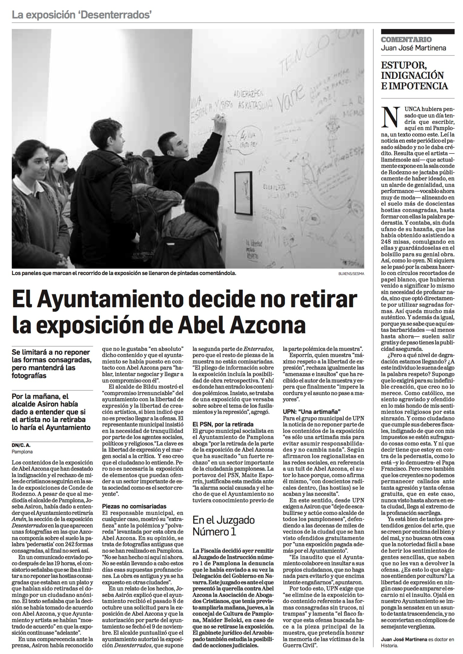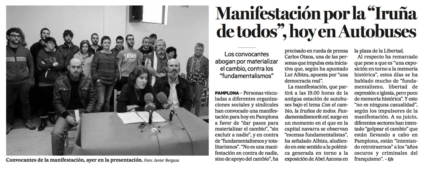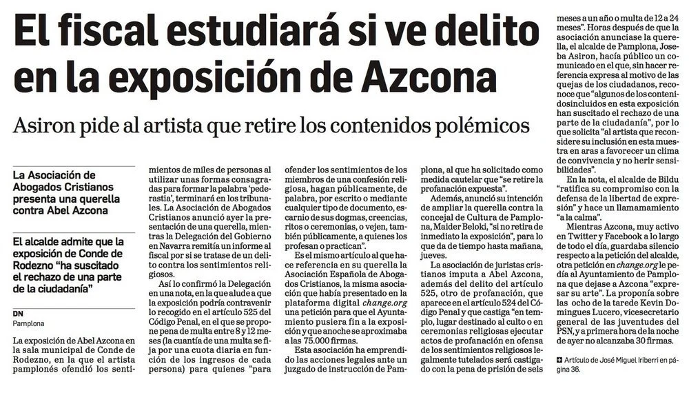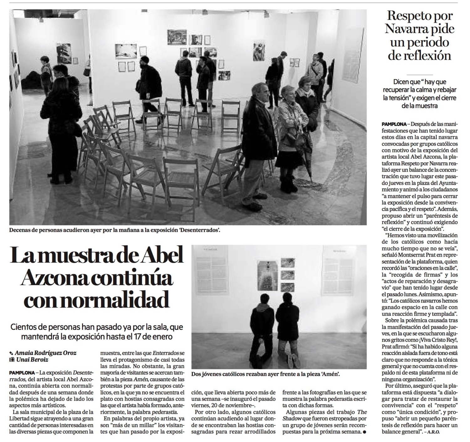 El Diario de Navarra, periódico conservador y católico, realizó una galería completa de las concentraciones y manifestaciones durante la exposición del artista Abel Azcona.