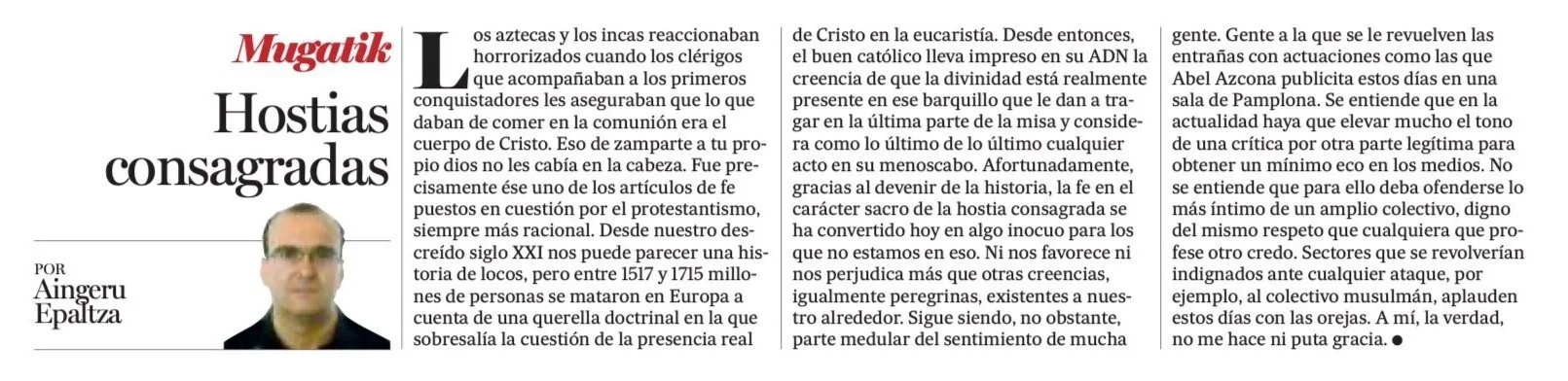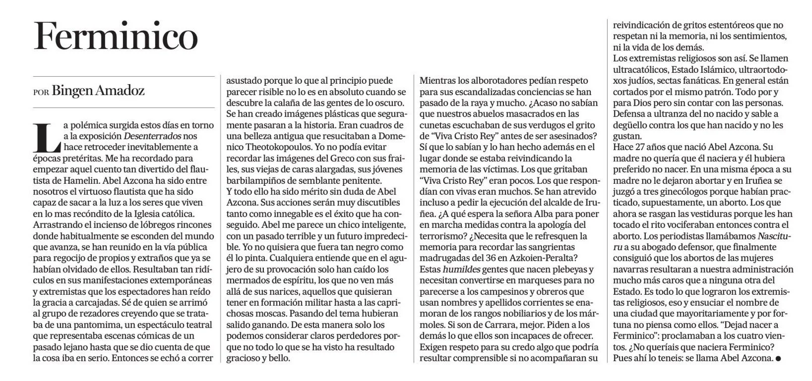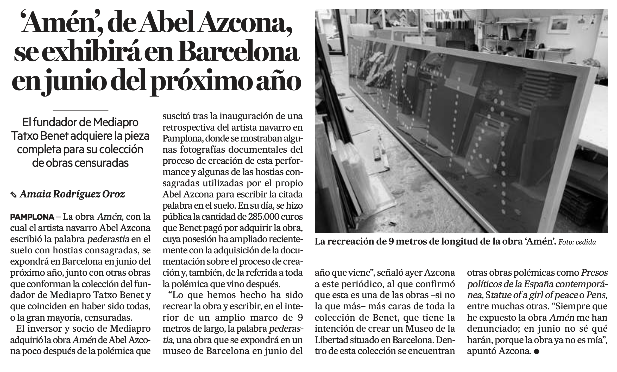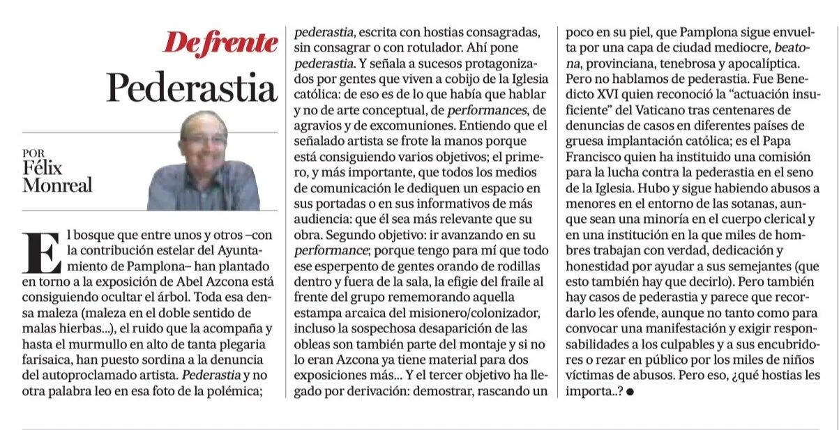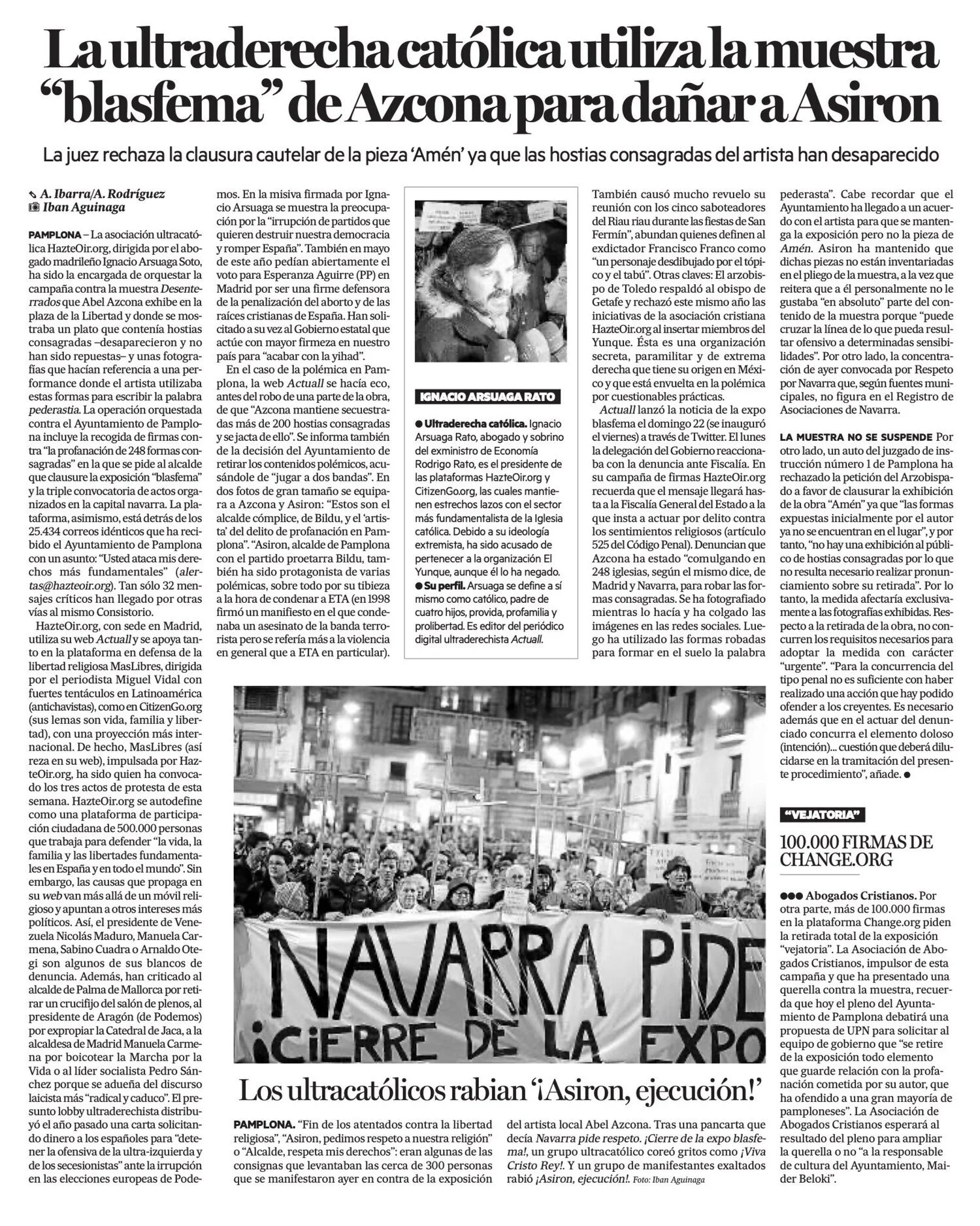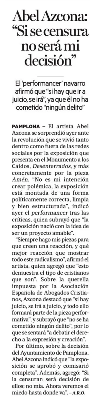 El Diario de Navarra, periódico conservador y católico, realizó una galería completa de las concentraciones y manifestaciones durante la exposición del artista Abel Azcona.