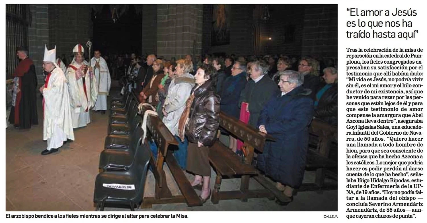 Homily of the Archbishop of Pamplona and Tudela, Bishop Francisco Pérez González, at the Holy Mass of reparation for the desecration, which took place in the Cathedral of Pamplona on November 25, 2015.