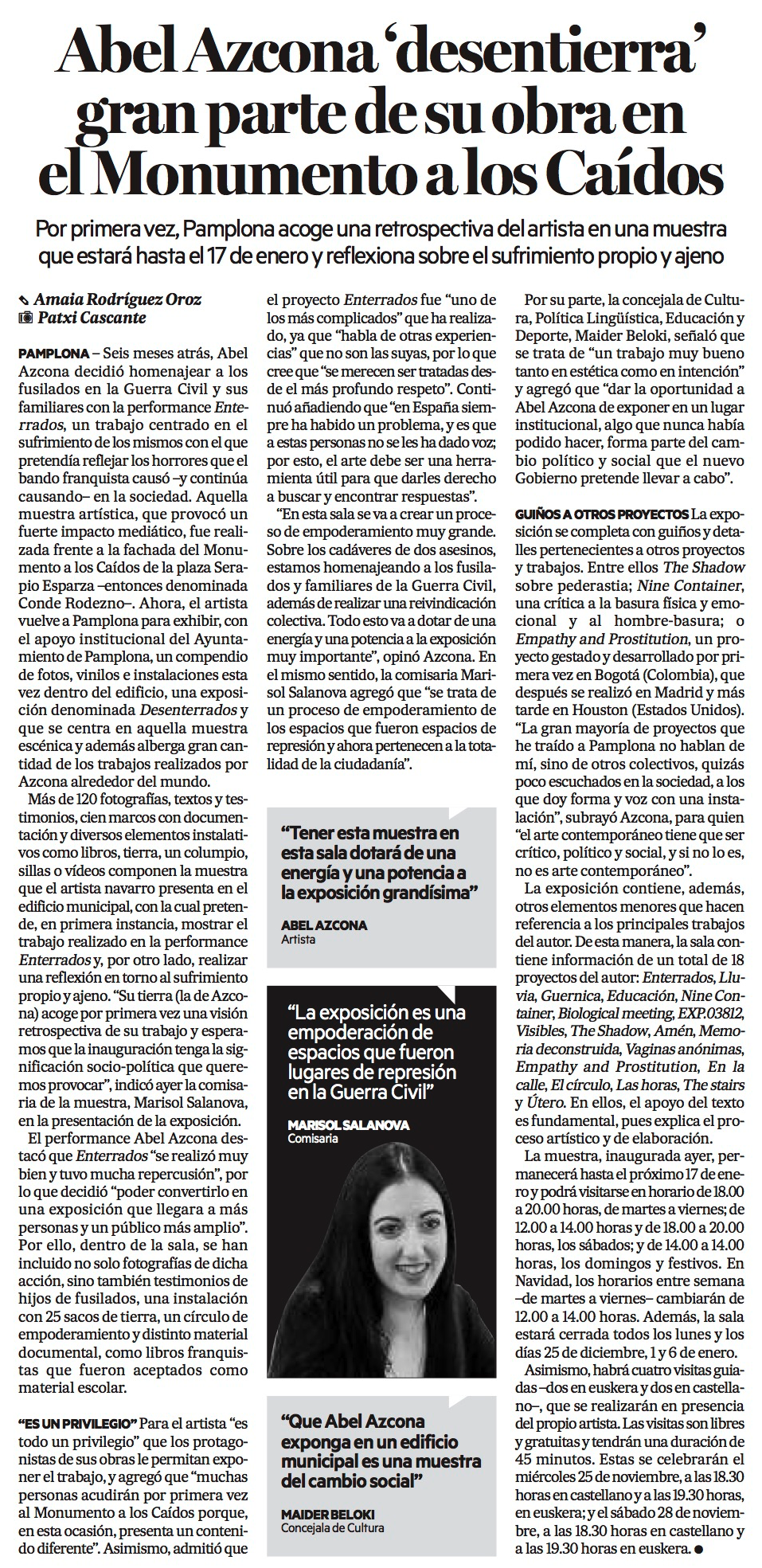 Diario de Navarra, 21 de Noviembre de 2017. Fragmento noticia en papel. PDF Completo. Noticia digital.