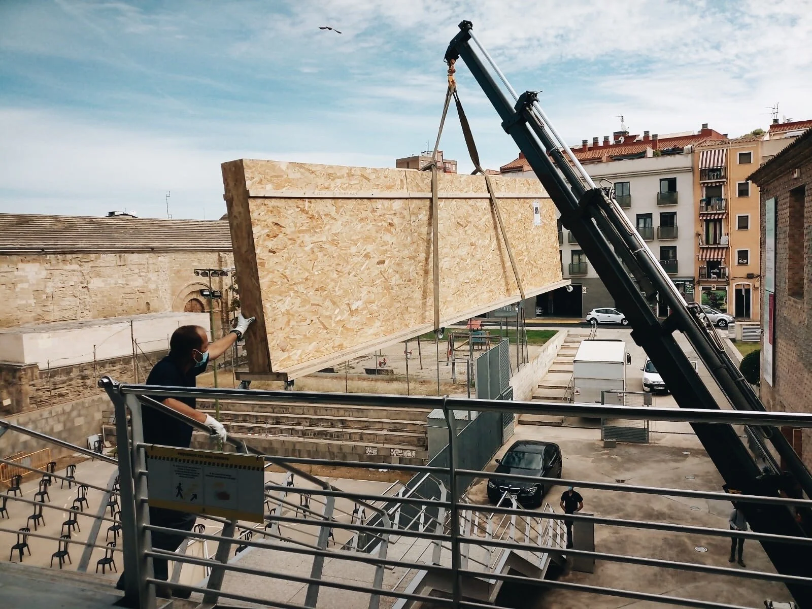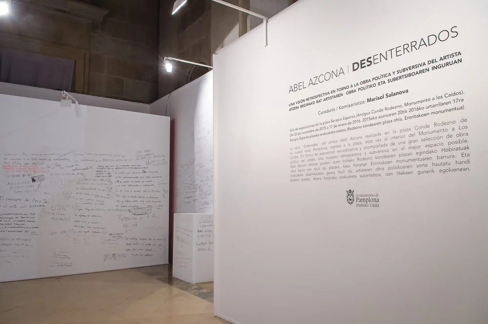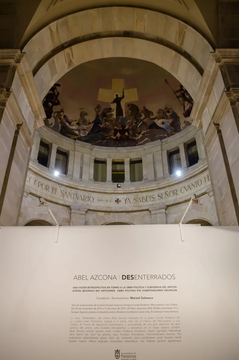 October 2015. The Pamplona City Council invited Azcona to exhibit in a public building, and among the institution, Azcona himself and the curators selected the Monument to the Fallen located in the Plaza de la Libertad in Pamplona as an exhibition building.