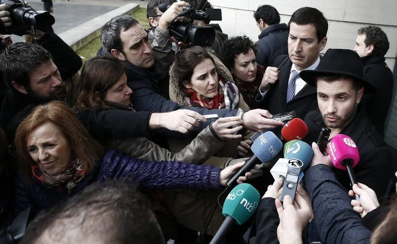 El artista Abel Azcona saliendo de los Juzgados de Pamplona. © Pablo Lasaosa.