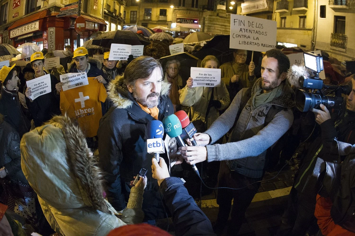 Primera concentración contra la exposición el segundo día de apertura de la muestra en Pamplona. / Ignacio Arsuaga, Presidente de Hazte Oir. Diario de Noticias de Navarra © Mikel Saiz
