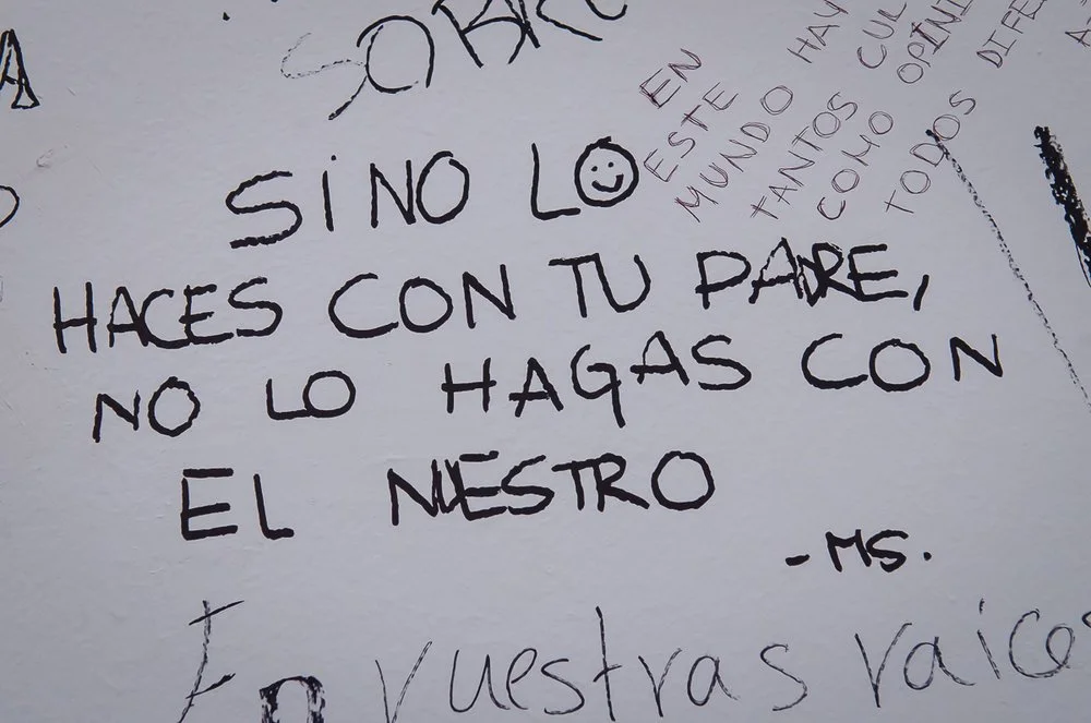 November 27, 2015. The exhibition was attacked, several works were destroyed, along with the canvas at the entrance and the occupation of the building by ultra-Catholic movements.