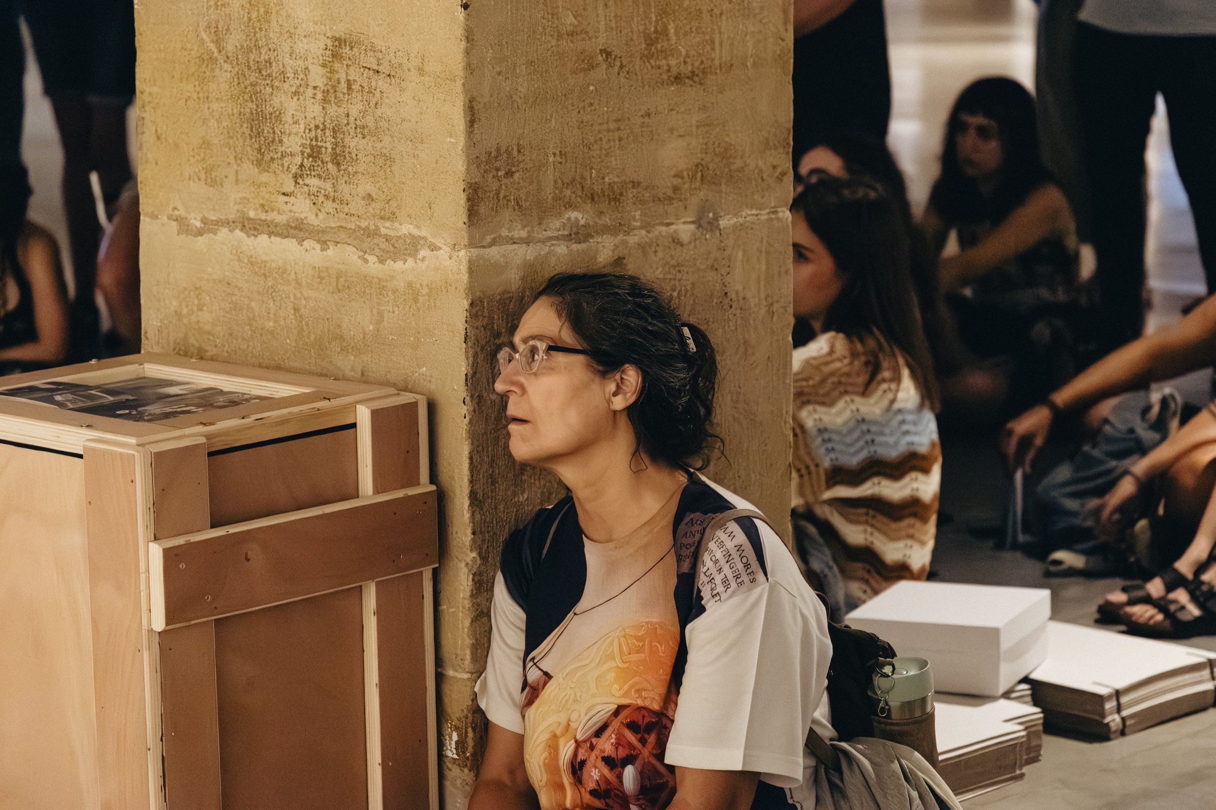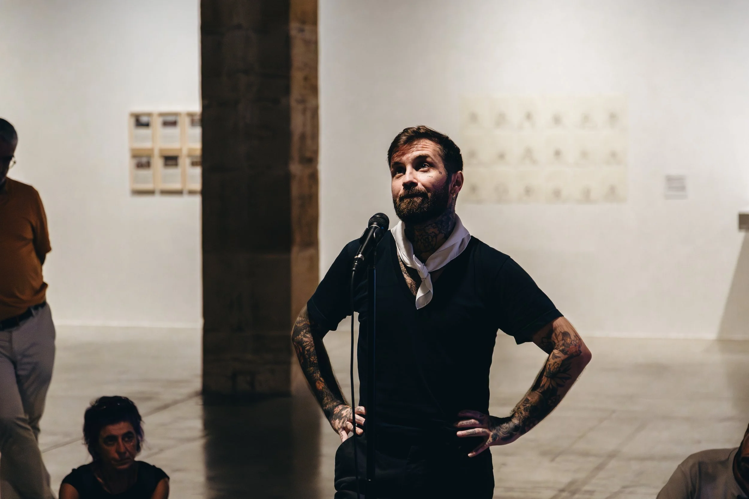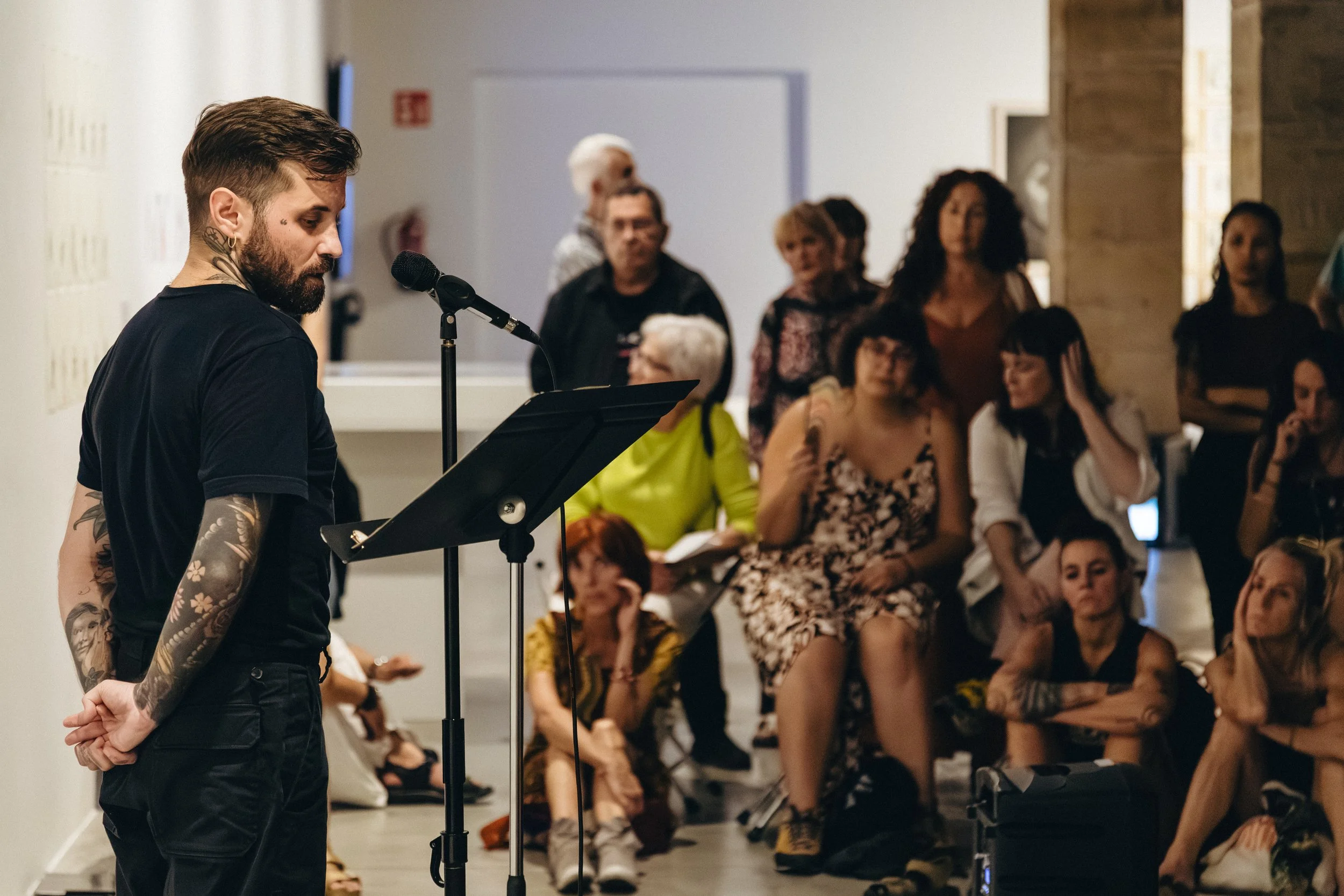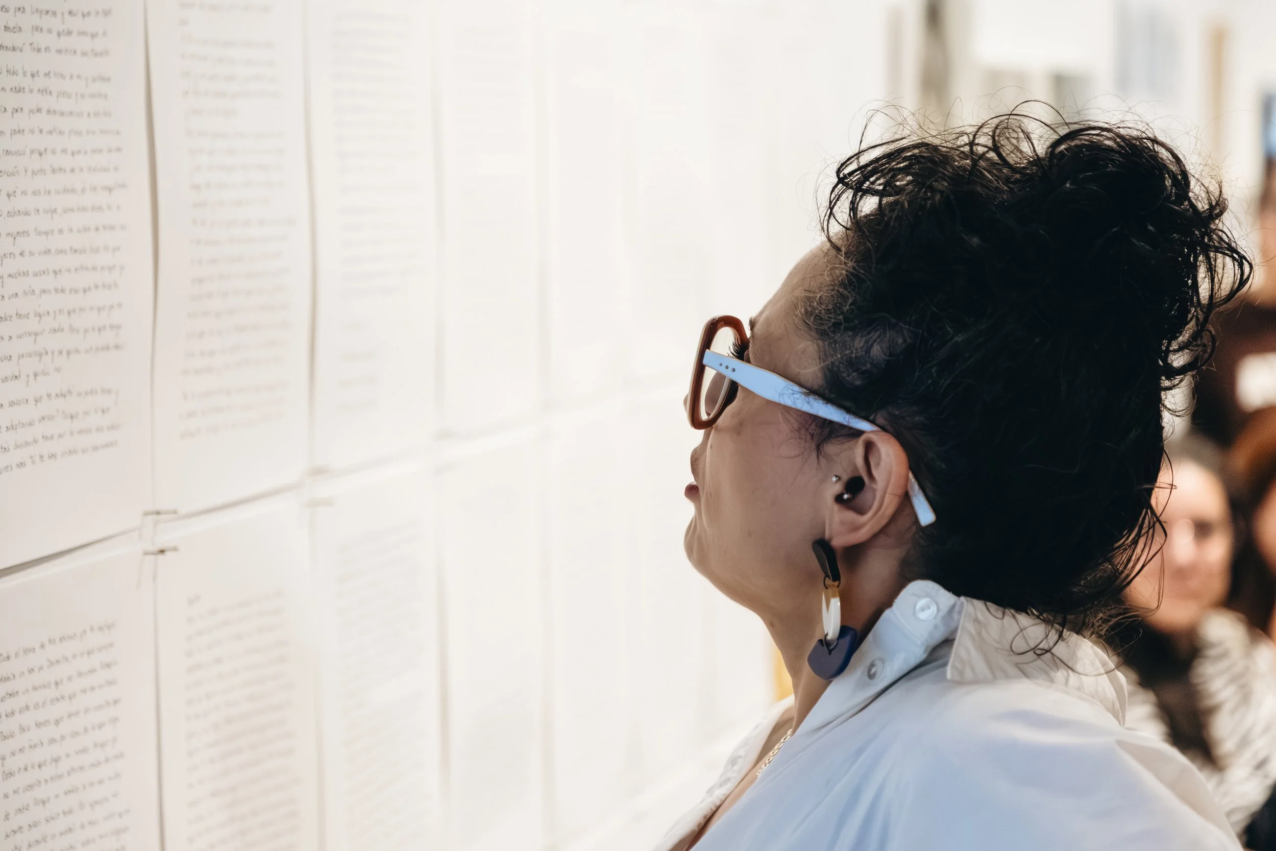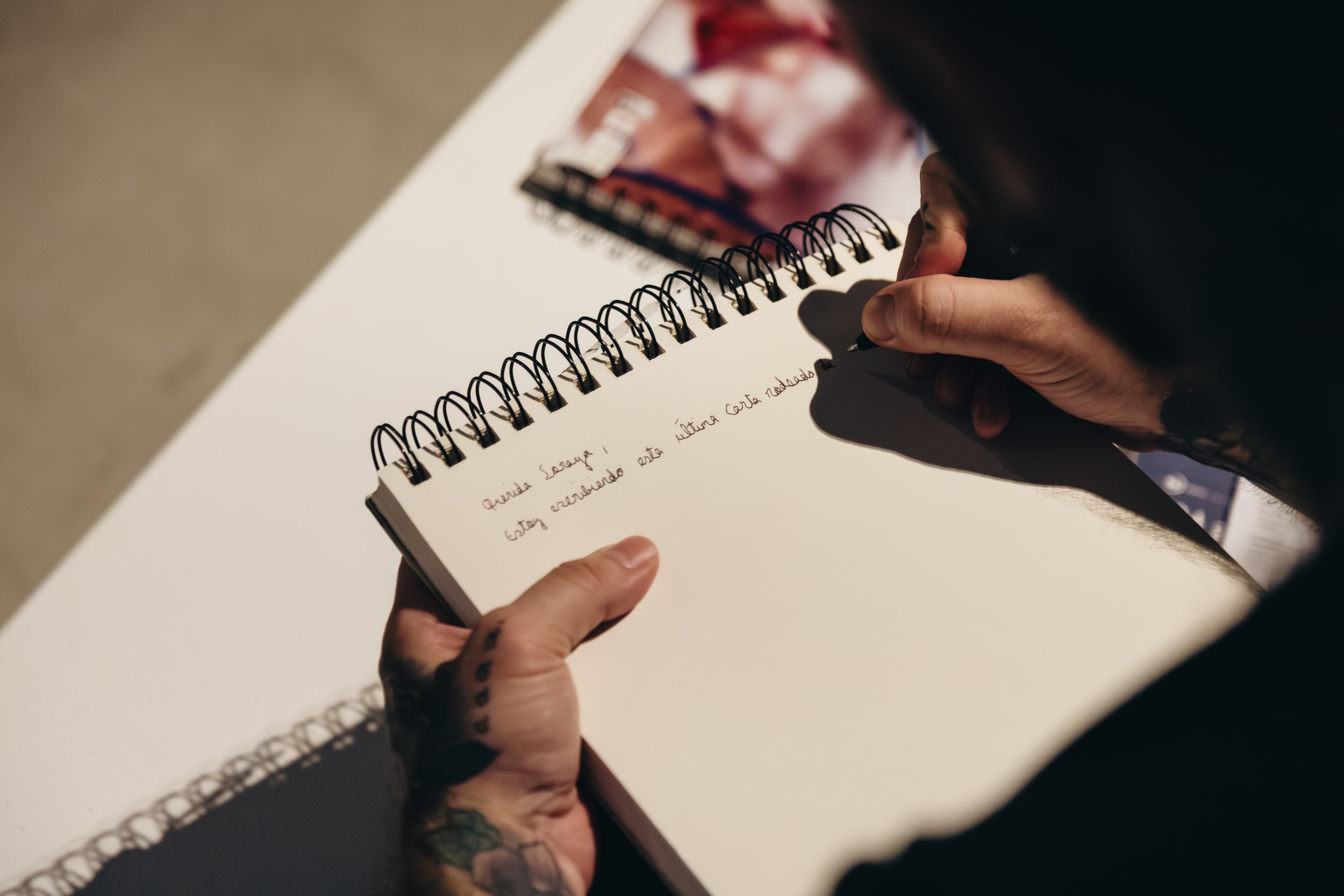 Sixth brief action – A Goodbye That Is Not Forever to Soraya. For the first time, Azcona will read aloud fragments of the handwritten text by his sister, written days before the opening of the exhibition, and he will write the final letter of the process, closing the work Sister’s Word live and definitively.