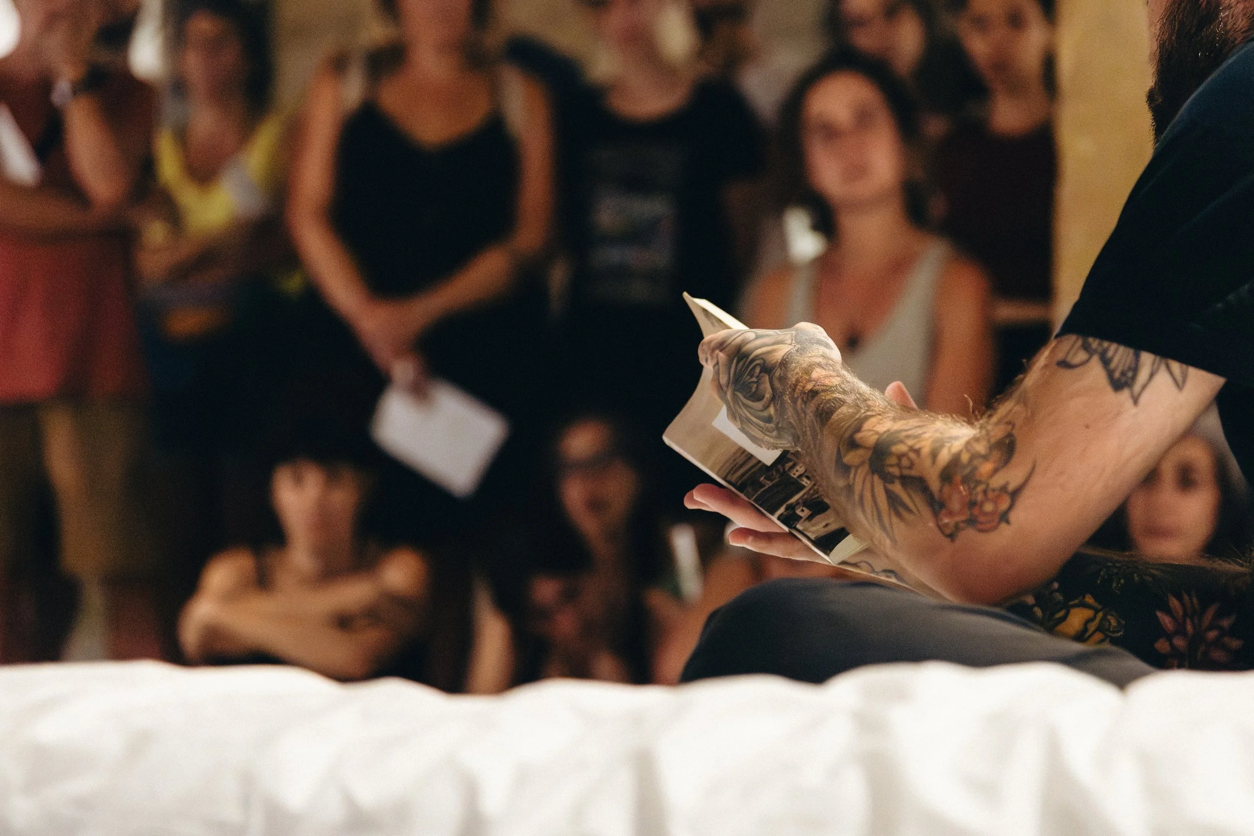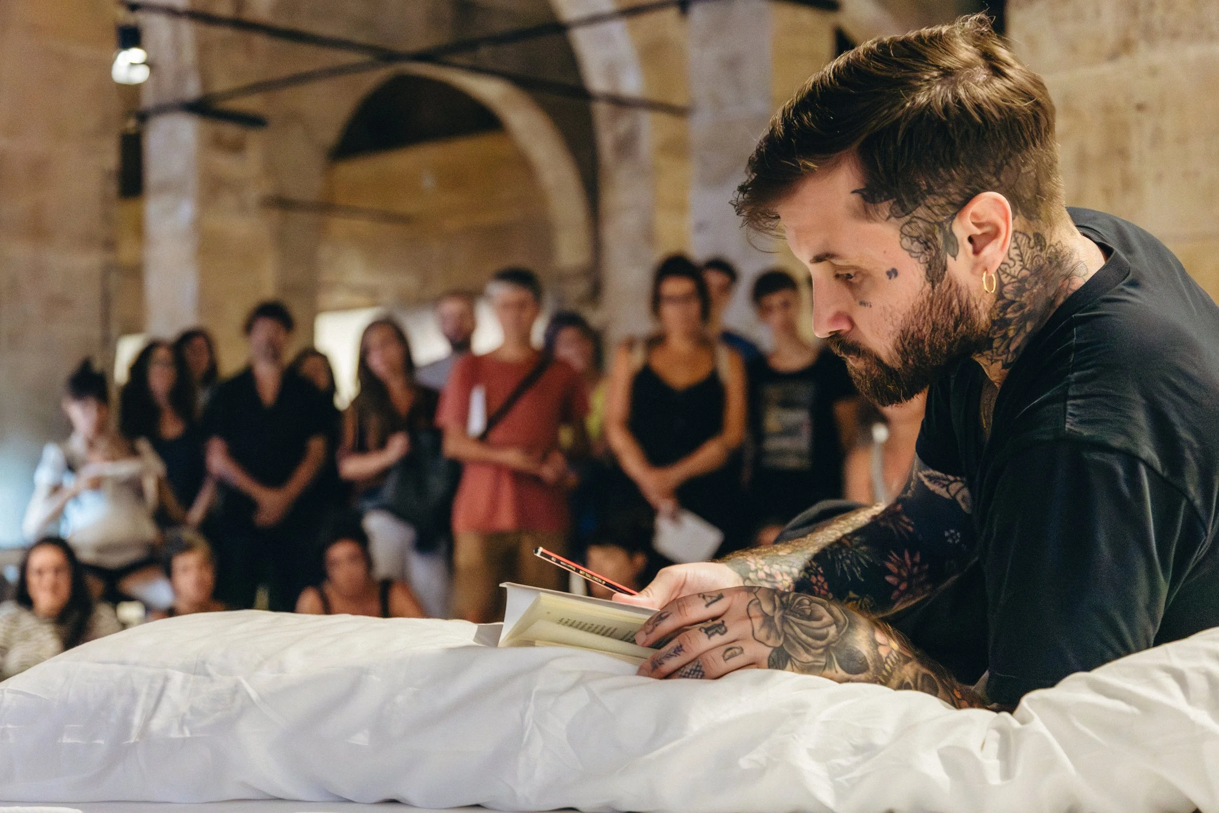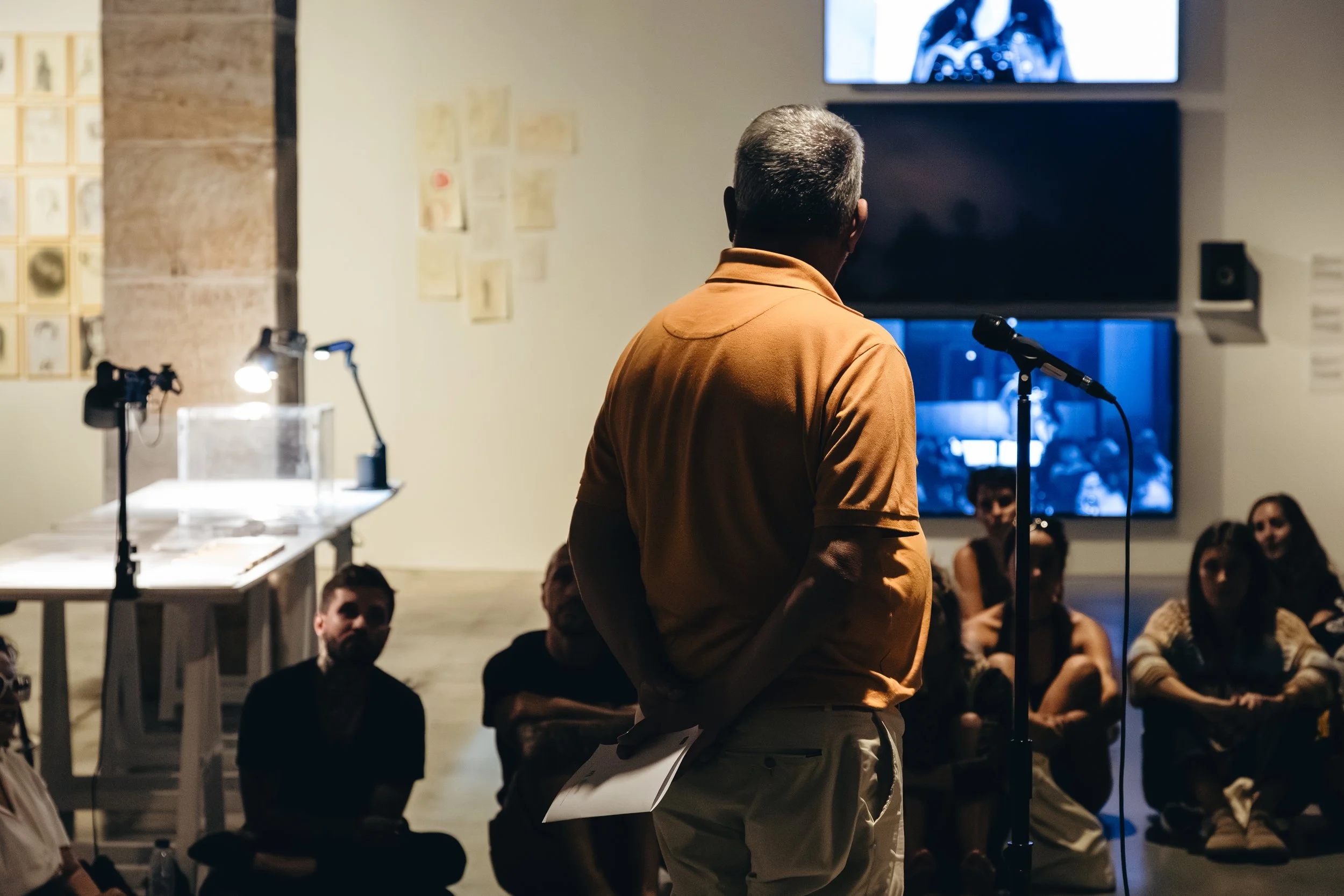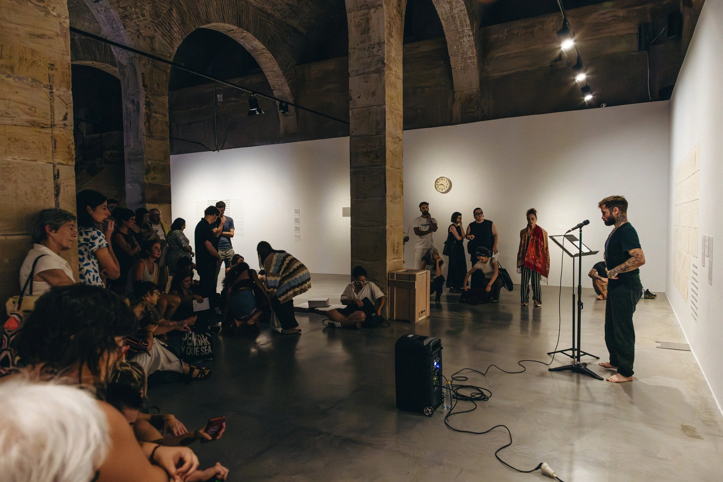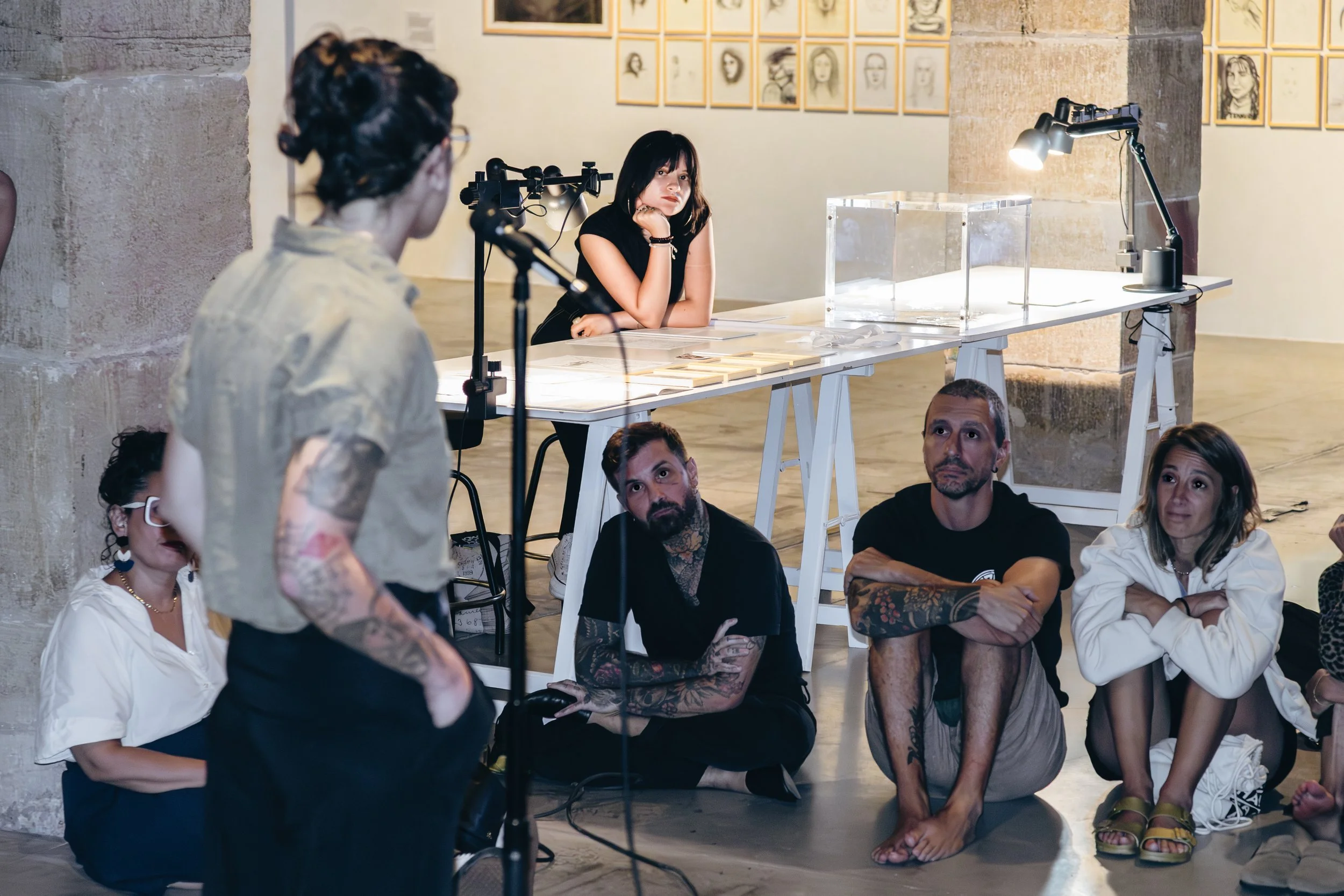 Sixth brief action – A Goodbye That Is Not Forever to Soraya. For the first time, Azcona will read aloud fragments of the handwritten text by his sister, written days before the opening of the exhibition, and he will write the final letter of the process, closing the work Sister’s Word live and definitively.