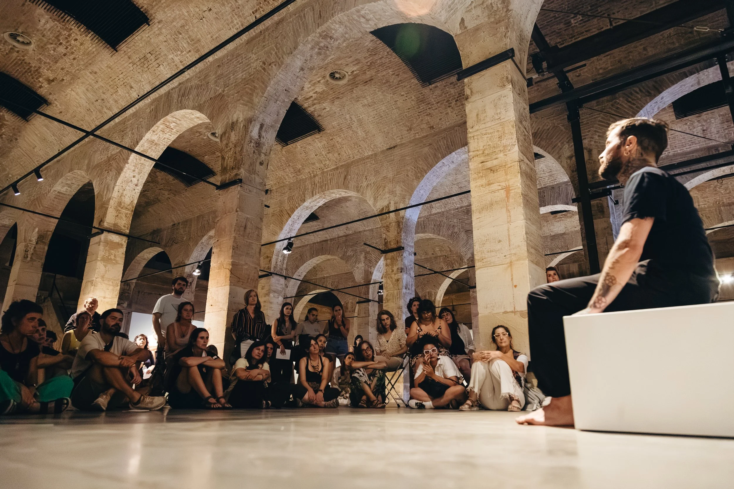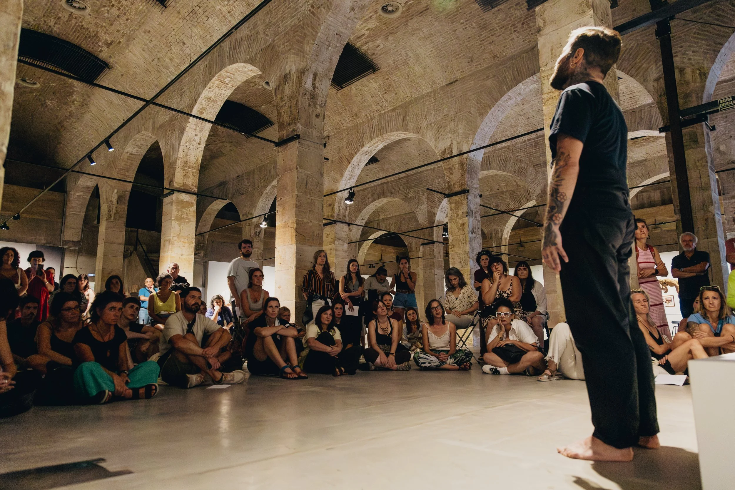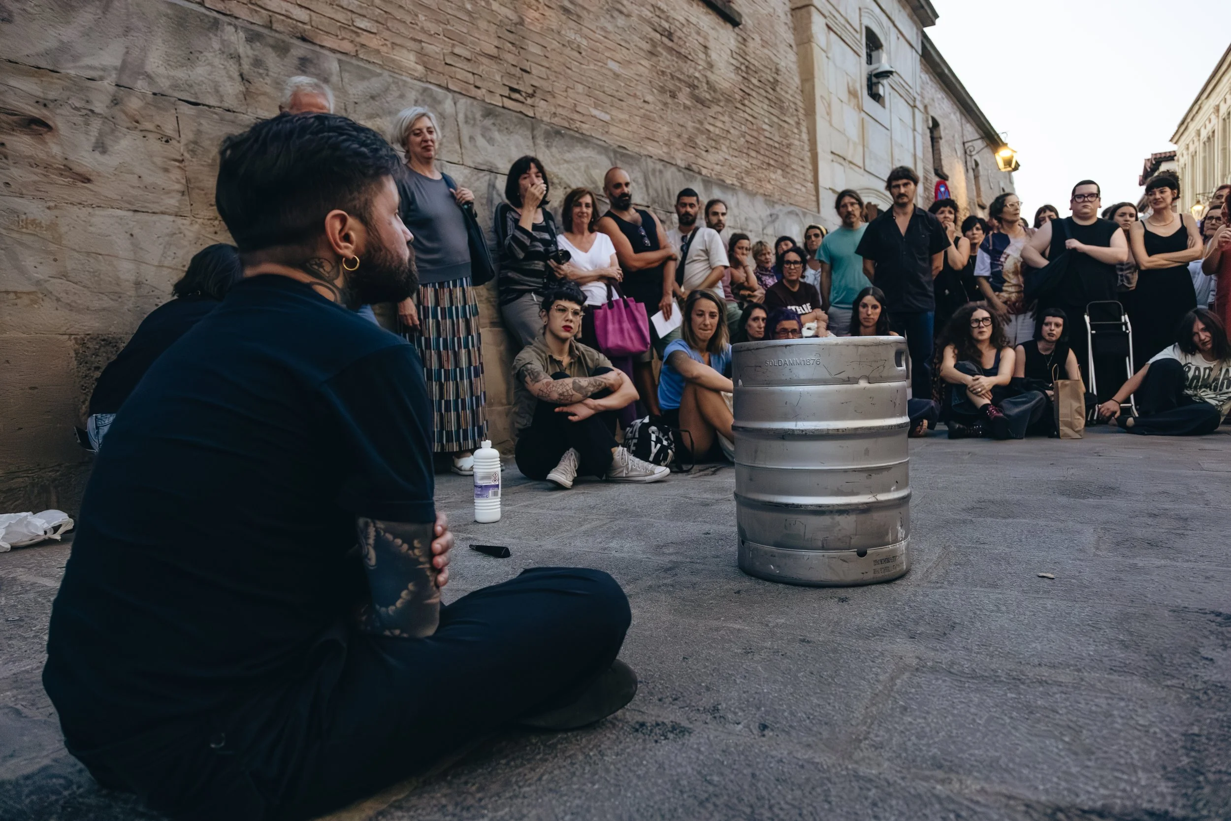 From 6 to 9 pm, the ten remaining actions or brief performances will take place, which can also be conceived as a single complete processual performance, carried out continuously in the Water Deposit, the Atrium, the Jovellanos Hall, and the exterior of Montehermoso.