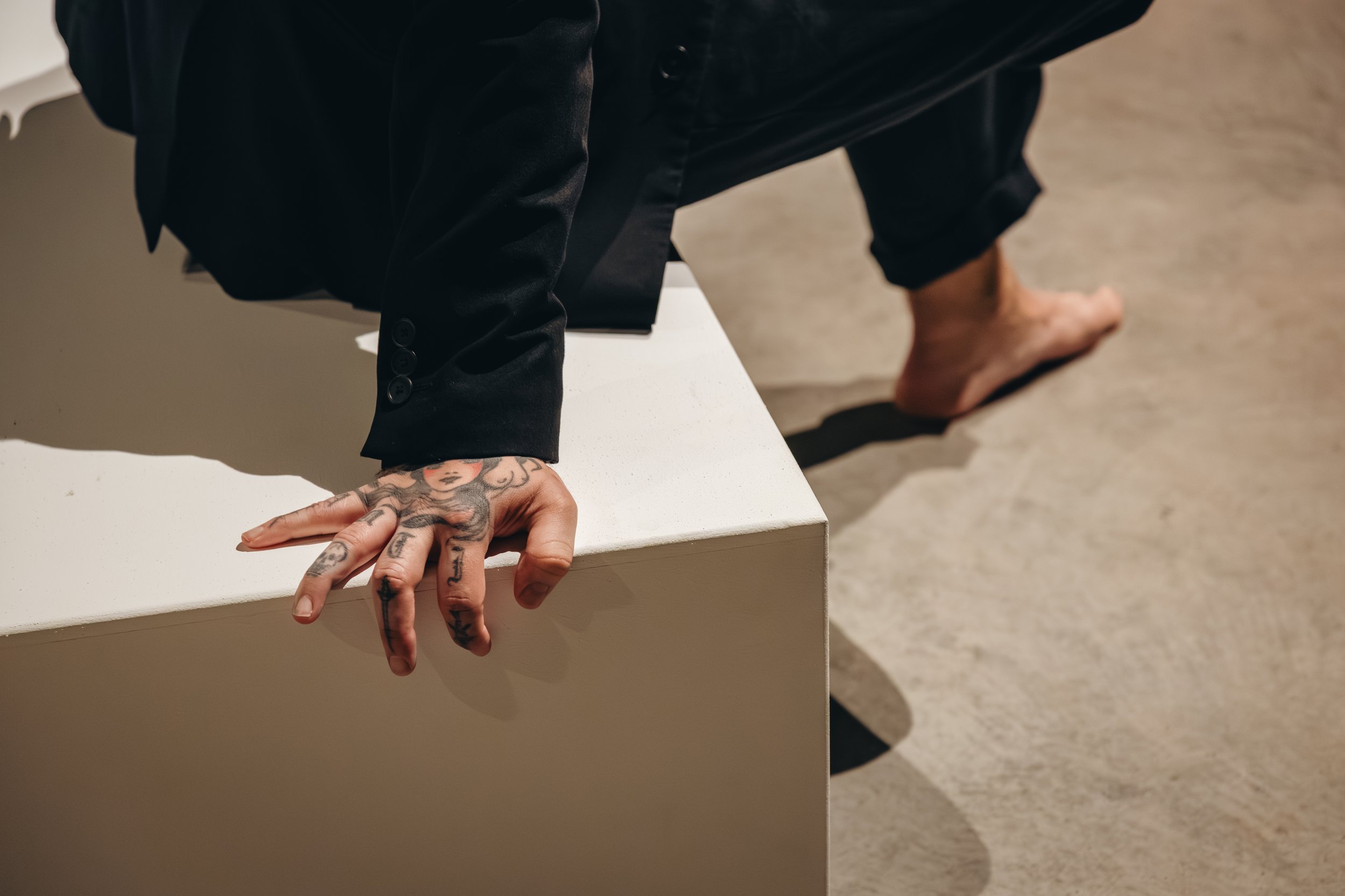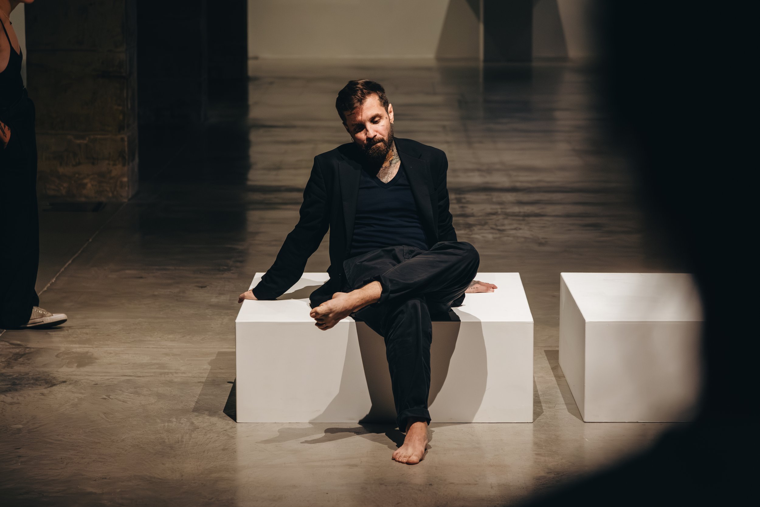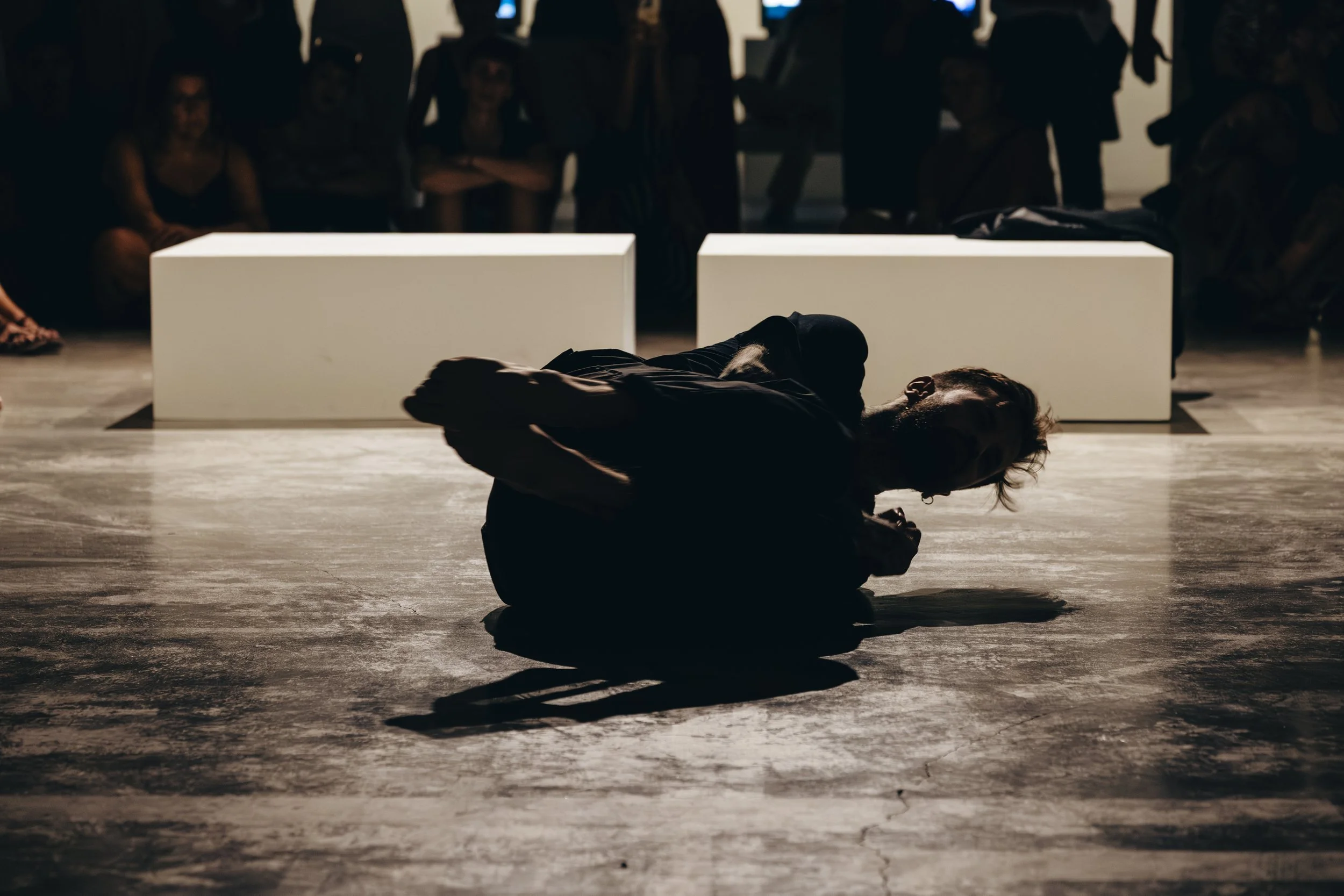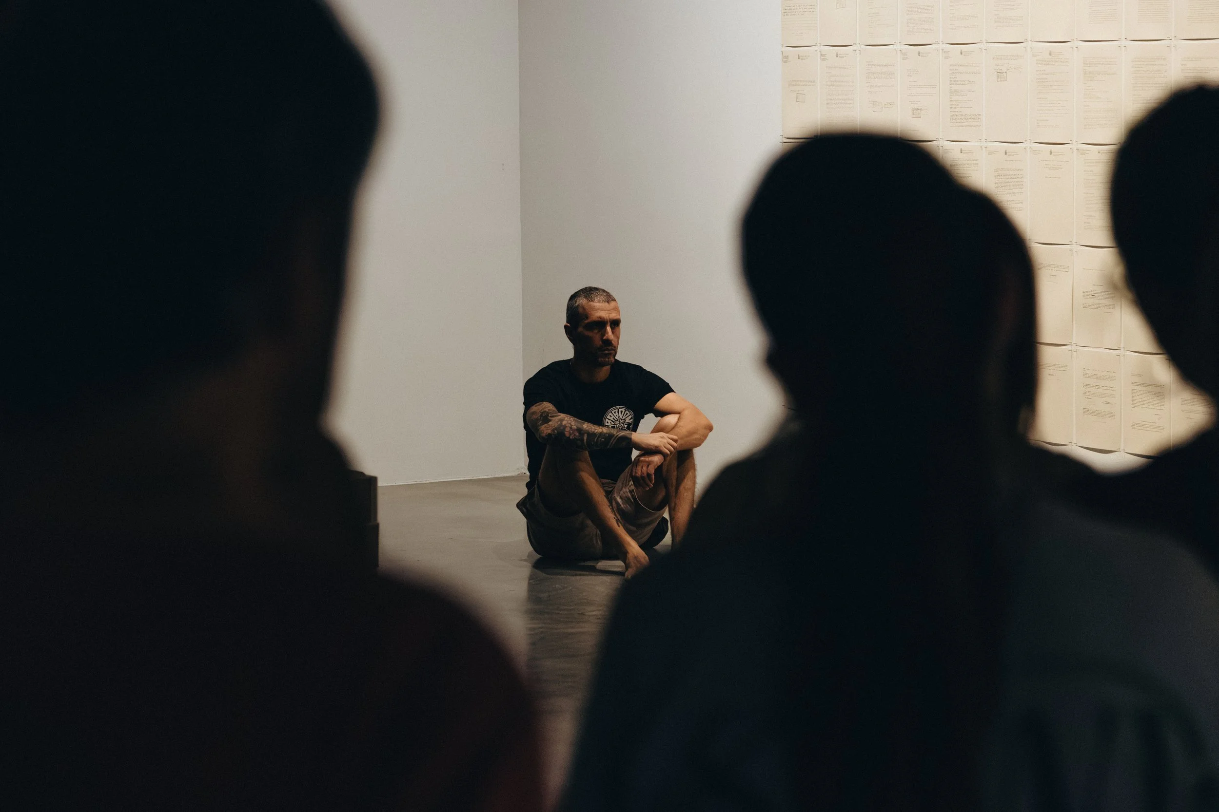 Fourth brief action – Self-Cradling. The reappearance of Azcona’s biological mother has led him to conclude—or at least ease—the self-harming impulse present in his work. At Montehermoso, he begins a process of small gestures of self-care, such as self-cradling, something the artist has done since the age of two during times of abandonment, sexual abuse, or other forms of violence.