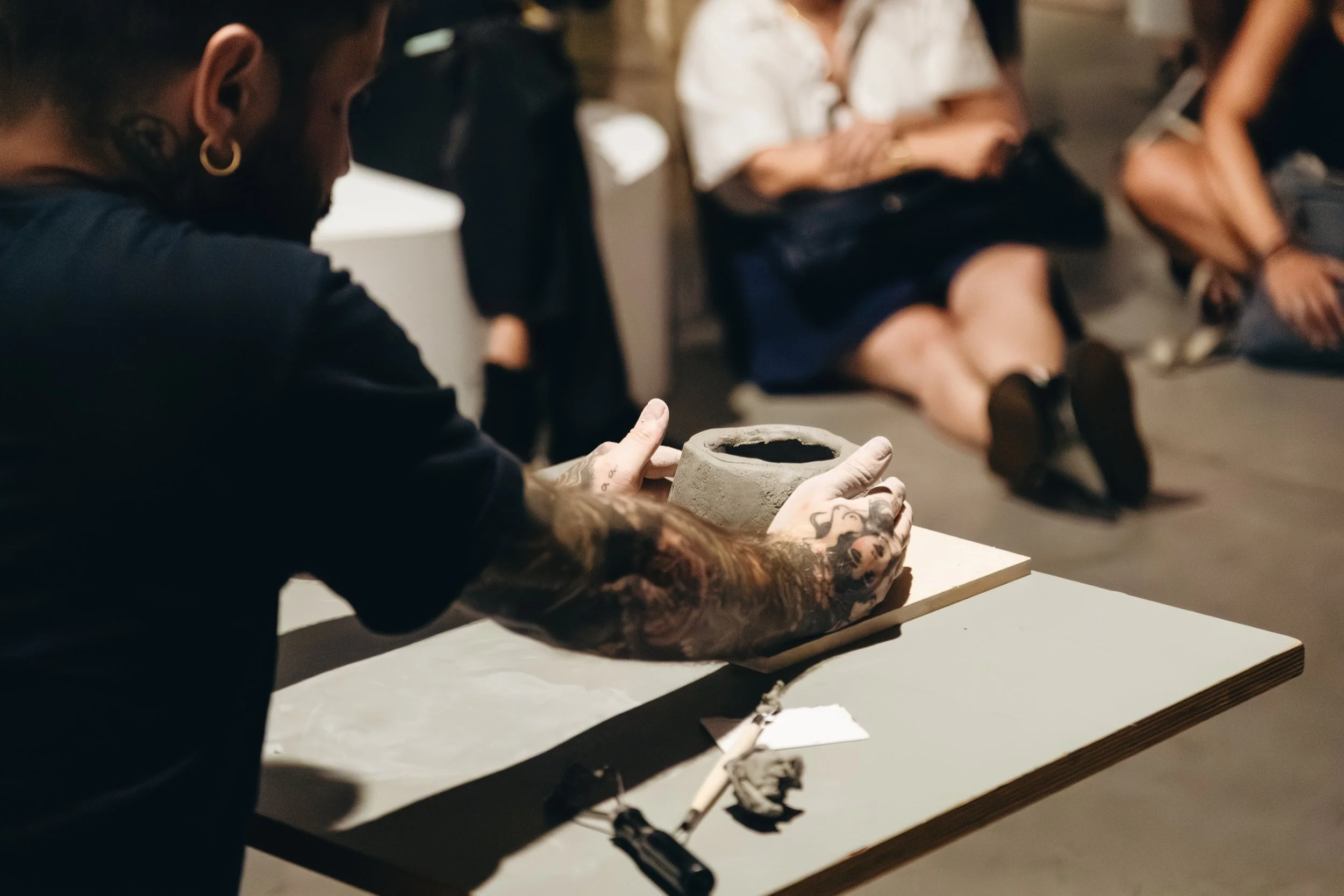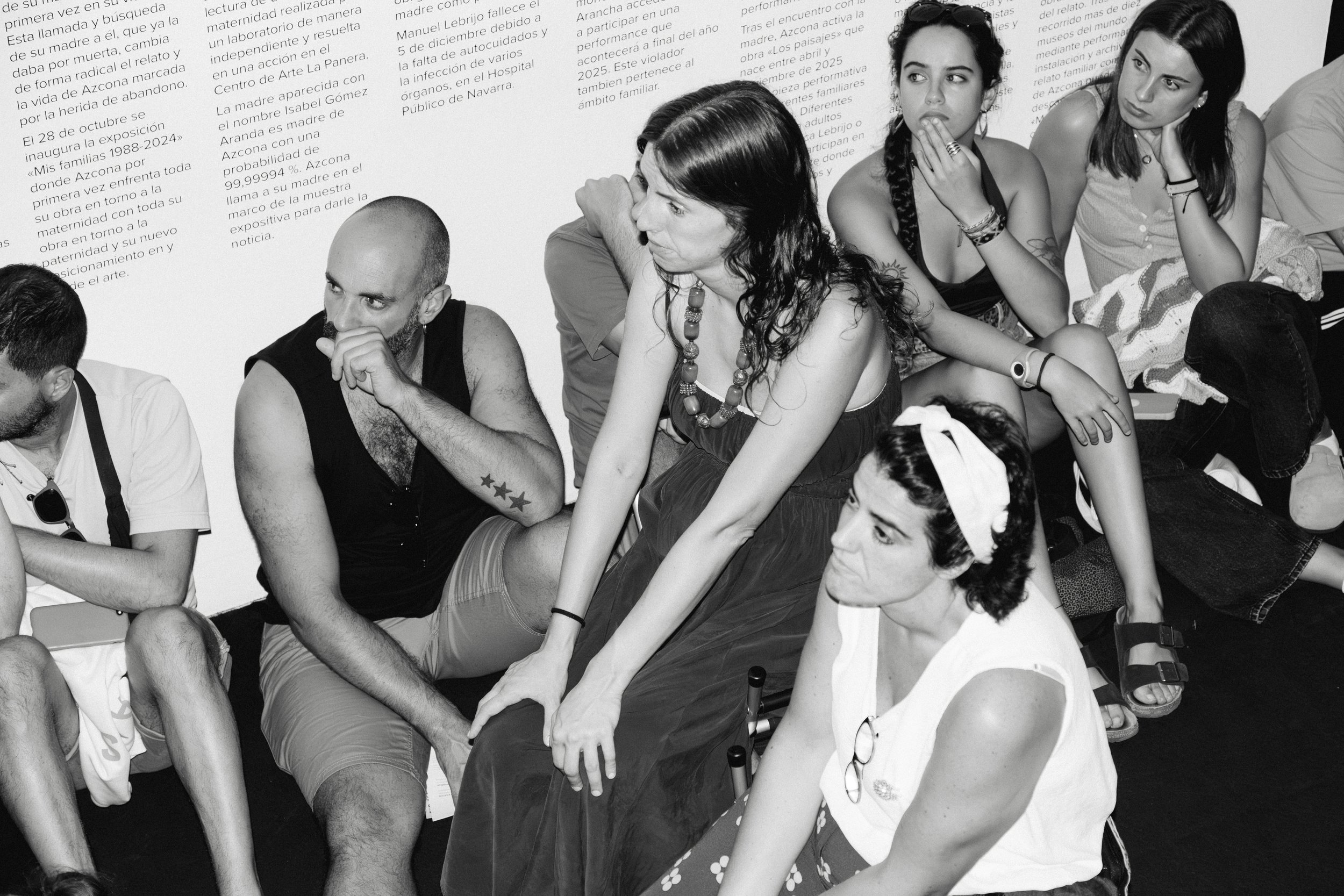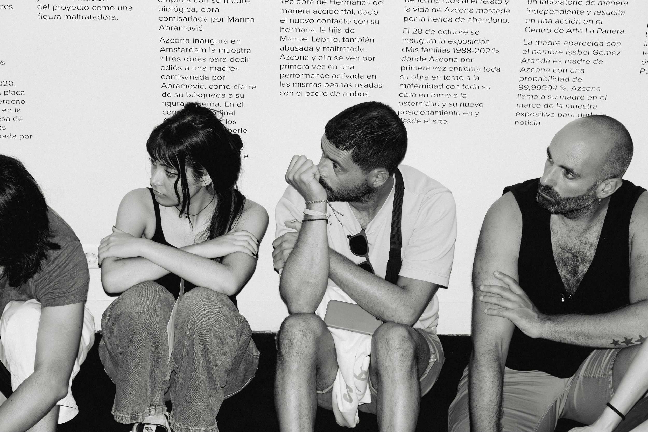 As part of ABEL AZCONA. MONUMENT TO THE FAMILY, we find an intimate, performative act in twelve actions, transforming the museum space into a site of closure and resolution of family conflicts. All of Azcona’s works are activated as performative processes in different stages. In this way, the artist—through document, object, word, body, and installation—will inhabit the exhibition in confinement for a week as a means of closing certain works. He will carry out the final guided tour and bid farewell to each piece in the show, read in intimacy words about the wound and the abolition of the family or his adoption and complete abandonment file, close the sound piece of calling his mother until losing his voice, begin a process of self-care through self-cradling, continue the process with his sister Soraya, and say a definitive farewell to his father through burning and sculptural creation. He will also encounter for the first time his second mother—the woman who prostituted his body as a child—and hold her hand on the pedestals, request the public’s help to resolve the process of the adoptive family, begin a new piece in collaboration with fifty children stolen during the Franco regime, collectively reclaim the death of Mendieta by connecting it to the violence suffered by his own mother, and carry out a final encounter with pedestals in a closing act featuring bertso and improvisation.
