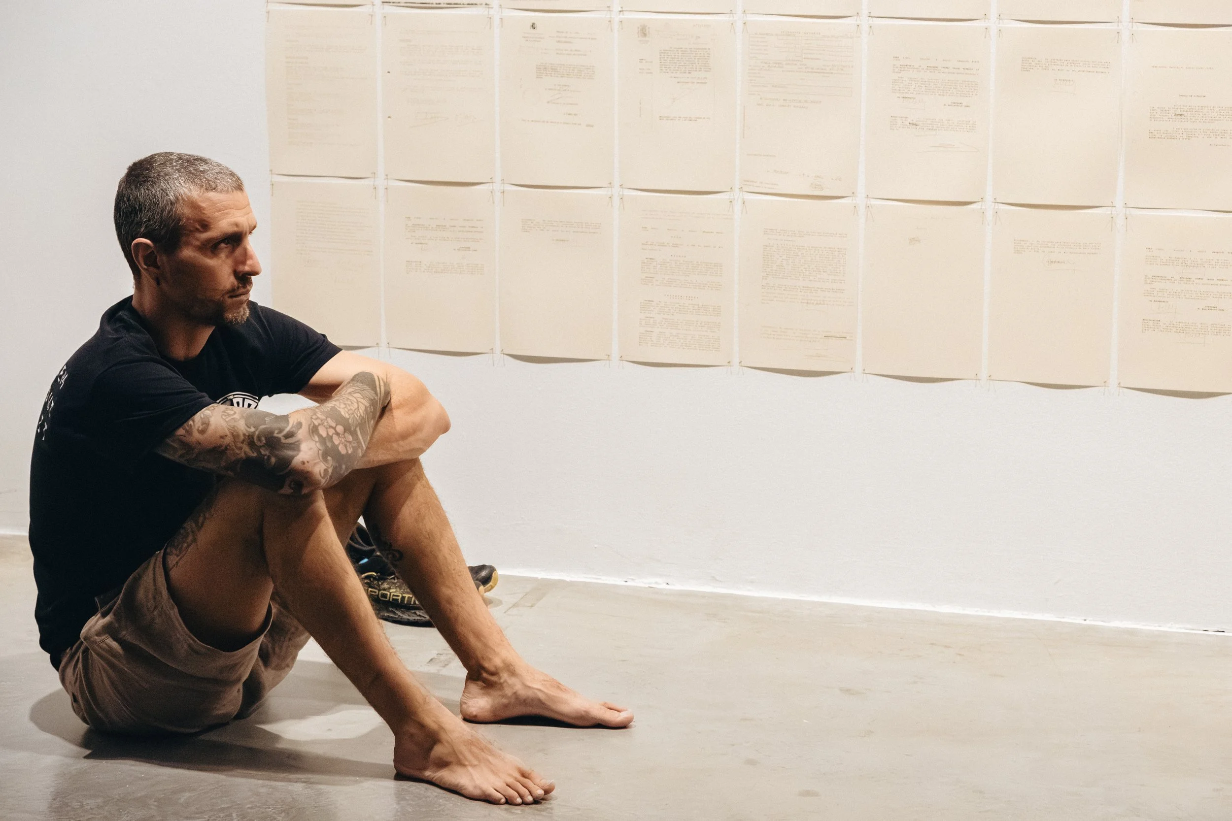 First processual action – Days of Inhabiting. From Tuesday, September 16 to Saturday, September 20, Azcona will perform the piece Days of Inhabiting inside both exhibitions dedicated to him at Montehermoso, Vitoria, Gasteiz. More than thirty hours of confinement during which, in public intimacy through action, word, and writing, he will close some of the open processes central to the exhibition. A work of process and confinement that will conclude with the closing of the exhibition.