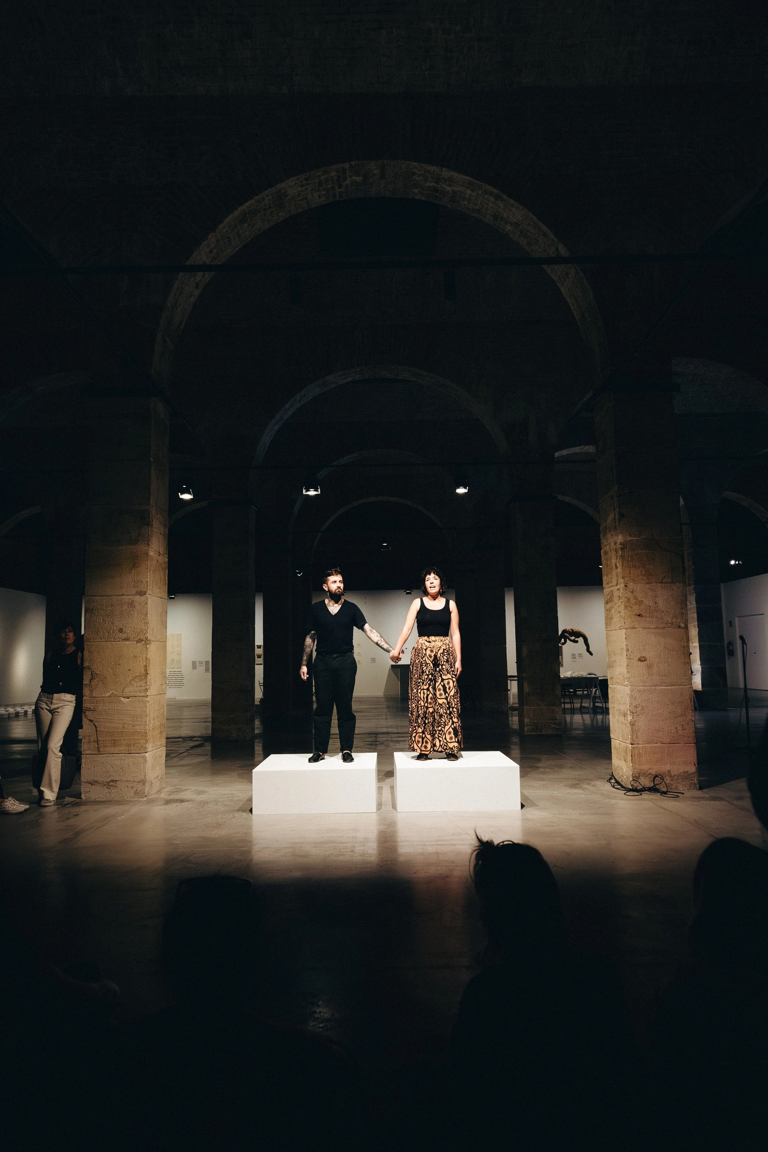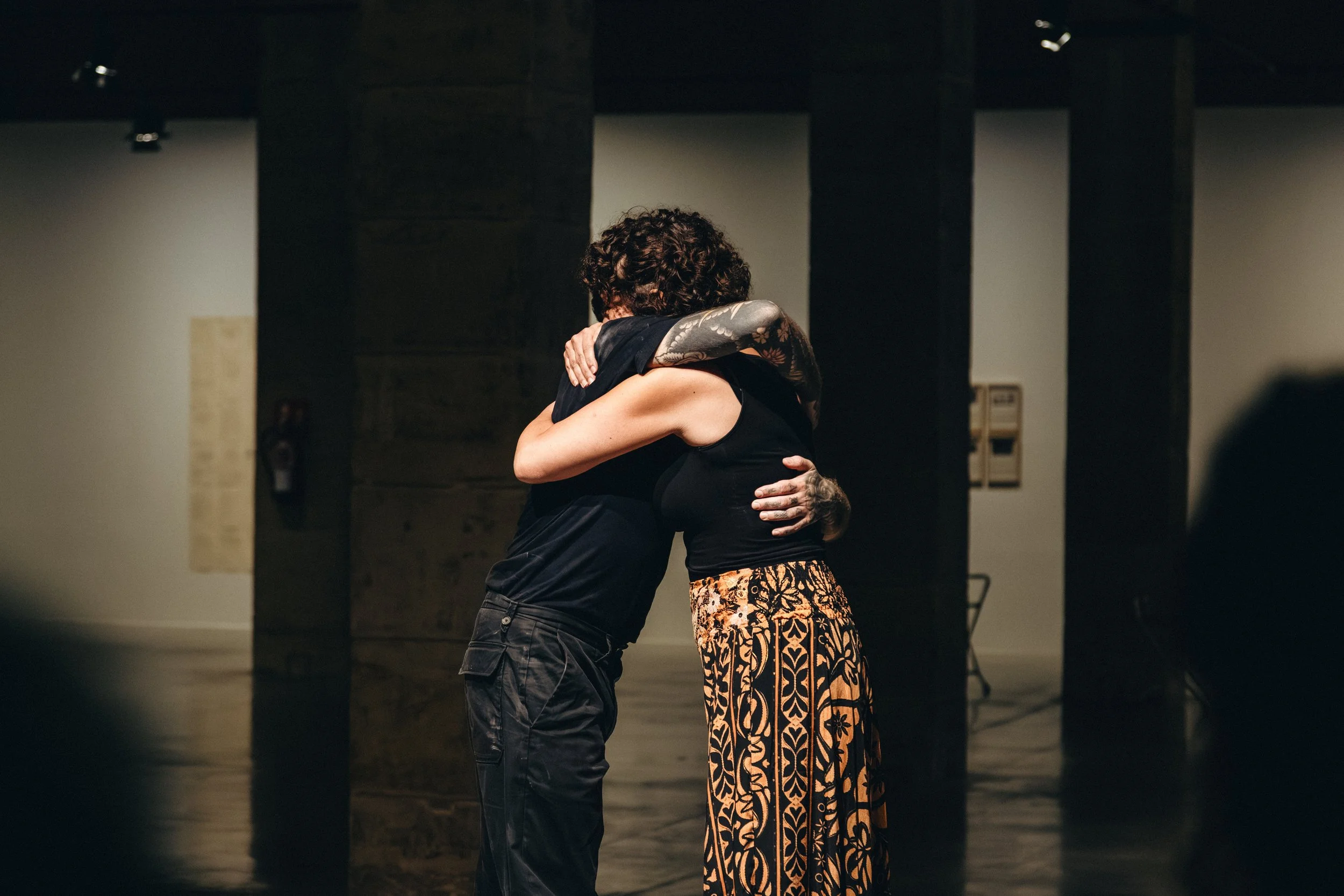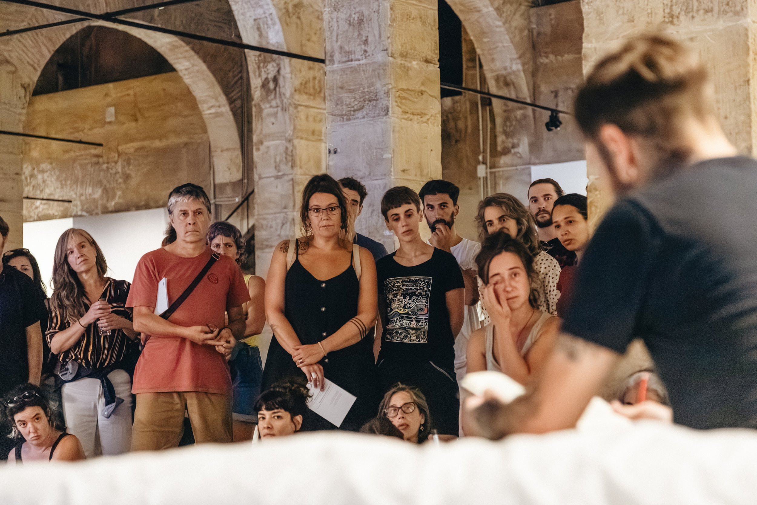 Ninth brief action – Farewell to Isabel Azcona? Many of Azcona’s performances arise from the collectivization of trauma or experience. This time, he transforms the artistic space into a place of conflict resolution, involving the audience in decision-making through body and word.