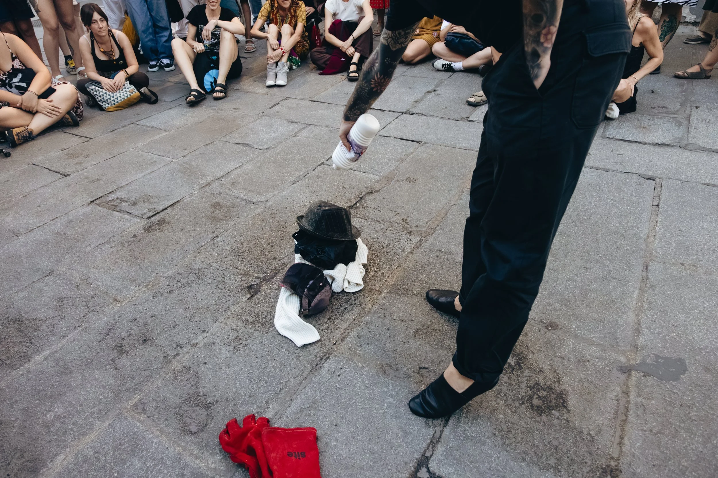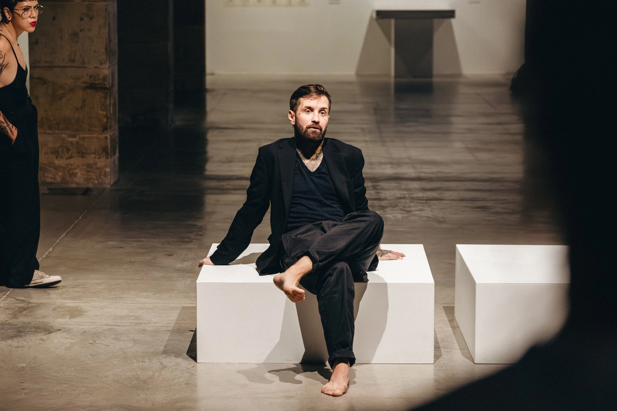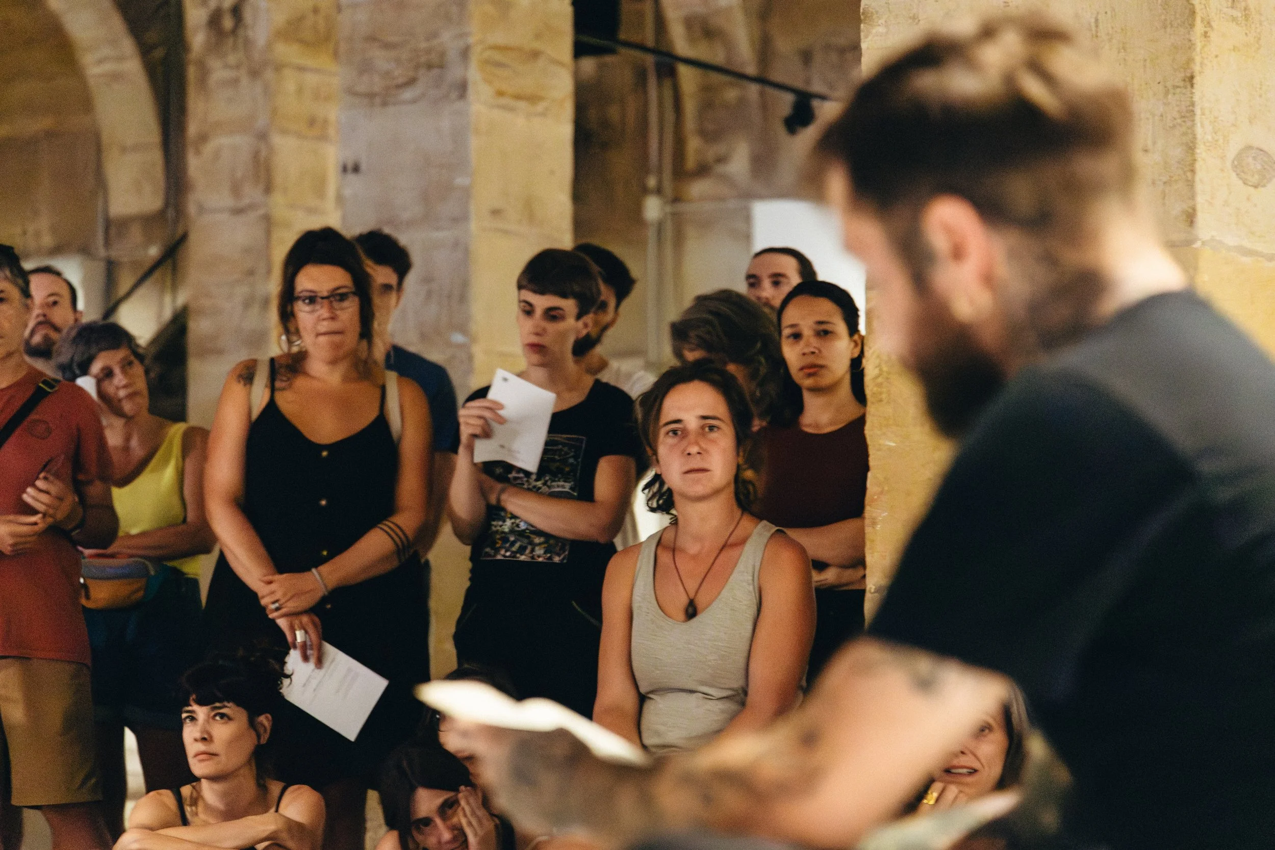 Ninth brief action – Farewell to Isabel Azcona? Many of Azcona’s performances arise from the collectivization of trauma or experience. This time, he transforms the artistic space into a place of conflict resolution, involving the audience in decision-making through body and word.