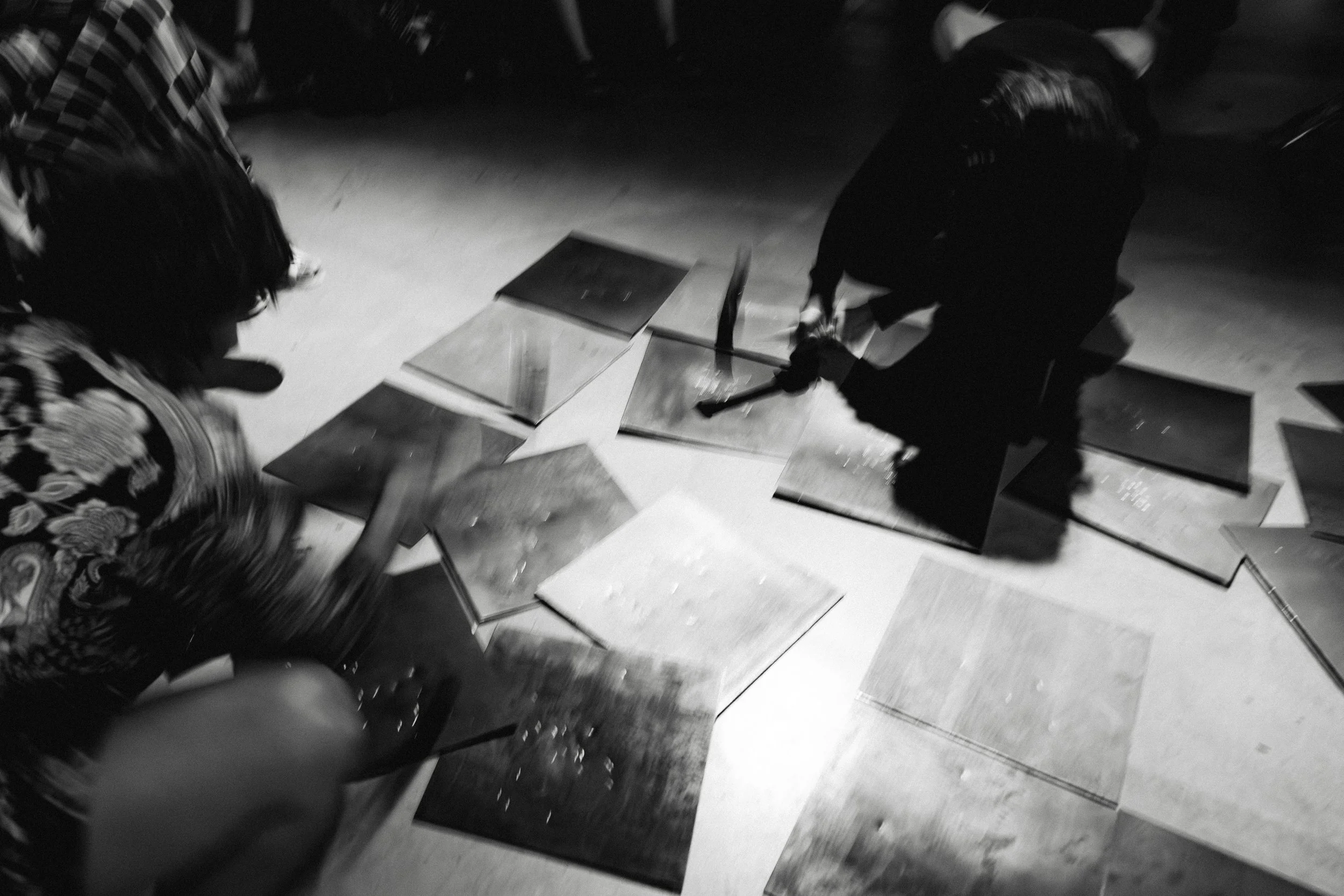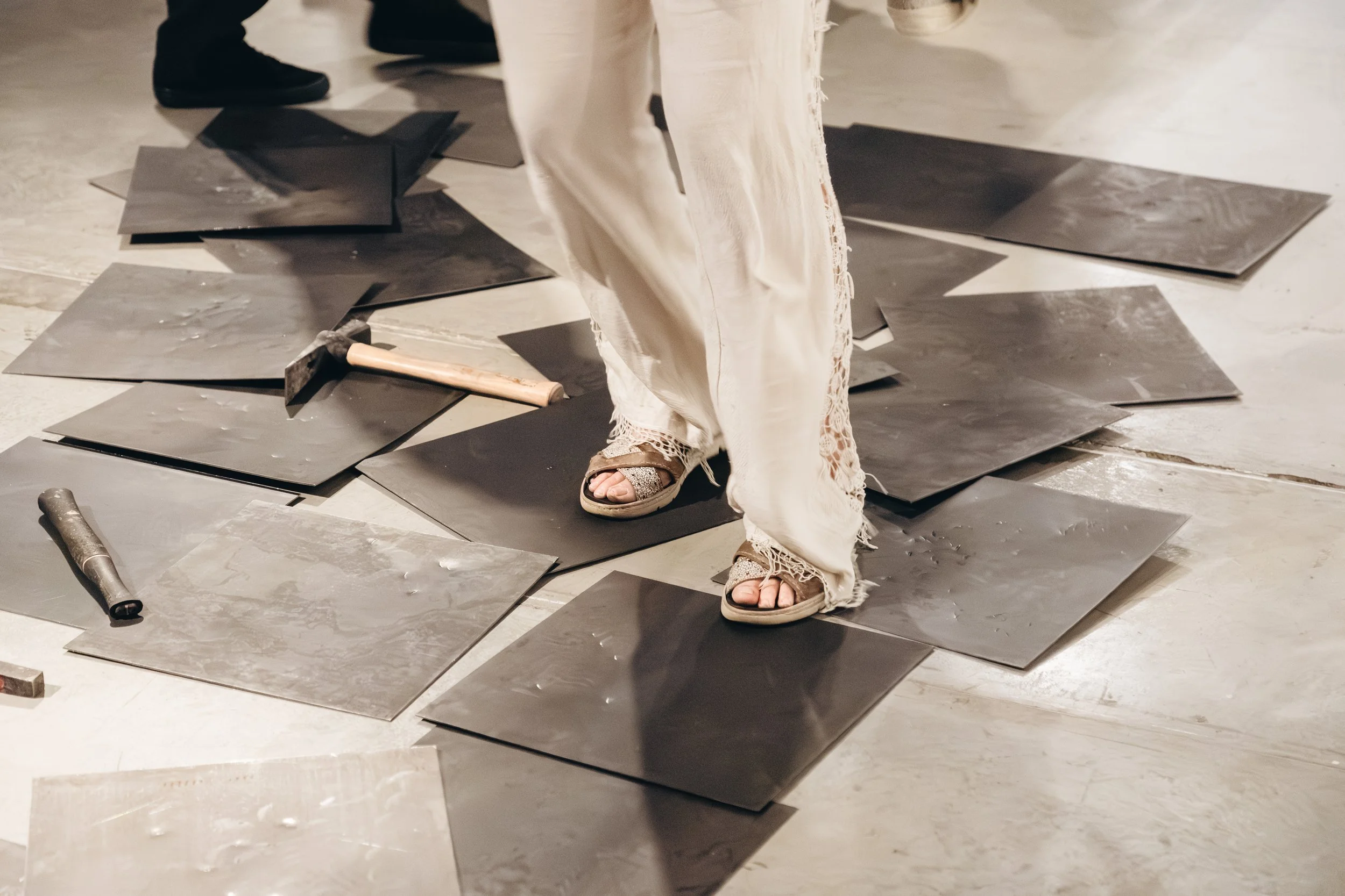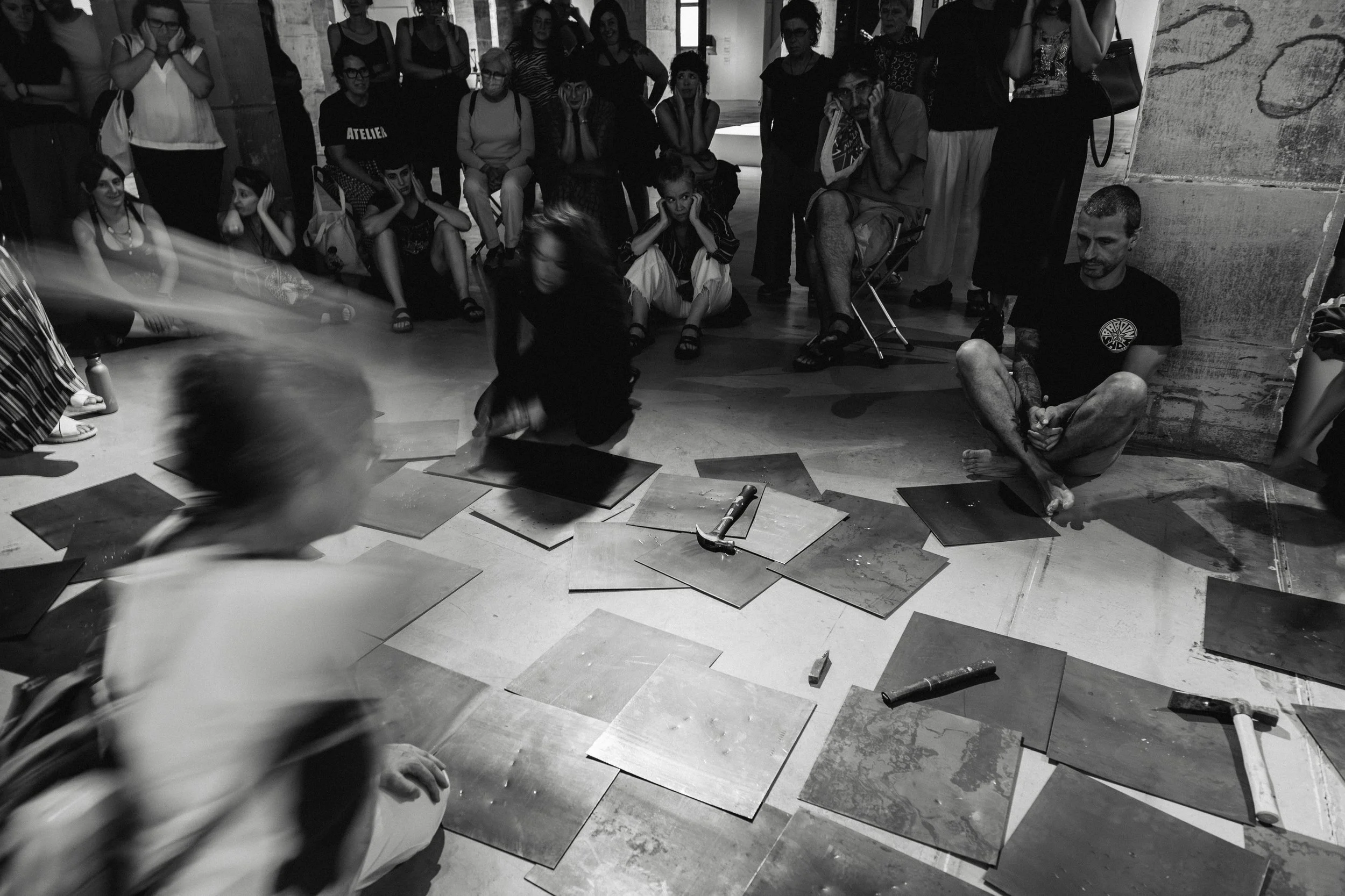 Eleventh brief action – Where Is Ana Mendieta? The final collective activation in four years of The Masters, a piece about Carl André, or the murderer of artist Ana Mendieta. In this action, survivors of violence will activate the sound piece together with the artist.