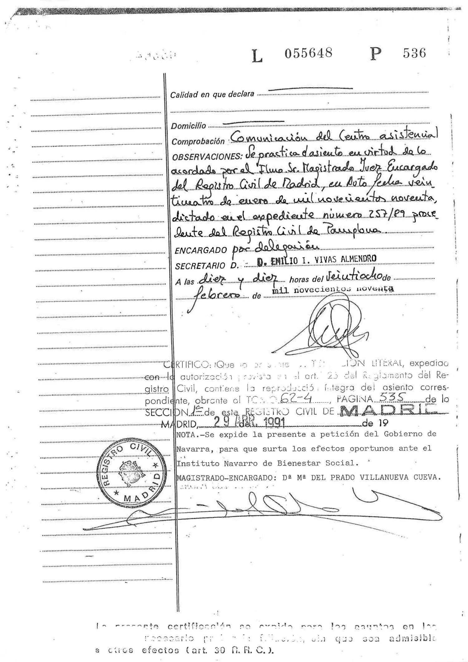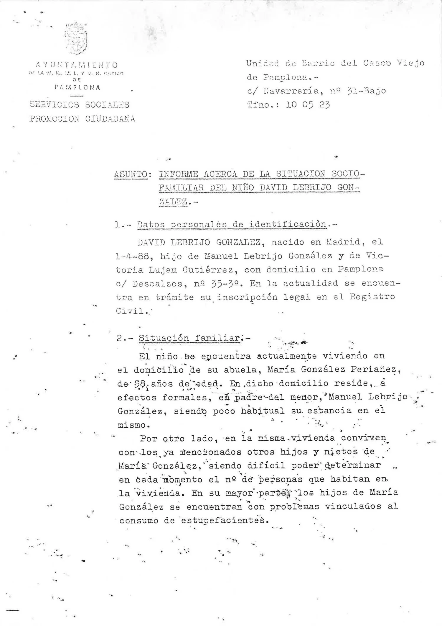 “I was born on April 1, 1988. The birth certificate, numbered 2841329 and dated December 2, 1991, proves that legally, I did not exist until nearly four years of age. I was twenty or twenty-one when I obtained the complete document from the Superior Court of Justice of Navarra. After several months of negotiations, refusals, and complications, I managed to get a judge who advocated for transparency and the right to know in searches for origins to photocopy all one hundred and twenty-eight pages in their entirety. This included dozens of pages and data that are not typically provided in a standard search for origins process. Information on evaluations of foster and adoptive families, transcriptions of calls made by the environment, neighbors, and relatives to Social Welfare and guardianship of minors. Documentation of resignations and diverse testimonies by different families. Additional assessments, signatures, phone numbers, and a final document demonstrating that the last renunciation of paternity could not be carried out despite two opportunities; one due to drunkenness and another due to absence. Reading through the pages, it becomes evident that I was a child in a situation of abandonment, total solitude, or without vital joy, leading me to regress to moments I remember and others constructed by me.