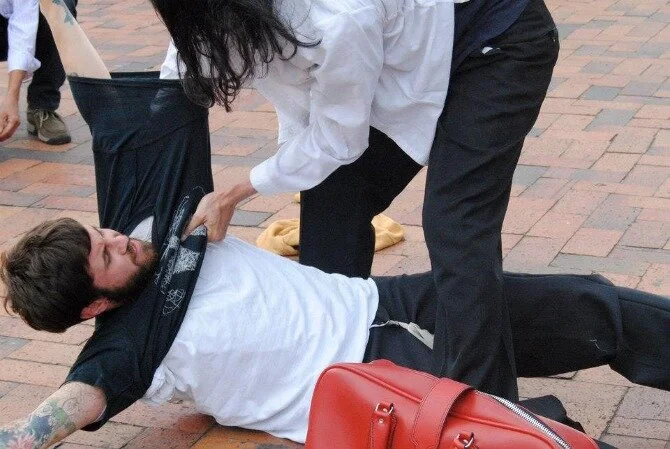 The dialogue of action with the theorist, curator and university professor Consuelo Pabón was developed around ritual and performance as a tool for catharsis and positioning. Pabón was responsible, along with Gustavo Villa, both curators of the International Fall and Recovery Performance Event at the Museum of Modern Art in Bogotá, for bringing Azcona as an international guest two years prior, so the idea of curating and politicizing the body and the actions of both were not unknown to them.