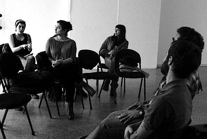Dialogues in Action is a creative process designed and developed by artist Abel Azcona in 2014 and 2015 in the cities of Bogotá and Pamplona. The process was the opening piece of the International Performance Biennial of Bogotá, developed at the Museum of Contemporary Art and, the following year, the opening piece of the International Performance Biennial of Pamplona, developed at the Huarte Contemporary Art Center and other spaces in the town. Both events had local and international guests.