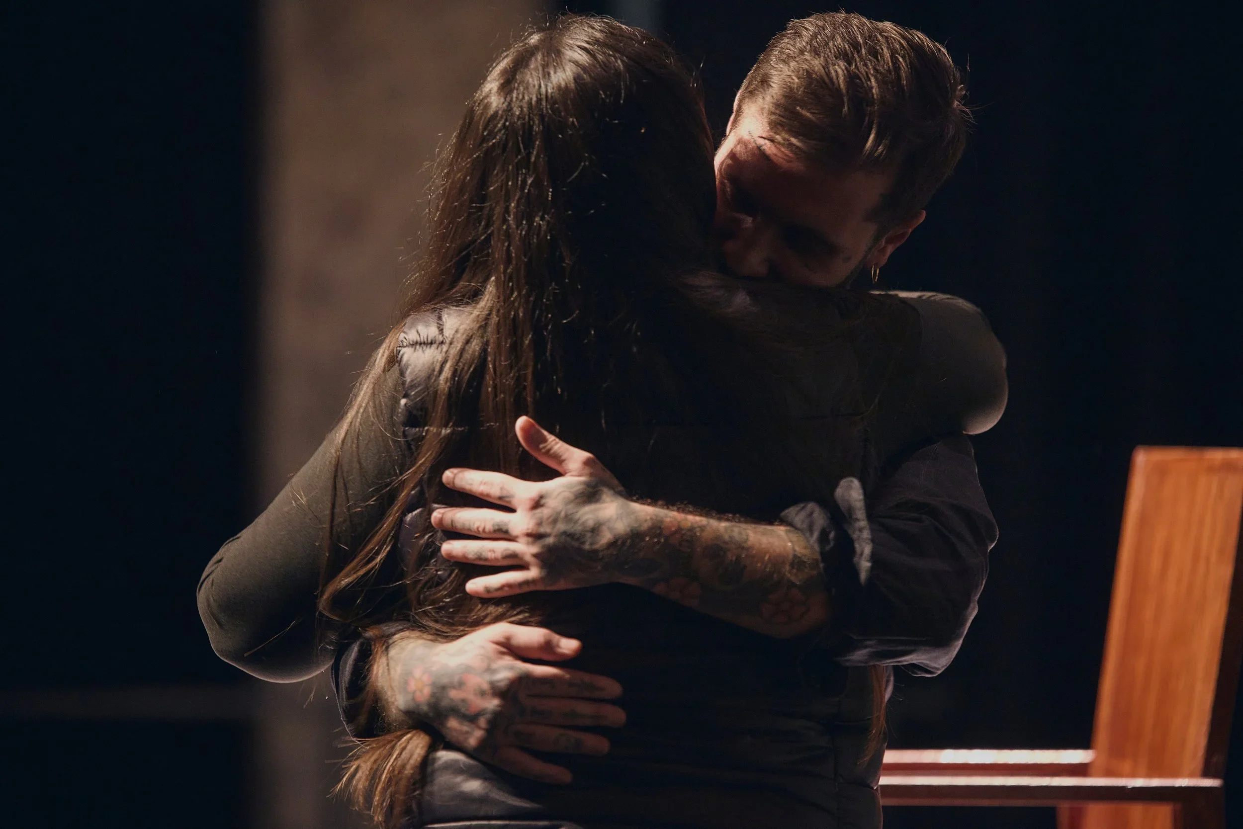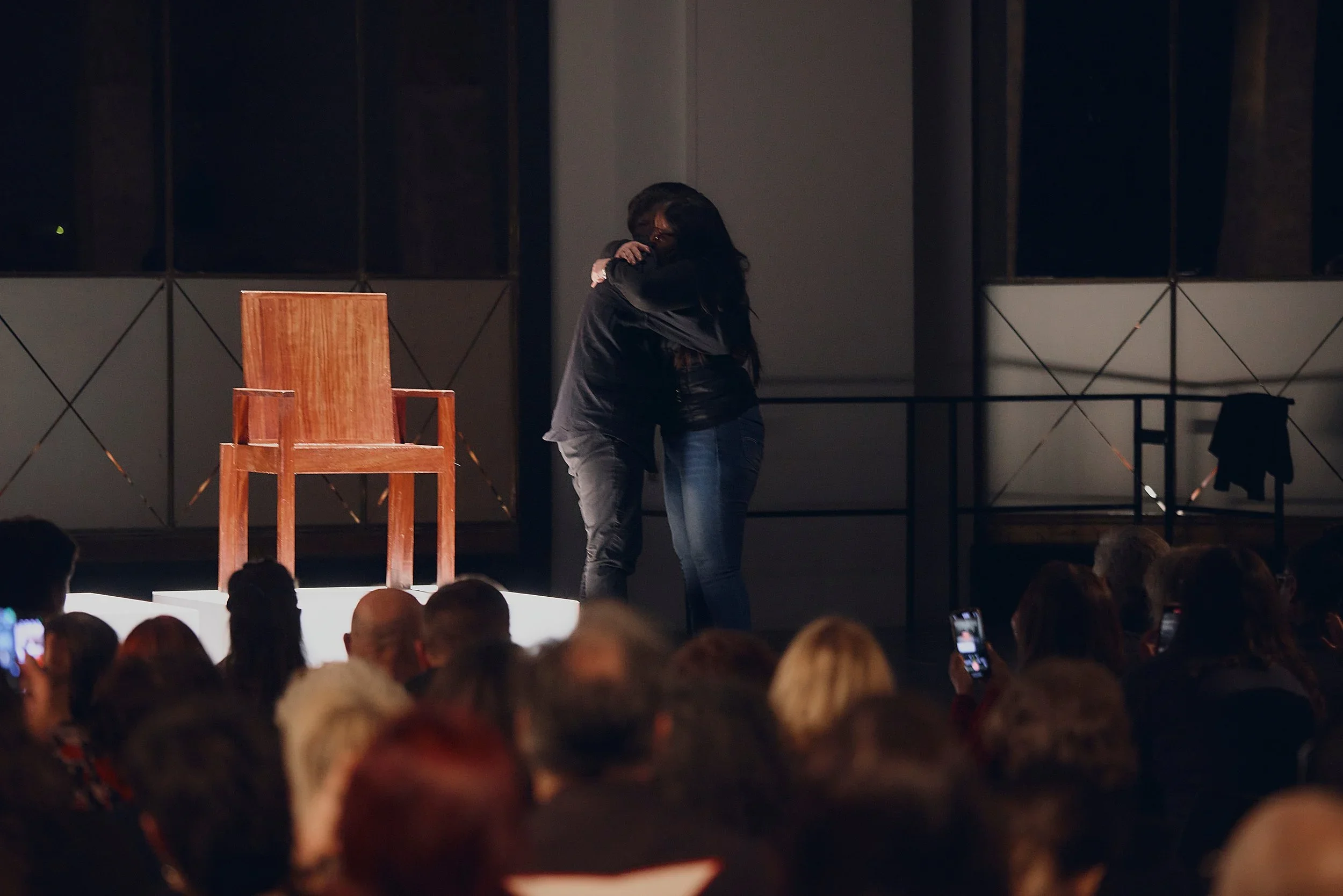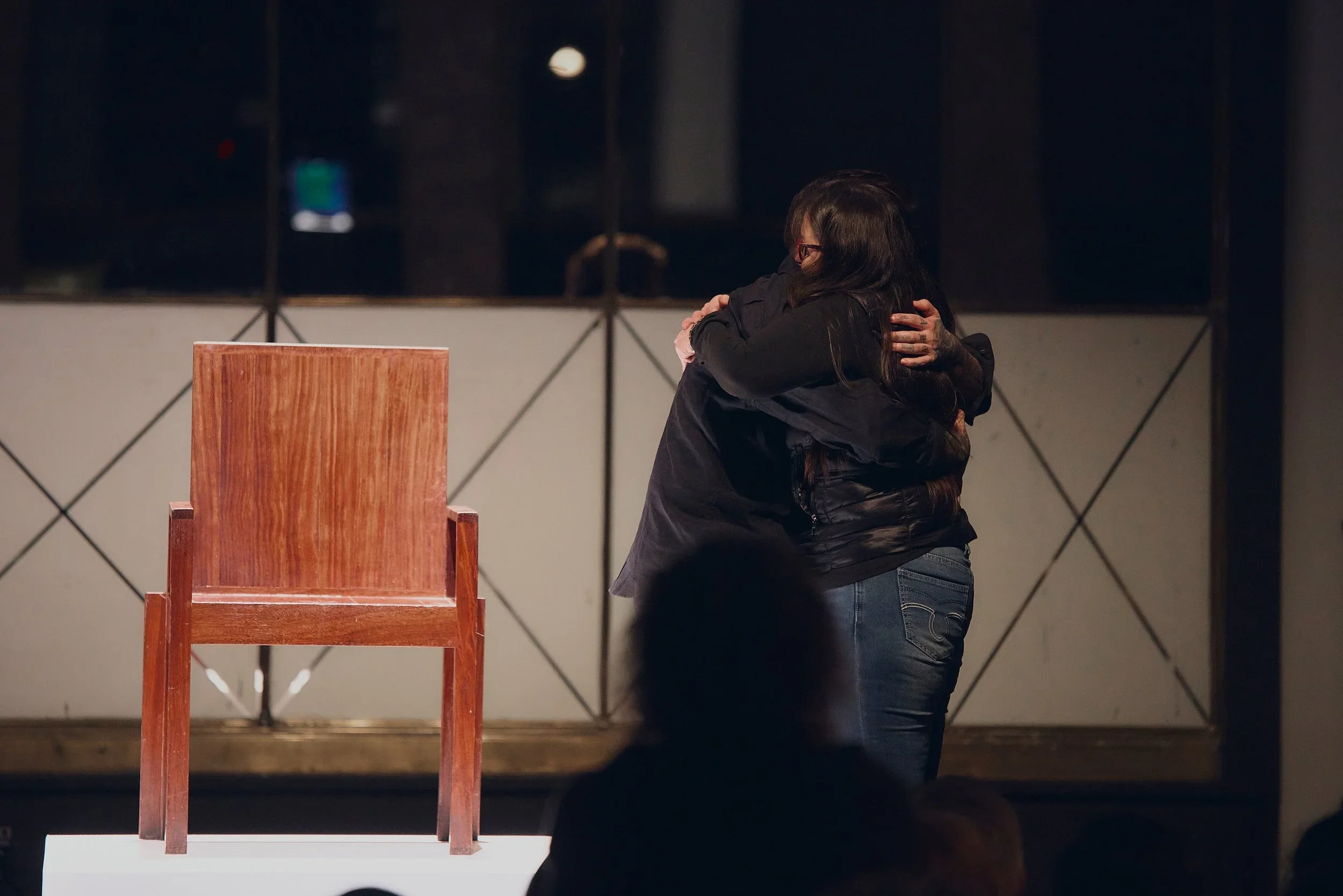 The embrace shared by Azcona and Gómez Aranda on April 1, 2025—the first time in their lives since the birth on April 1, 1988—served as the seed for the work. This embrace, at the Círculo de Bellas Artes in Madrid, brought a mother and son marked by histories of sexual violence physically together for the first time.