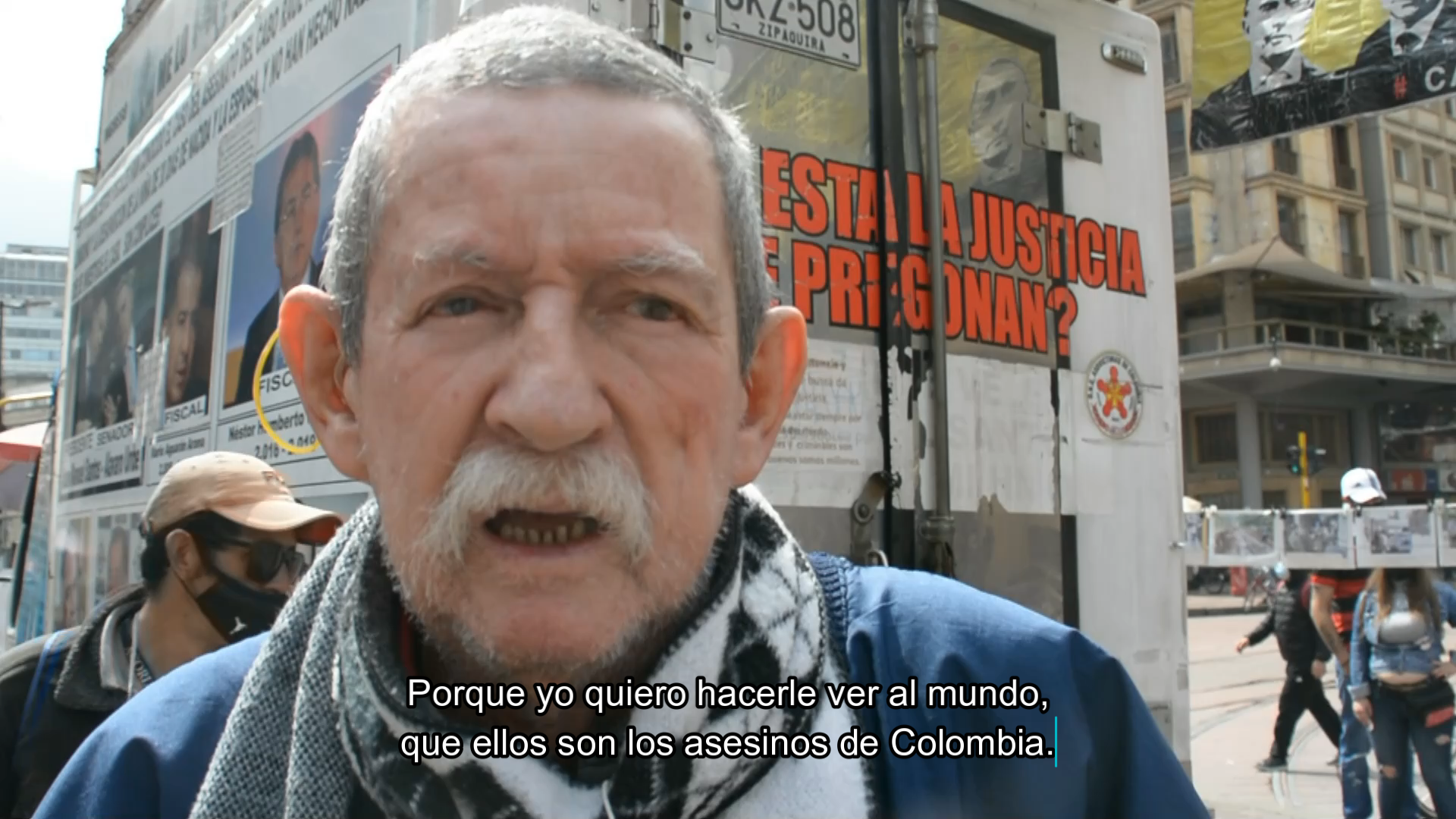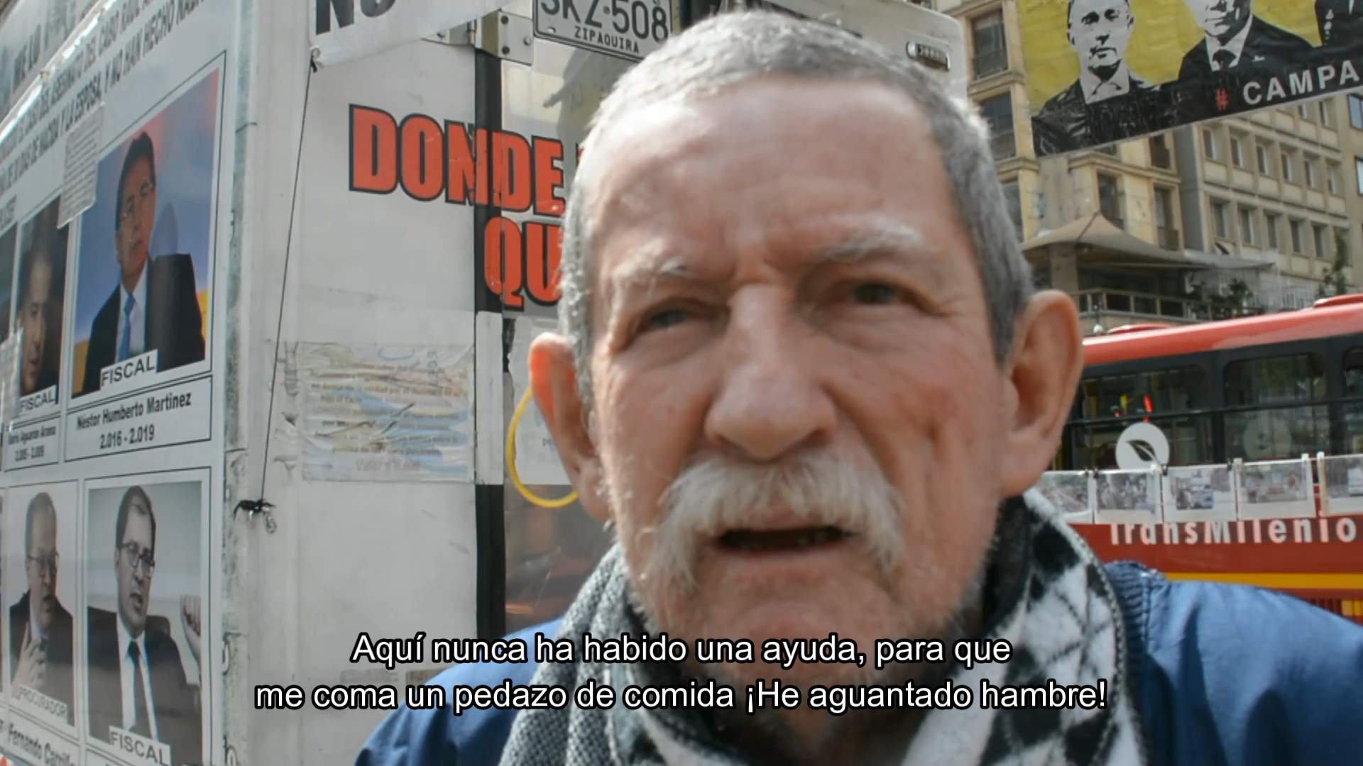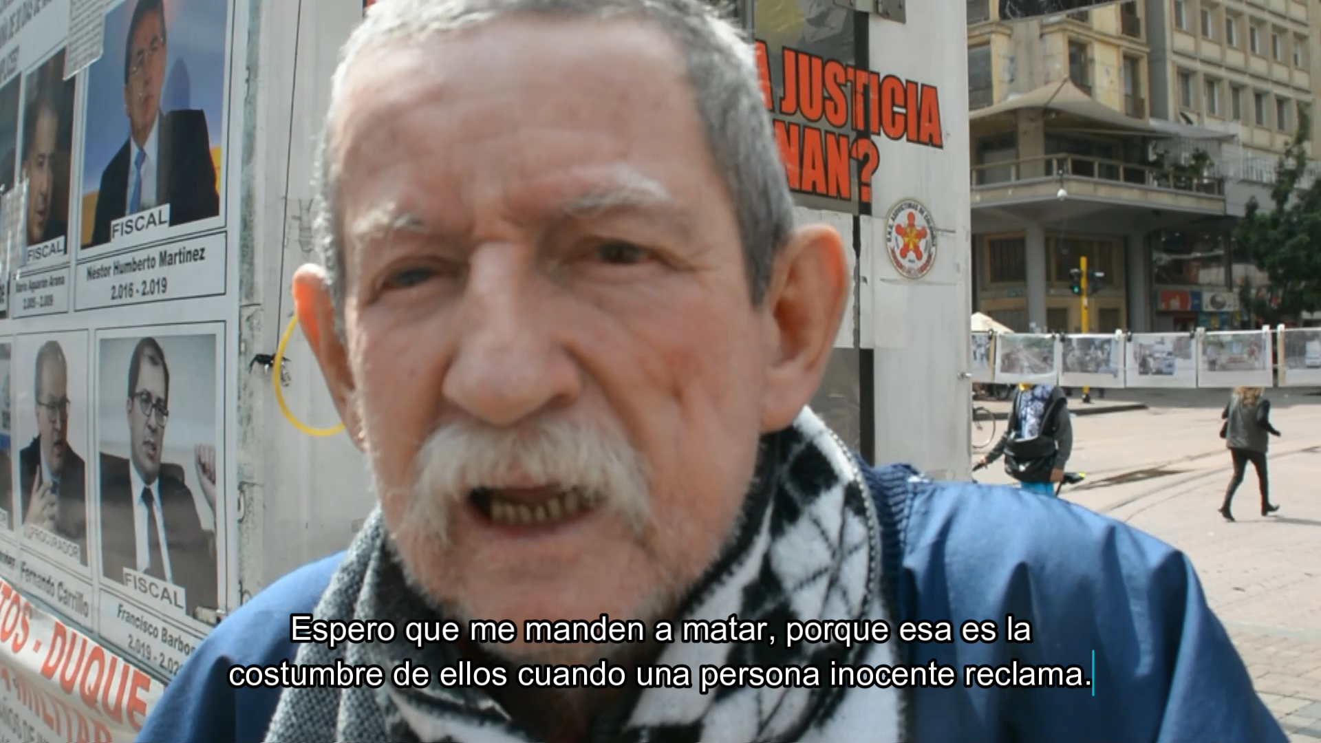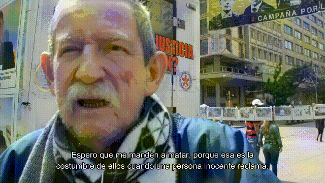 Testimonio de Raúl Carvajal mientras instala su protesta en el centro de la ciudad de Bogotá.