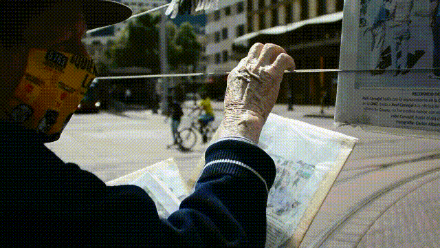 Don Raúl baja de su camión después de hora y media, exhausto pero habiendo terminado de poner todas sus denuncias, unas horas más tarde debería desmontar todo de nuevo para el día siguiente repetir de nuevo toda la historia.