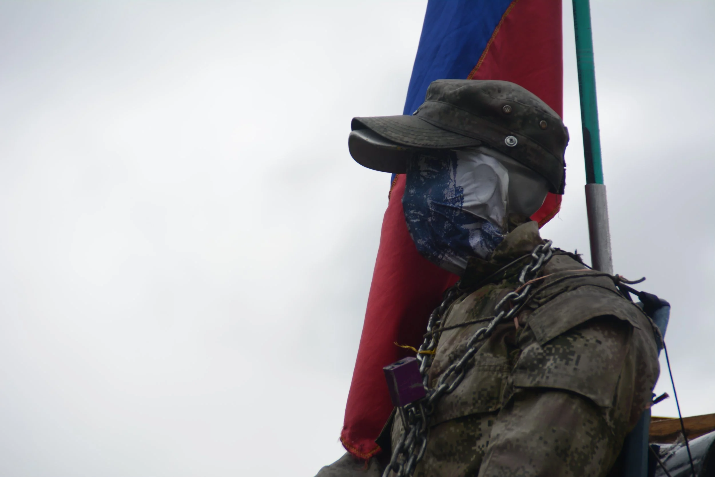 El maniquí llevaba consigo un uniforme de su hijo y estaba atado con las mismas cadenas con las que Don Raúl se encadenó en algún momento al Bunker de la Fiscalía exigiendo justicia por su hijo. Esta representación de su hijo estaba siempre encima del camión, recordando precisamente como años atrás había llevado el cadáver de su propio hijo sobre el techo de un camión para depositarlo en la Plaza Bolivar de Bogotá.