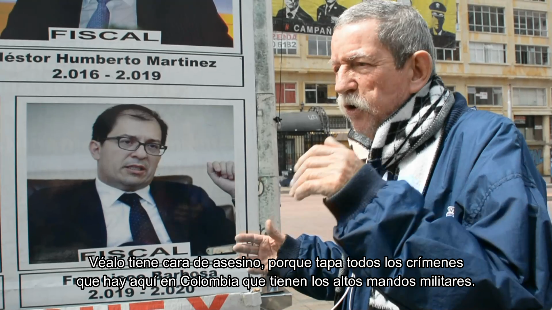 Fotograma de la obra documental don Don Raúl Carvajal pone nombres y apellidos a los culpables.