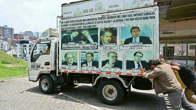 Raúl Carvajal, padre del cabo primero Raúl Antonio Carvajal, recorrió durante más de 10 años el país en un camión para exigir justicia por el asesinato de su hijo.