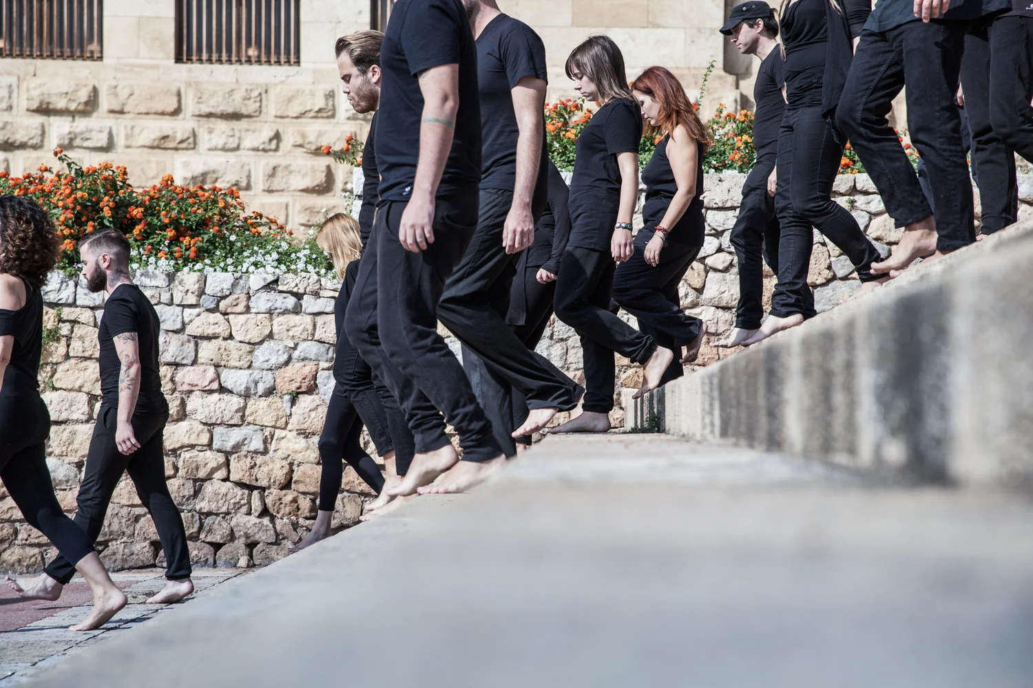 The first of the actions was carried out with thirty volunteers in the city of Tarragona on October 14, 2015 and the action was reactivated in twenty-four different cities until it was closed with one last performance in 2017, with almost one hundred people touring the city of Tarragona again. People of more than fifteen different nationalities. American, Finnish, Swedish, Australian, French, Mexican, English, Spanish, Filipino, Italian, Moroccan, Syrian, Dutch, Colombian and Argentine walkers denounced with their own floating bodies in the Mediterranean water, as a symbol of union and empowerment. This latest performance designed and created jointly by artist Amanda Palmer and artist Abel Azcona together with all the participants, was part of the audiovisual project of both artists in tribute to Aylan Kurdi.