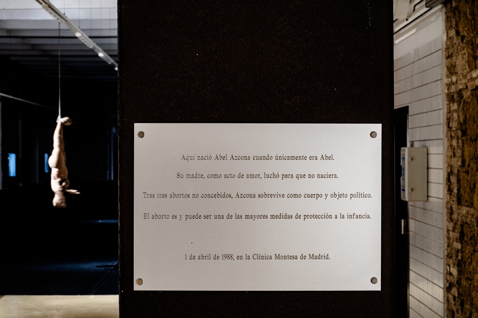 Hijo de una prostituta politoxicómana que lo abandonó nada más nacer, la obra de Azcona se ha construido en un “vacío de identidad” que le ha empujado a una urgencia del conocimiento. Su vida/obra se ha vertebrado en torno a dos líneas paralelas que se tensan entre sí: de un lado, el reconocimiento de la violencia de lo conocido; y, de otro, el angustioso ejercicio de imaginación de lo desconocido. El primer eje constataba un infierno; el segundo, imaginaba múltiples infiernos posibles. En ambos casos, se trata de gestionar una vida impuesta, no elegida, en la que la familia no dejaba margen para la acción voluntaria del sujeto.
