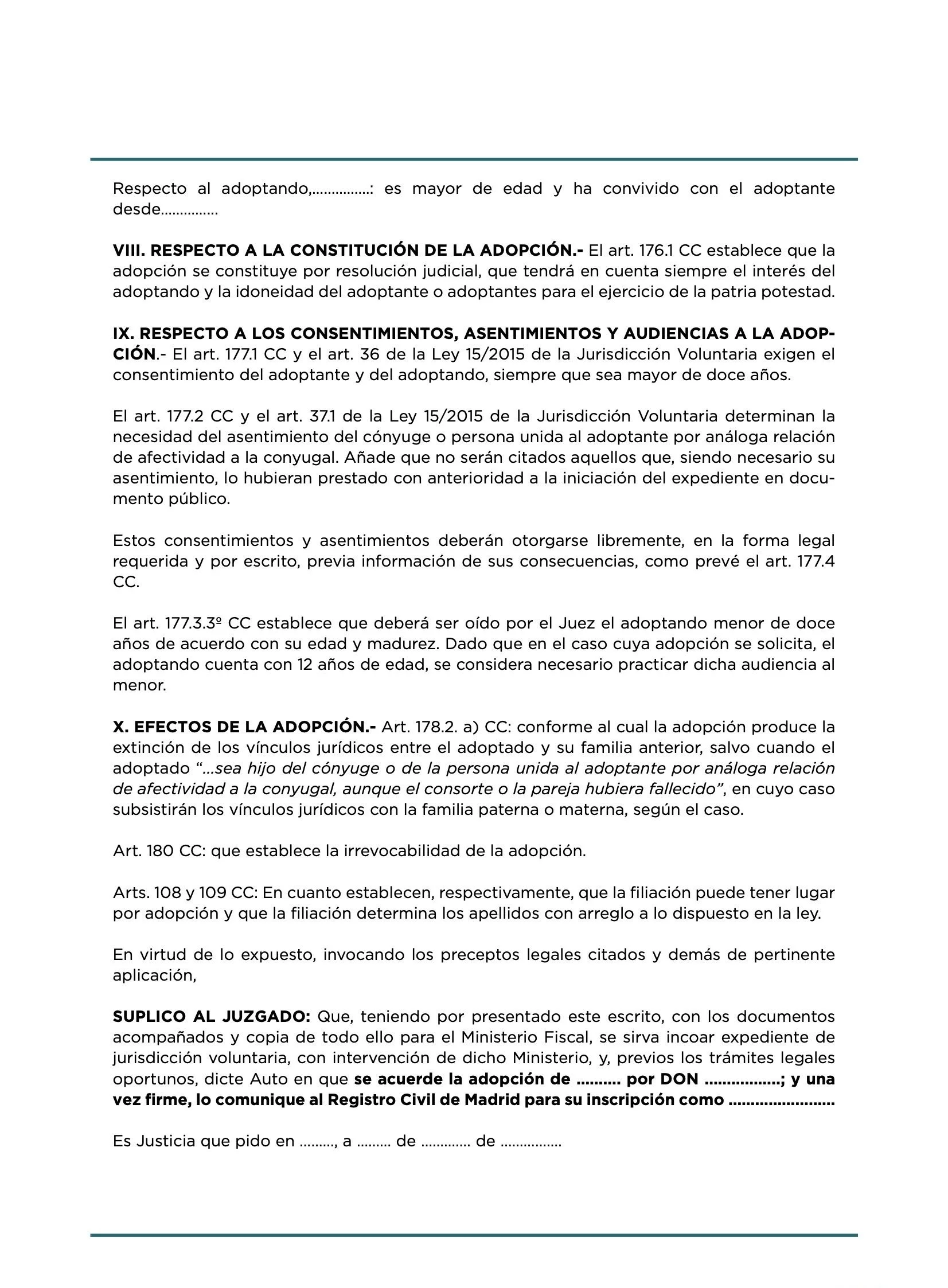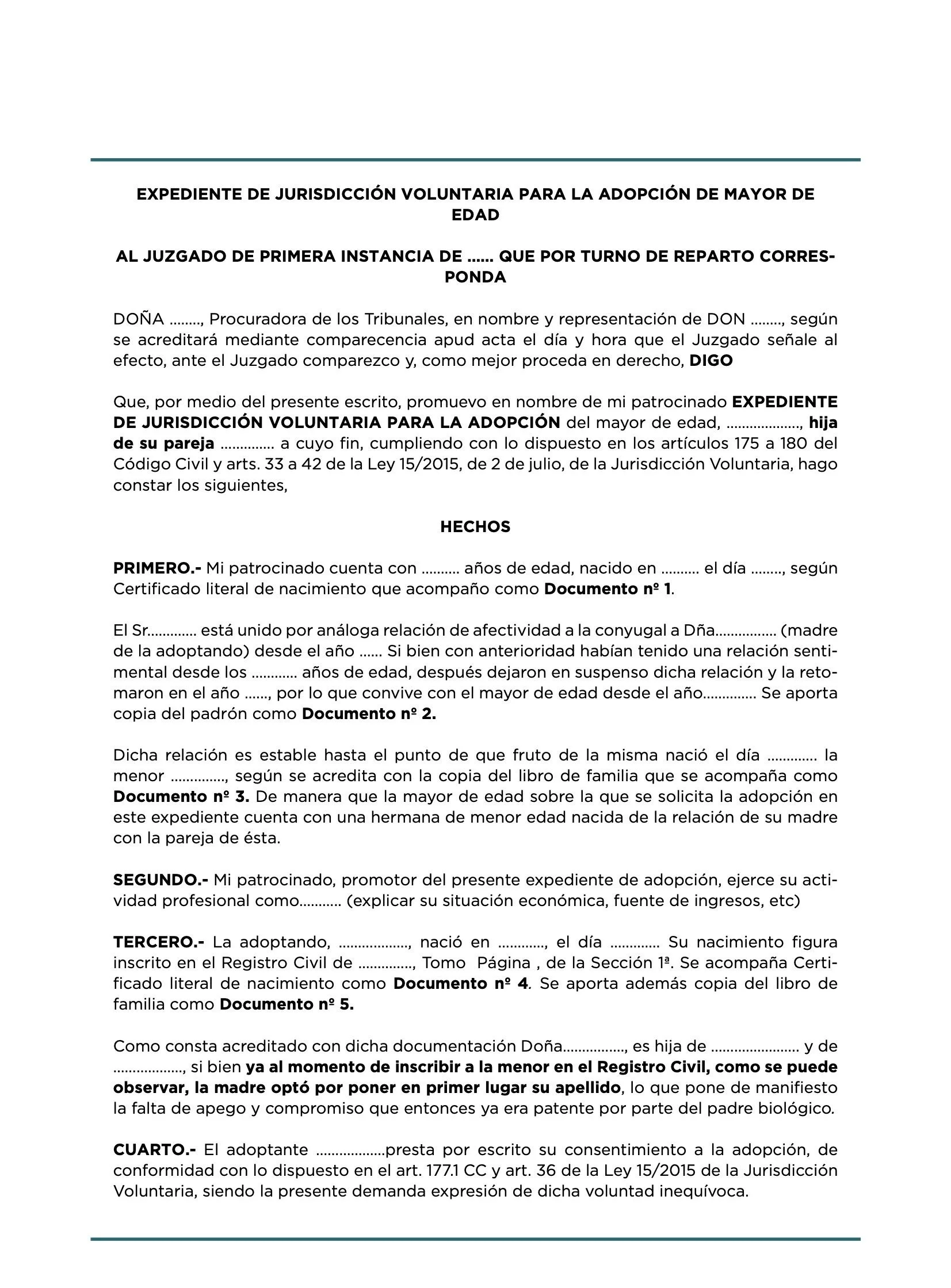 Organic Law 8/2015, of July 22, which modifies the child and adolescent protection system and came into effect on August 18, 2015, has amended Article 175.2 of the Civil Code. Under the current wording, the requirements for adopting an adult are: