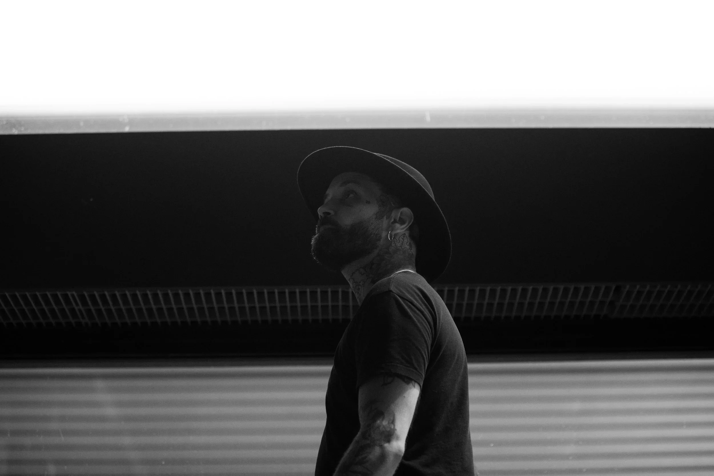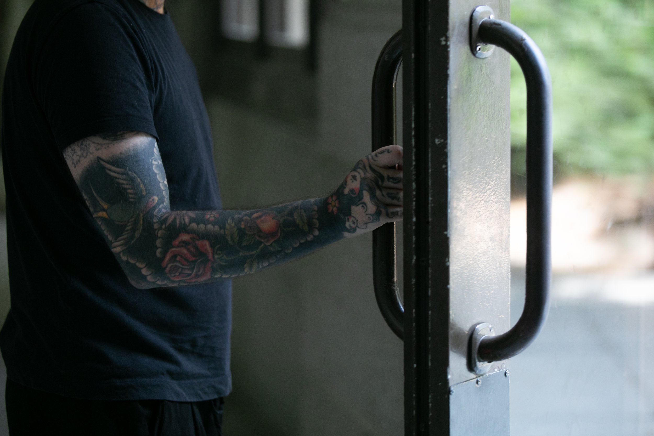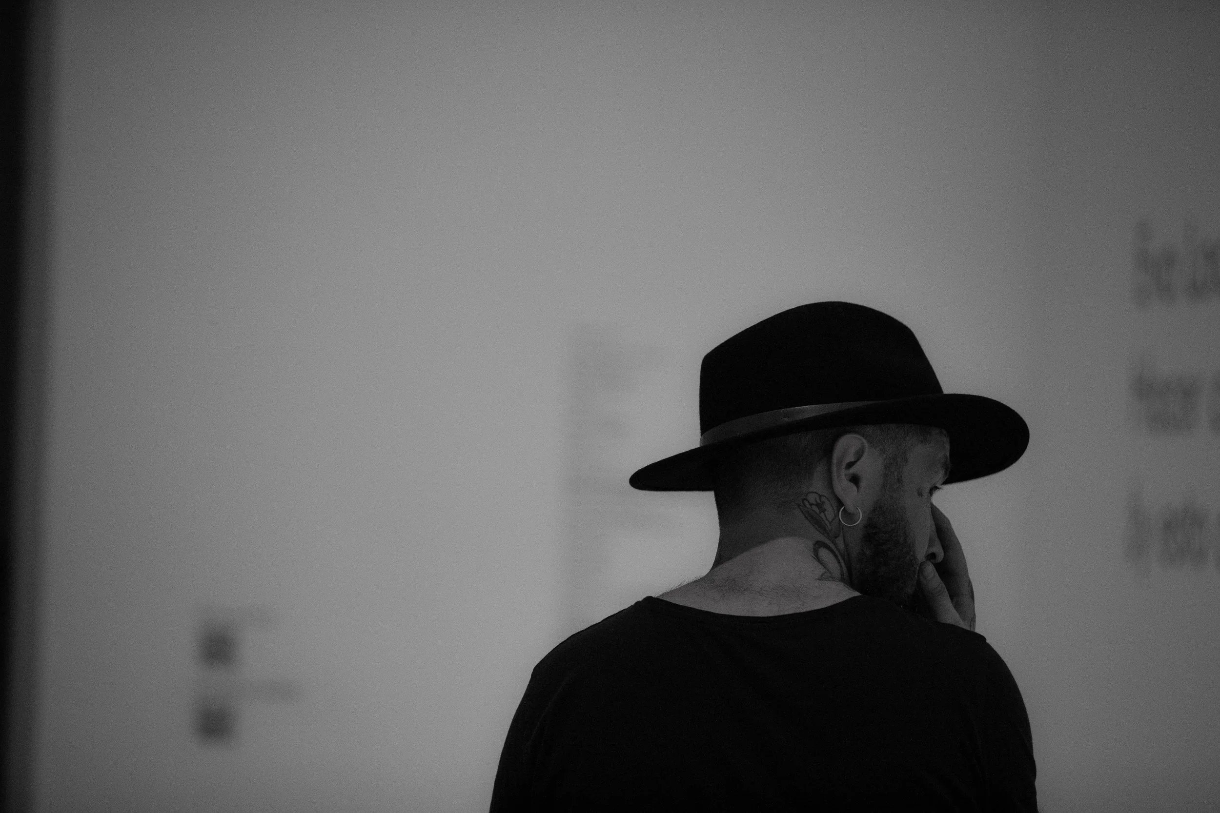 Azcona entering the garden of the Reina Sofía Museum in Madrid. / Azcona entrando al jardín del Museo Reina Sofía de Madrid.