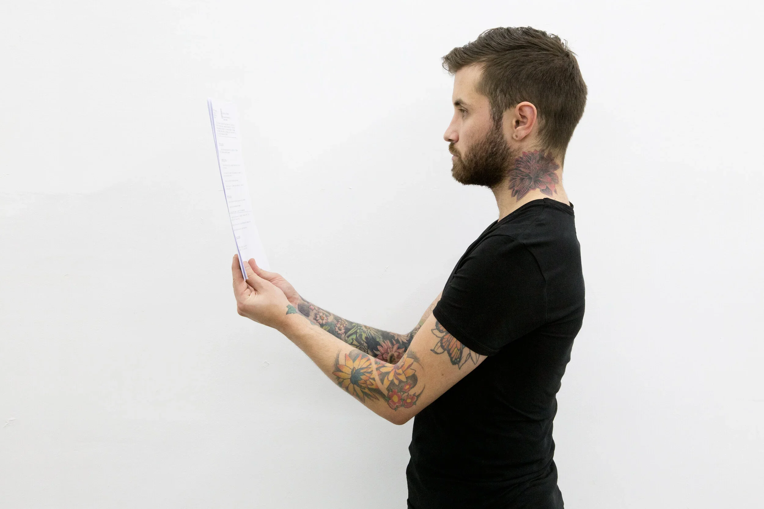 The adoption consists of three performance works, two of them already occurred and one yet to occur. The first took place in 2014 as part of an artistic residency by Azcona at the Huarte Center, near Pamplona. Through a public auction, he offered to be adopted again. The action was exhibited and visited by numerous visitors, but no adoption proposal before a notary was carried out due to the complexity and impact of the action. The adoption would have involved a first signature before a notary and registration in the civil registry. The only legal condition was to be older than fifteen years than Azcona and to propose a possible cohabitation in front of witnesses to allow the process to proceed legally and irrevocably within the institutions. The second performance occurred through a meeting between Azcona and a family lawyer at the Cuartel de Artillería Art Center in Murcia in 2024. This meeting took place in front of the attending public. The third and most significant performance will be carried out through a notarized signing at an art center in April 2027. The document and details of the document to be signed, as well as the adoption, will be presented in an exhibition in two artistic spaces in the days preceding the final adoption performance in 2027.