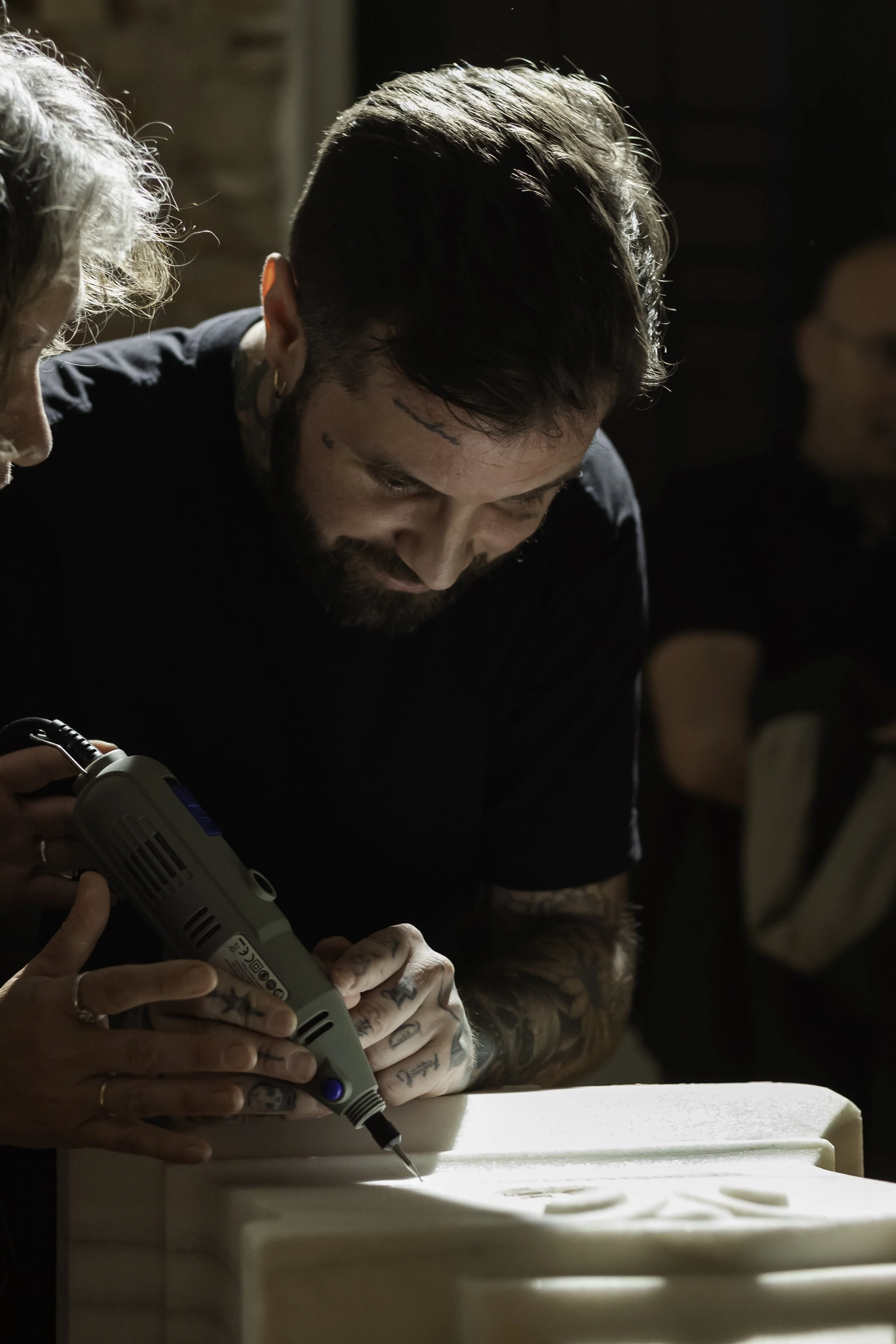 “I performed an emotional piece that I shared with the entire visiting audience. Together, we engraved the name that, until a few months ago, I believed to be my biological mother’s, onto a 19th-century tombstone. After the name turned out to be different, confirmed by a DNA test, this ceremonial act of engraving the tombstone marked not only a literal farewell to a name but also the closing of a wound of abandonment. Now, I must build my relationship with my mother differently. This work is intimate, painful, and resilient, a farewell to a ghost built over years around the figure of my mother, whom I will meet by the end of this year in a live performative action.”