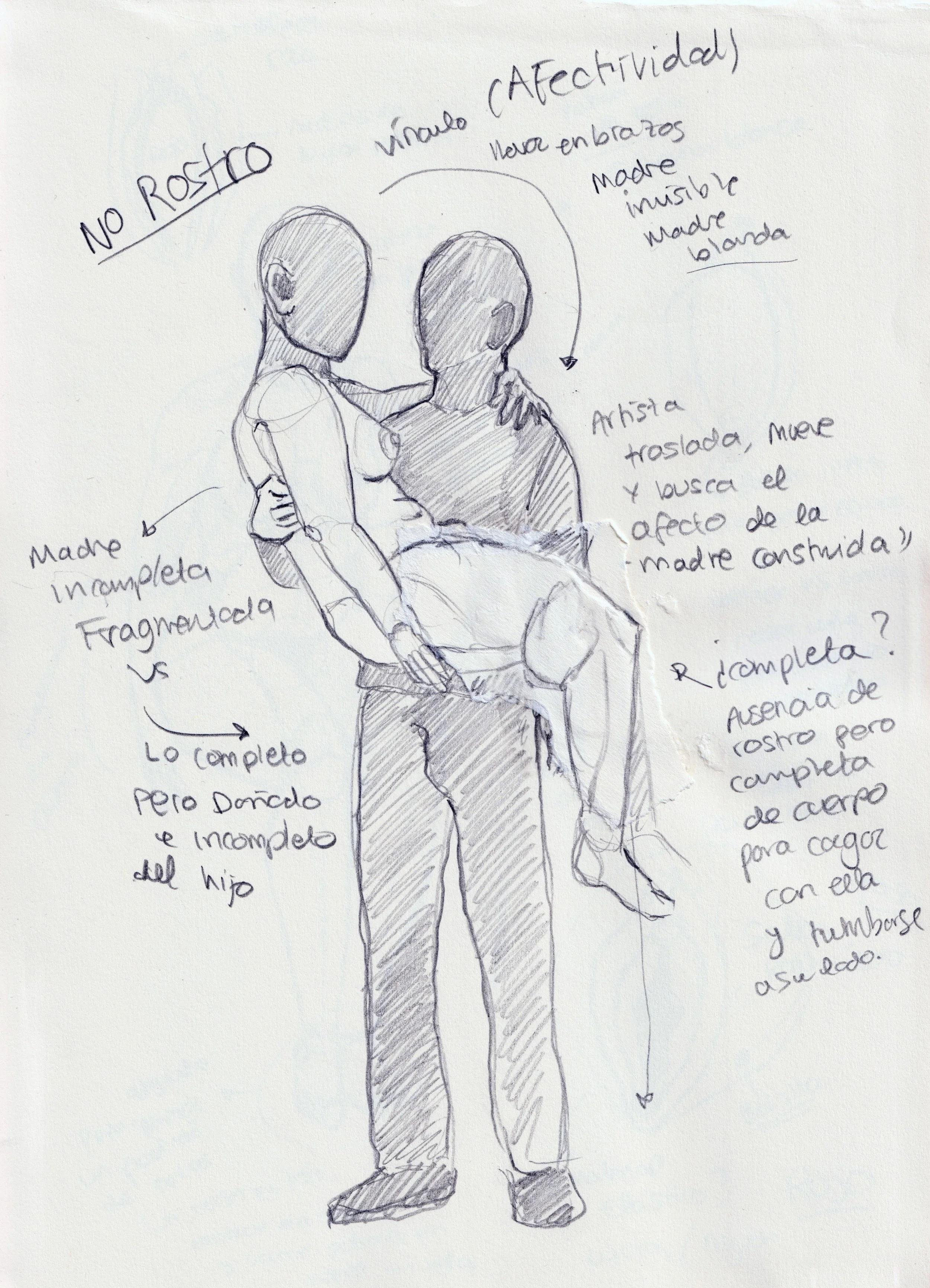 Entro en conflicto con mi concepto de madre. Sentimiento e idea de madre a través de una figura sólida, robusta, blanda, cálida, con rostro e identidad propia que mira, huele, escucha, sostiene, toca, besa y abraza.”
