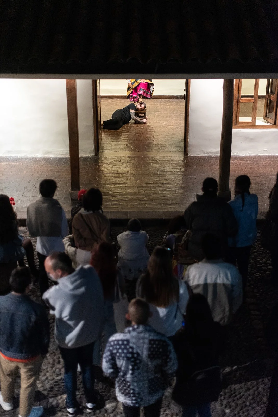 Ultimately, this subtle performance presented itself as a living sculpture. The aesthetic power of the two bodies interacting in a heritage space facilitated the retrieval of social memory by constructing symbolic elements representative of the southern communities of Ecuador. This approach brought these communities closer to the materialities of the past through curatorial means, paving the way for democratic engagement in various contexts.