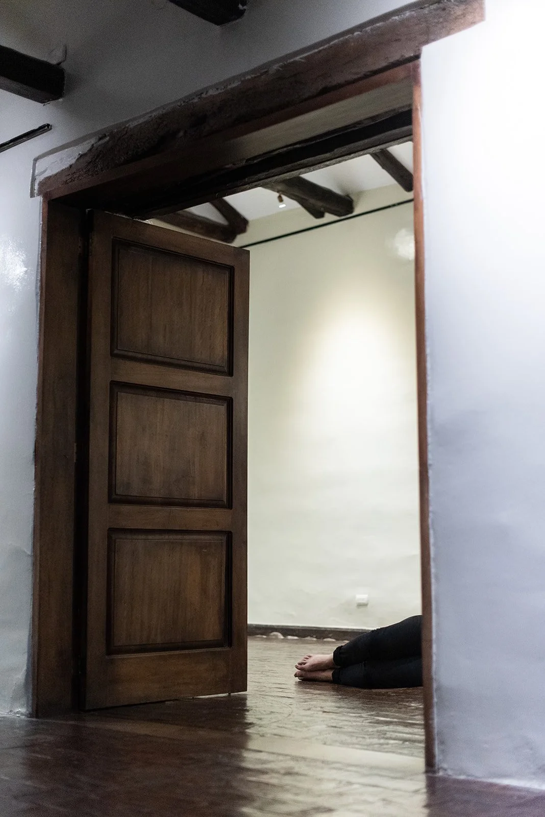 La pisada, Abel Azcona, 2022. - Performance. Fotografía: Photography: 3 fotografías Museo de Arte Moderno de Cuenca, 34 fotografías Casa Patrimonial de las Posadas. Curaduría y Texto / Curation and Text: Cristina Carrasco. Obra expuesta / Work exhibited: Museo de Arte Moderno de Cuenca, Casa Patrimonial de las Posadas, Cuenca, Ecuador. Disponible para venta y exposición (Una fotografía forma parte de la colección permanente del Museo de Arte Moderno de Cuenca) / Available for sale and exhibition (A photograph is part of the permanent collection of the Museum of Modern Art of Cuenca).