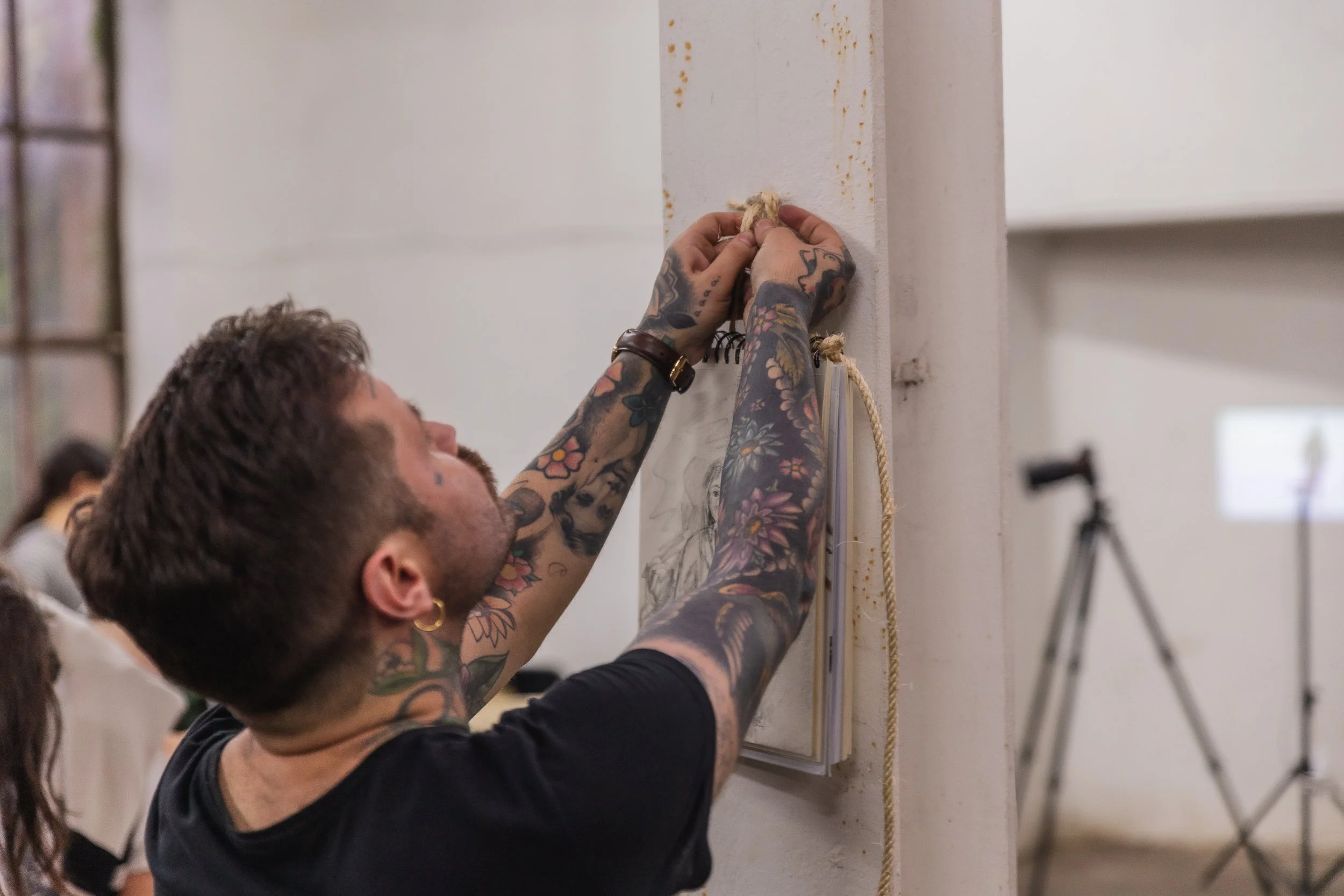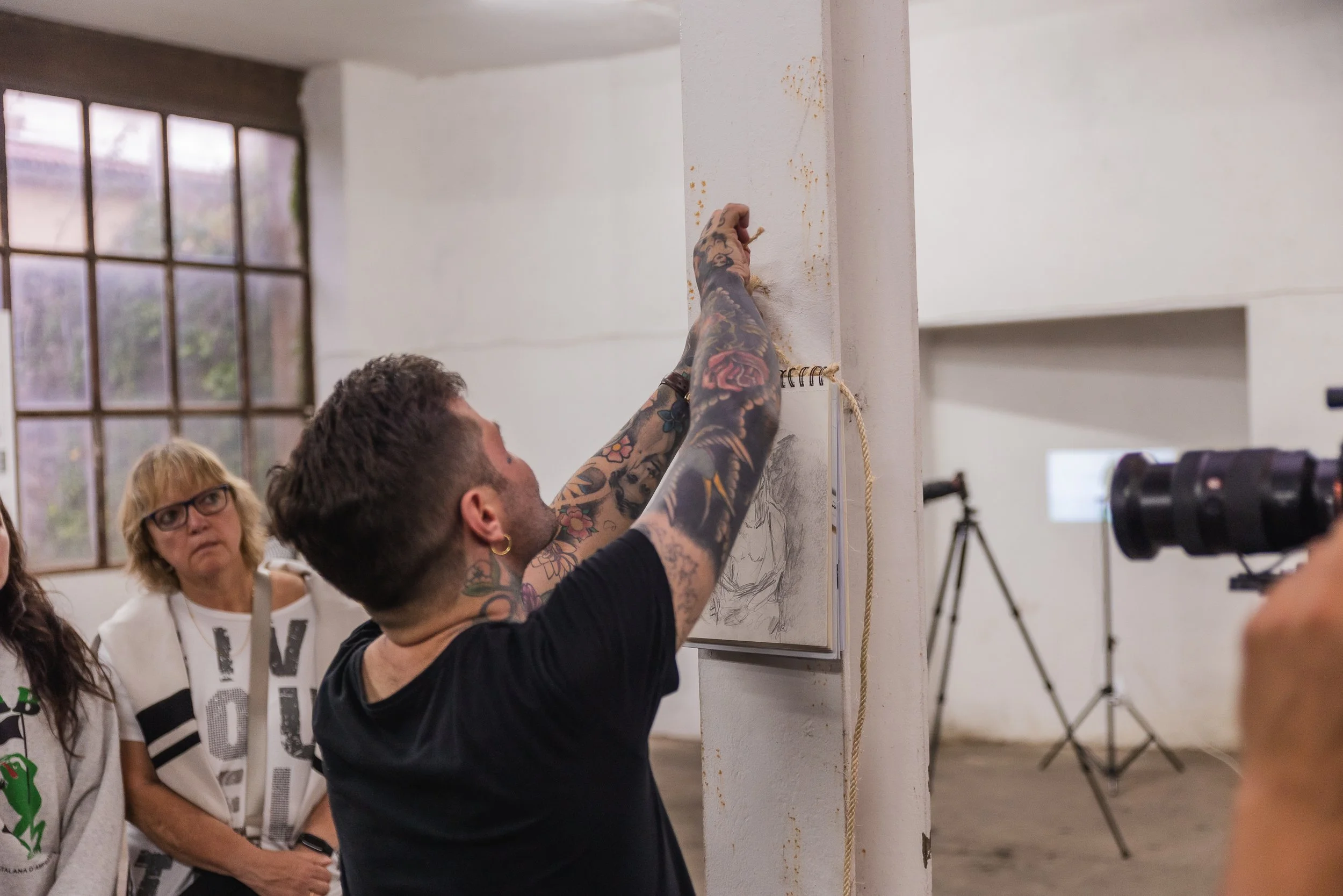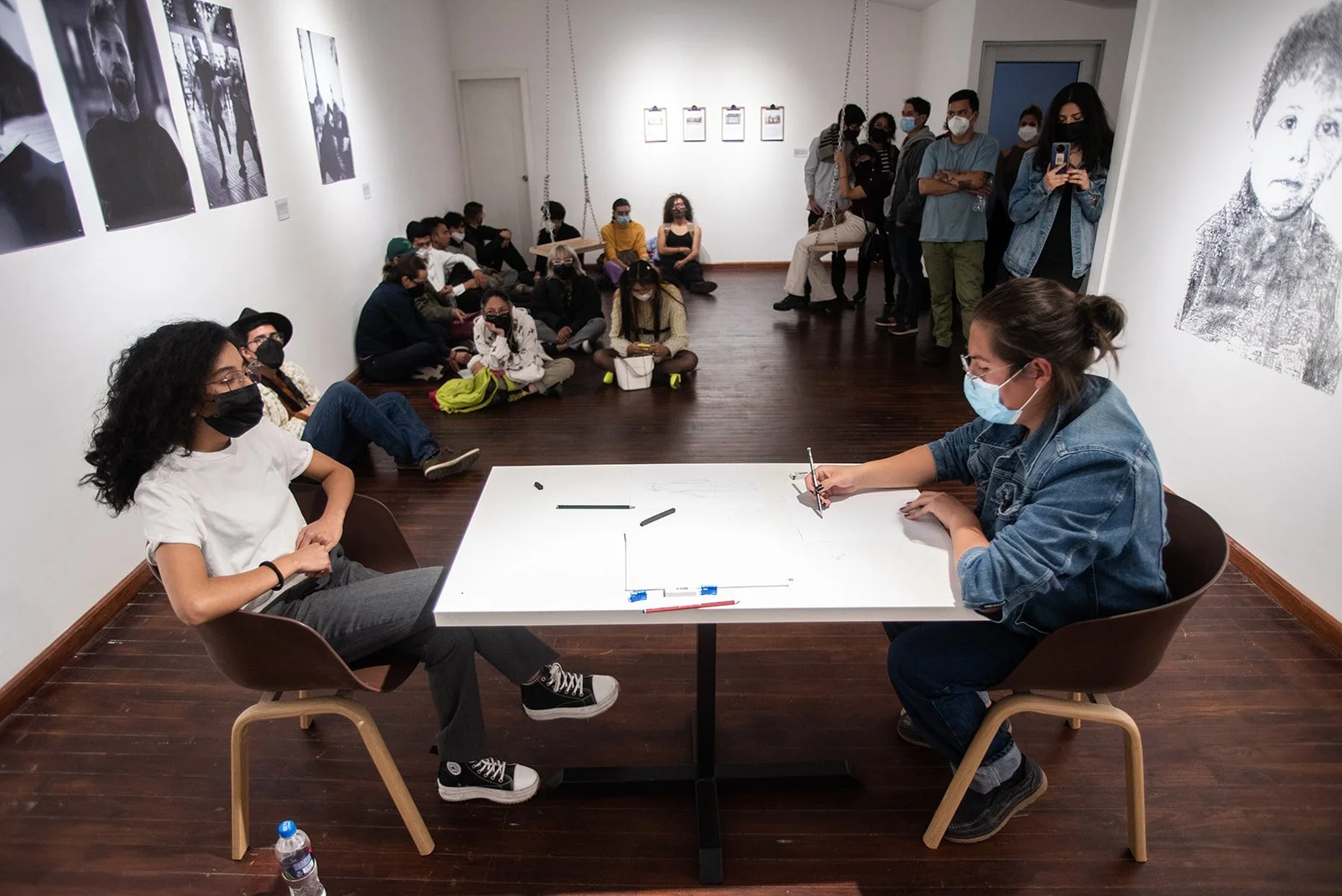The performance was activated for the first time at the Talō Gallery in Cuenca, Ecuador, and reactivated in Valencia, Santiago de Chile, and Mexico City. With the special collaboration of the participating illustrators: Antonio Portillo Carbonell, Karla Karla, Beatriz R. Frieiro, Maria Rosa Aránega, Dareth Peña, and Melina Pivato.