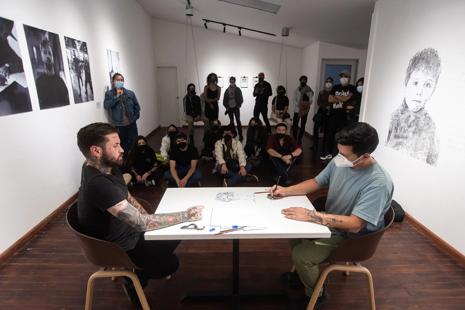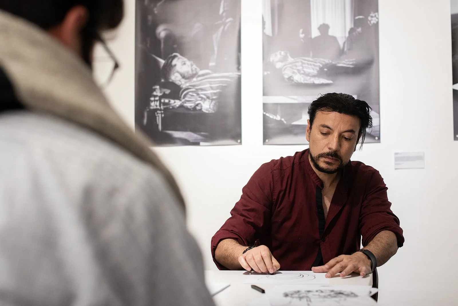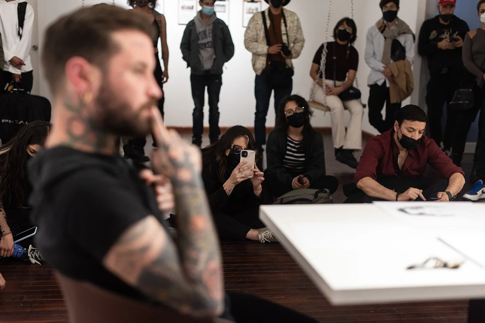 The performance was activated for the first time at the Talō Gallery in Cuenca, Ecuador, and reactivated in Valencia, Santiago de Chile, and Mexico City. With the special collaboration of the participating illustrators: Antonio Portillo Carbonell, Karla Karla, Beatriz R. Frieiro, Maria Rosa Aránega, Dareth Peña, and Melina Pivato.