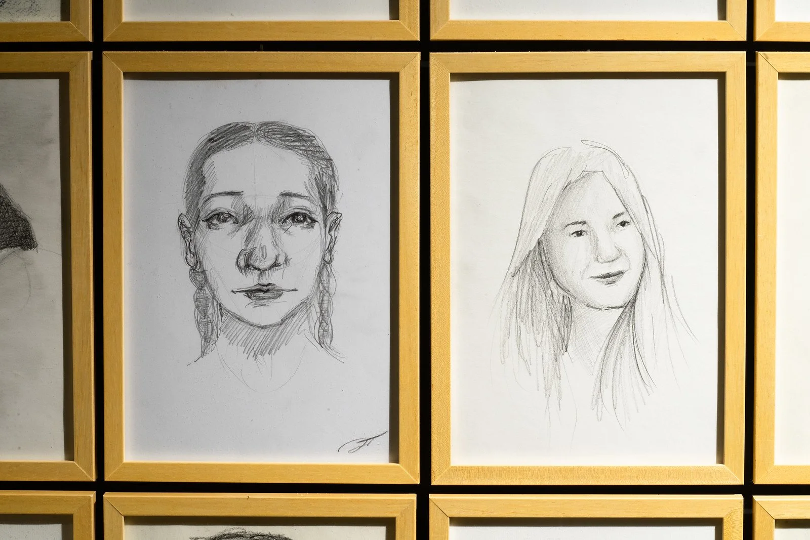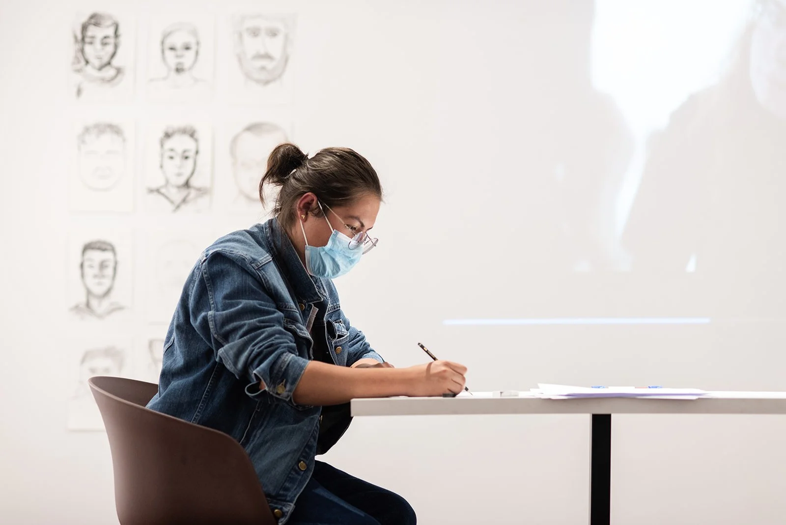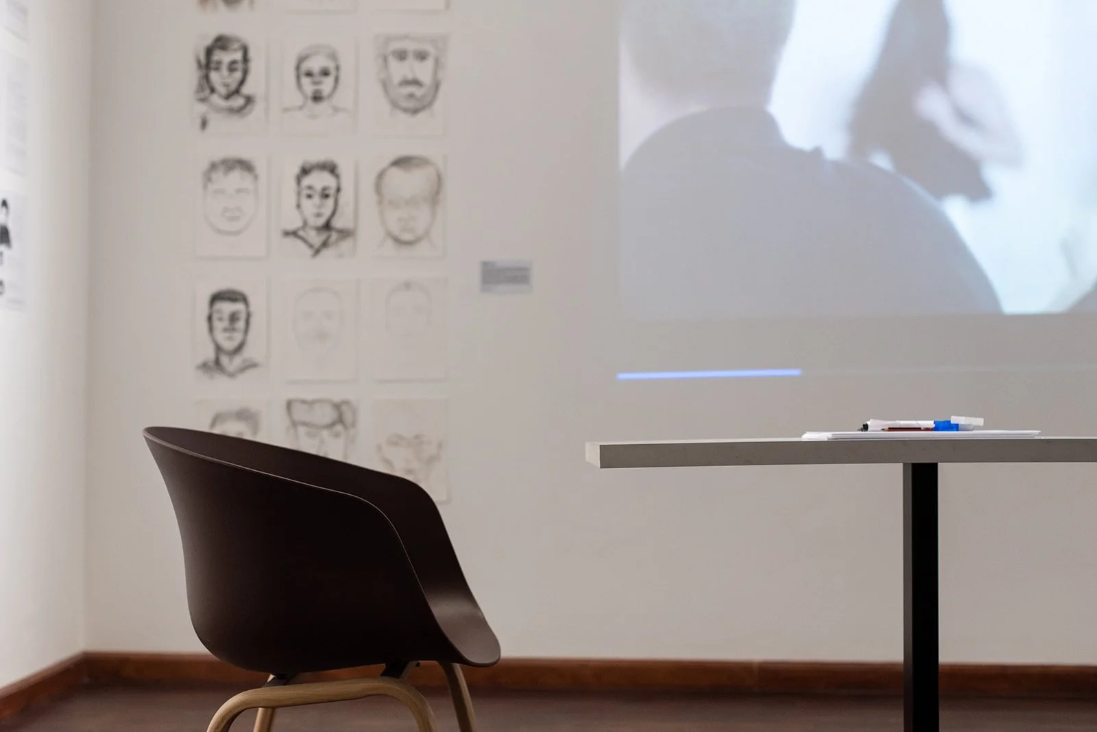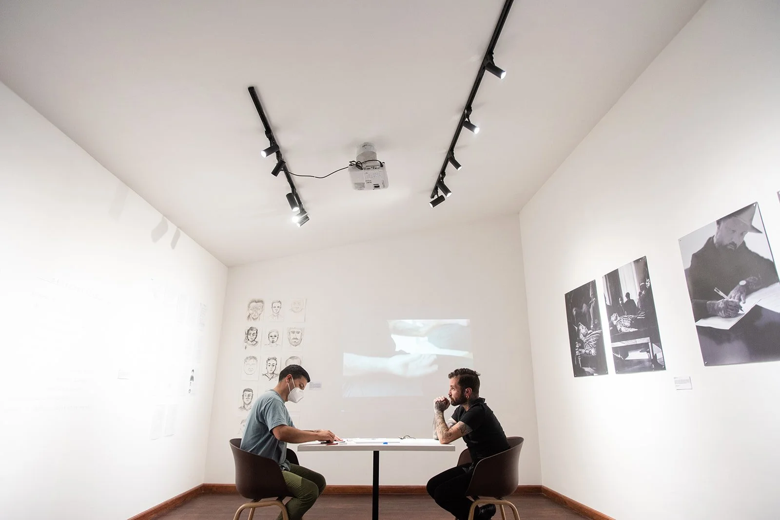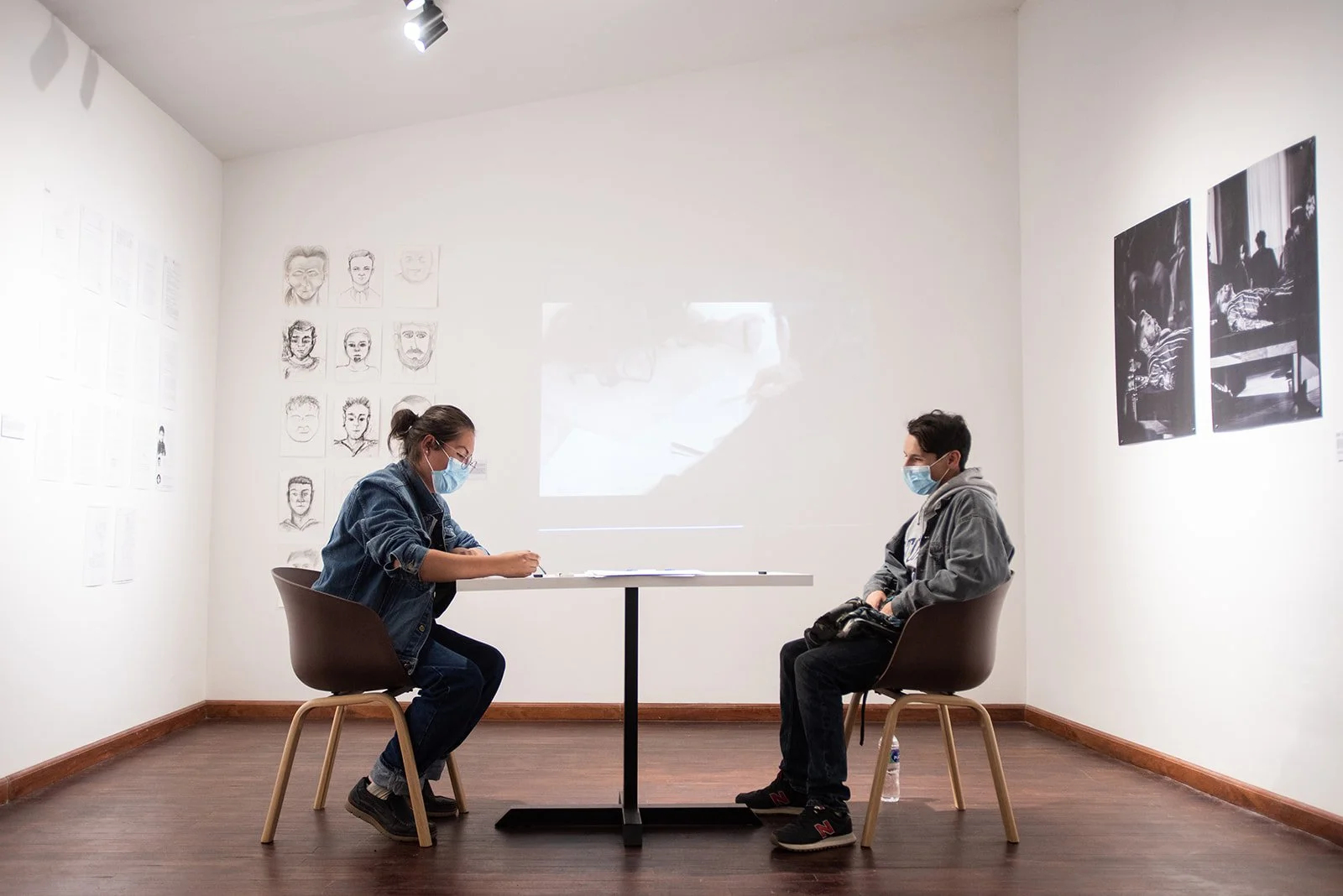 In an intimate setting, each artist interviewed each participant, and they described the physical attributes of the mother they would have liked to have or the one they did have. During the conversation, spectators could witness the artists translating the description of the imaginary mothers onto a blank sheet of paper.