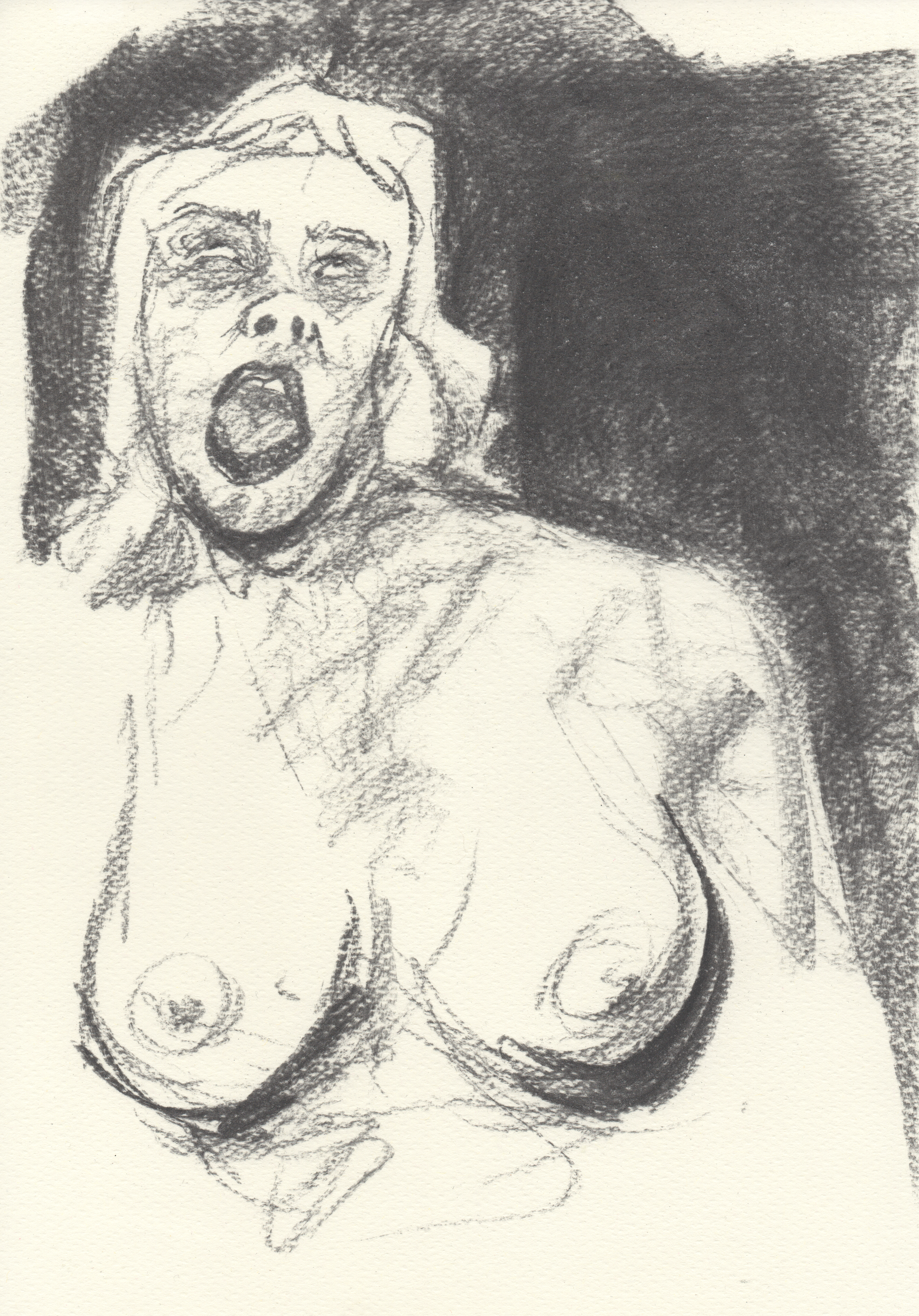 Performance work developed during 2022. This is a process-art project through installation, drawing, photography, video, and performance, which on 21 January 2022 was given a performance with various artists and the personal testimonies of participants and visitors to the Talō art gallery, in the city of Cuenca in Ecuador. A large number of portraits as the result of a process of reflection, in which a large number of people – orphaned or motherless, or with complex maternities – described what their imagined mother would be like. A piece that invites us to think about the person who performs the role of motherhood; in Azcona’s case, a mother who worked as a prostitute.