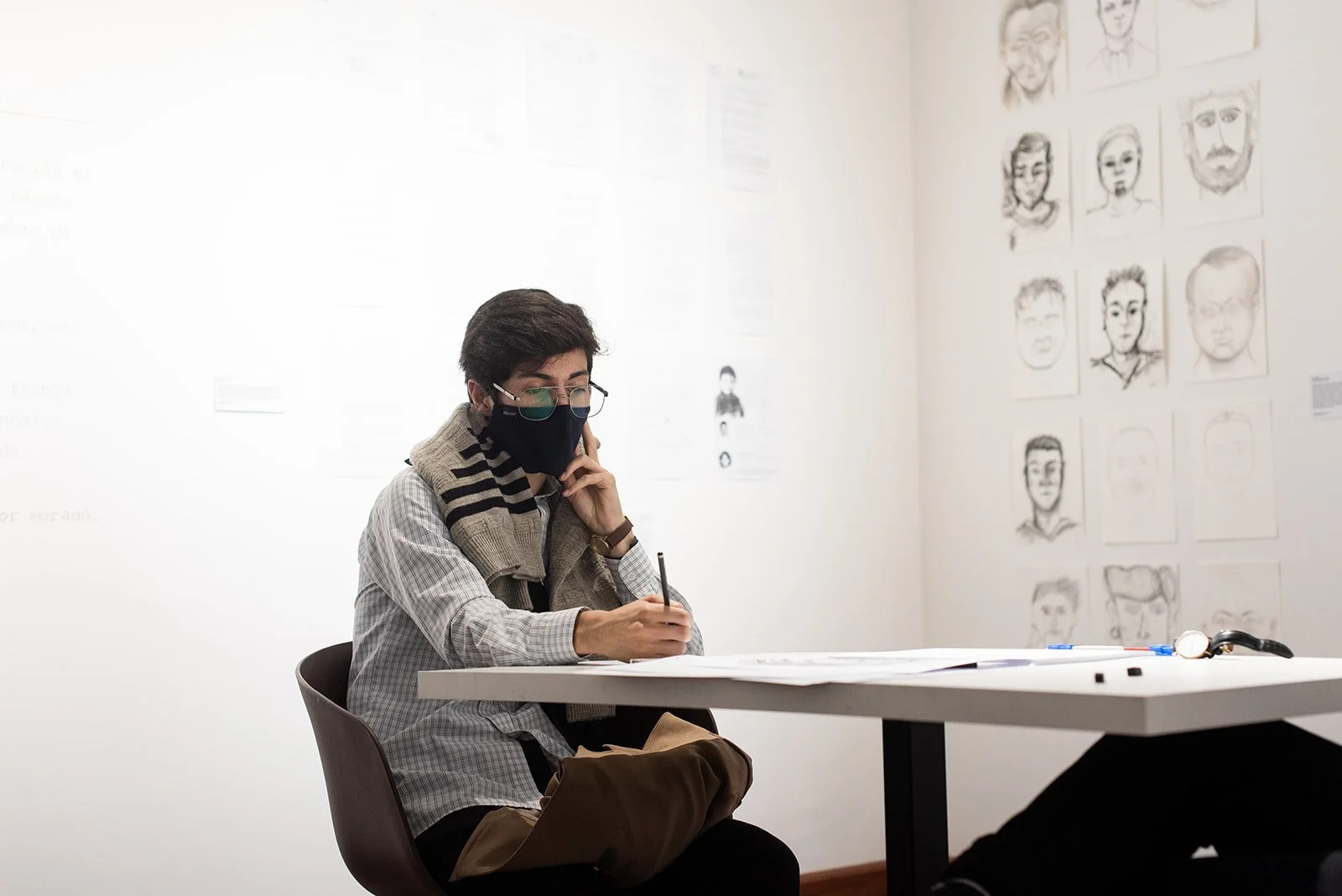 There are various works in which I have mixed live drawing, turning it into a personal mark within the performance. In Los padres [The fathers], the drawers, experts in physiognomy, drew portraits of possible progenitors from the physical descriptions given by prostitutes. In Las madres imaginarias the rapporteurs or protagonists who describe live in each of the performances – in cities such as Cuenca in Ecuador, Santiago de Chile, and Mexico City – are people marked by orphanhood or by the absence of a mother, provoked by abandonment, death, or negligence. That is why in this work we find nearly two hundred imaginary mothers constructed as substitutes or ghosts of the absent mother.