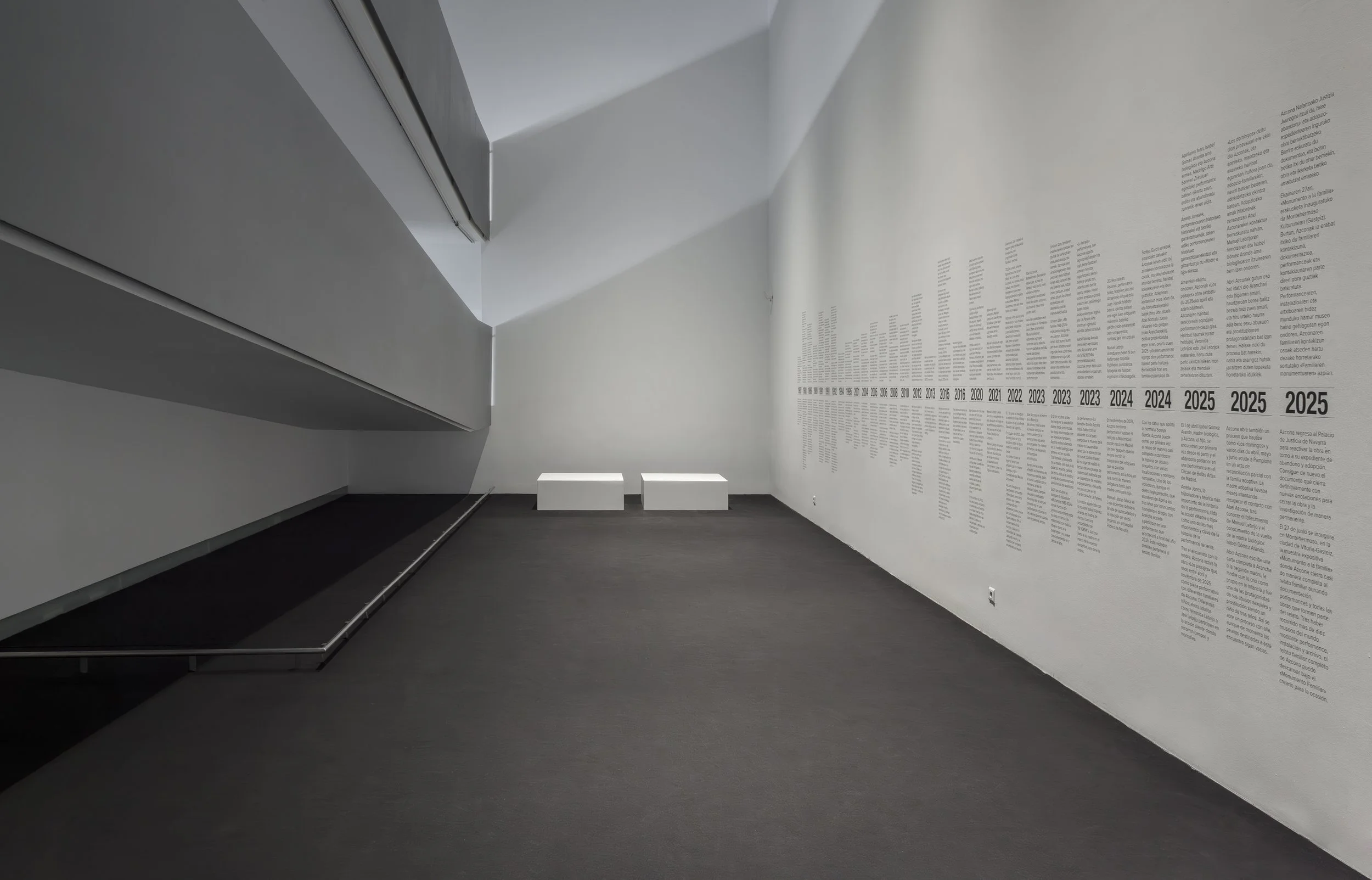 Monument to the Family” at Montehermoso in Vitoria—an exhibition dedicated to nearly all of Azcona’s works about or against the idea of family—opened the largest timeline to date, this time in Spanish and Basque. / Monumento a la Familia en Montehermoso, Vitoria, una muestra dedicada a casi la totalidad de piezas de Azcona en torno o en contra a la idea de familia, inauguró la linea de tiempo más grande hasta la fecha, esta vez en castellano y euskera.