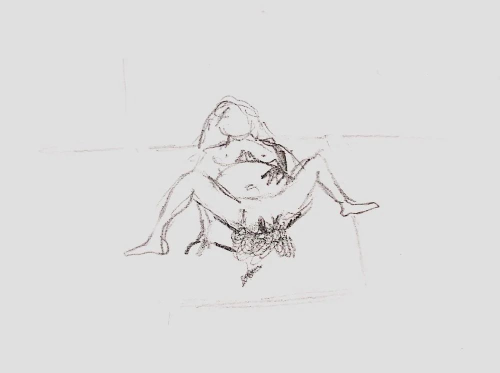 What Should Have Happened is a work made of paper and graphite, created between 2016 and 2022. Azcona chose to symbolically date the piece to 1987, understanding it as a processual work whose trigger occurred that year (Azcona was born in 1988, so most of the gestation happened in 1987). The protagonist of the piece is the artist's own mother, who, being a woman addicted to multiple substances and involved in prostitution, became pregnant by a client and attempted to have an abortion three times. According to Azcona, those three attempts were the greatest act of love anyone ever showed him in his life. He views abortion as a protective measure for childhood, and in Azcona's case, it was preferable to end a pregnancy marked by abuse and drugs rather than bring it to a tragic conclusion and force him into life. Despite his mother’s desire not to give birth and the artist’s wish never to have been born, the reality is that the pregnancy resulted in his birth at the Montesa Maternity Hospital, which is associated with caring for women in situations of risk, social exclusion, and prostitution. This piece consists of thirteen small drawings by the artist, emulating or recreating his own mother undergoing an abortion, and thus, himself being aborted. These drawings do not depict an actual event but rather simulate what should have happened in reality.