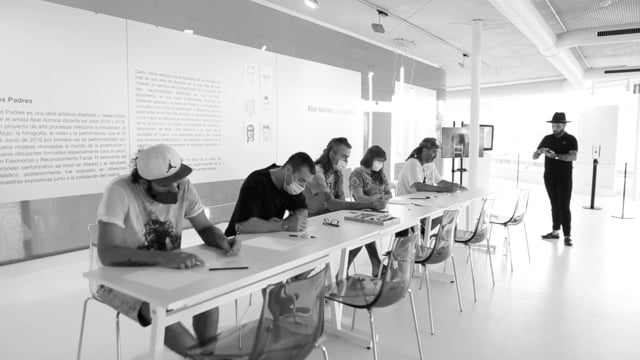 Beginning of the performative process The Fathers in Madrid, at the same time as the training of the drawers. / Inicio del proceso performativo de Los Padres en Madrid, al mismo tiempo de la formación de los dibujantes.