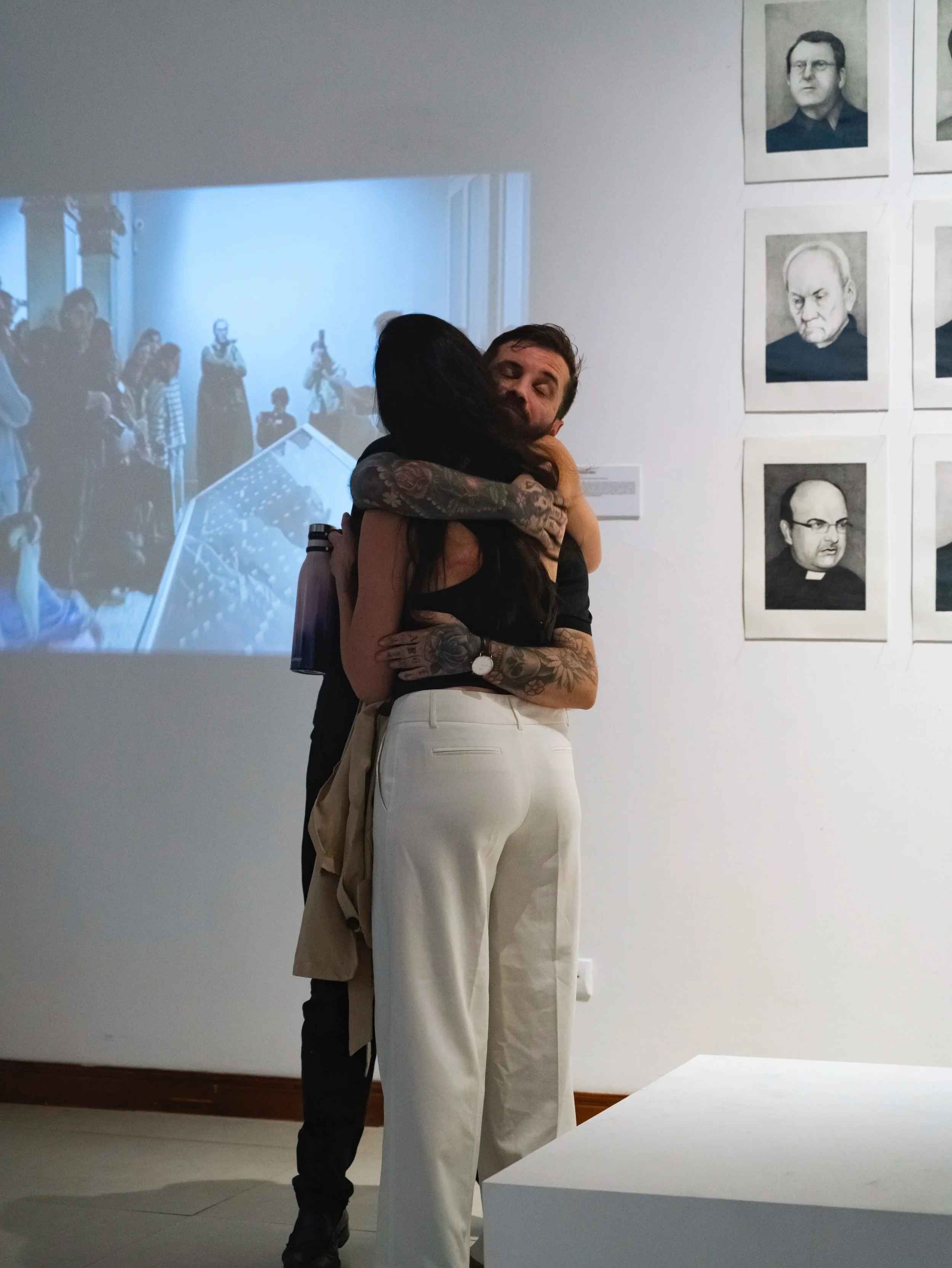 On the day of the exhibition, several victims of the convicted and portrayed priests performed a live performance, narrating their testimony while looking directly at the portrait of their abuser.