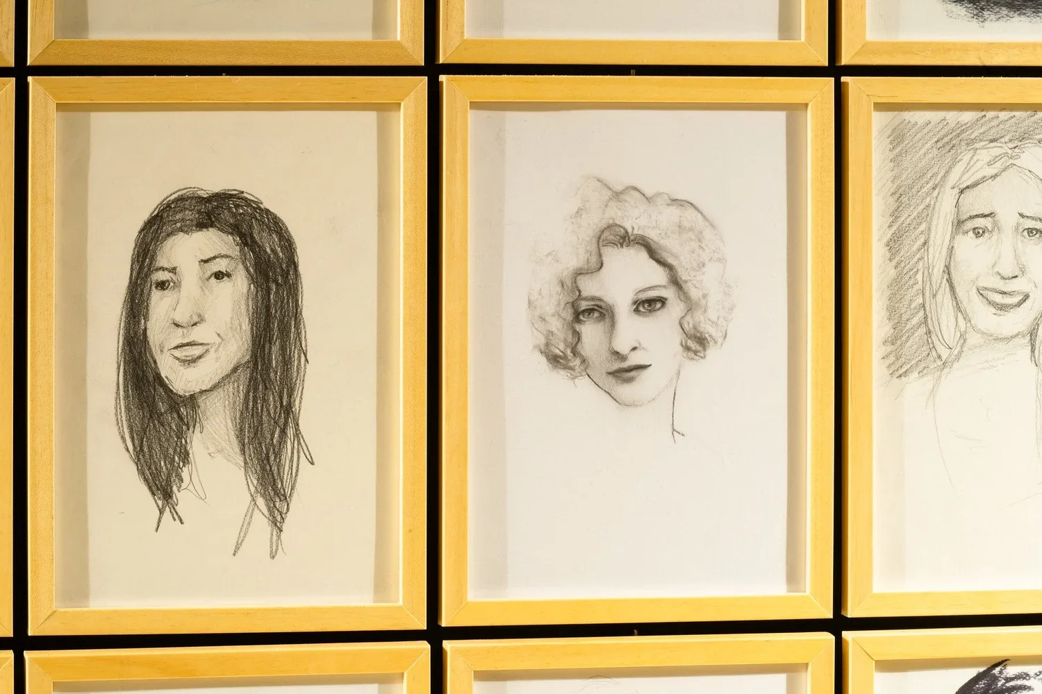 FIFTH BRIEF ACTION - FROM IMAGINARY MOTHER TO REAL MOTHER. Performance with the collaboration of a draftsman. During the opening of the show, the draftsman will select nine imaginary mothers from Azcona's work. At a table in the center of the room, he will repaint the mothers based on the previously drawn result with the participants' testimonies. A considerable number of portraits resulting from a process of reflection, in which a large number of people, orphans, motherless, or with complex maternities, described what their imaginary mother would be like. A piece that invites the viewer to think about the person performing motherhood, in Azcona's case, a mother practicing prostitution resulting in a son-object politic. With the help of videos where you can see the biological mother and Azcona's own descriptive testimony, who no longer has to imagine a mother but can describe her thanks to her recent appearance, the draftsman will evolve the drawings of the imaginary mothers until they become Azcona's real mother.